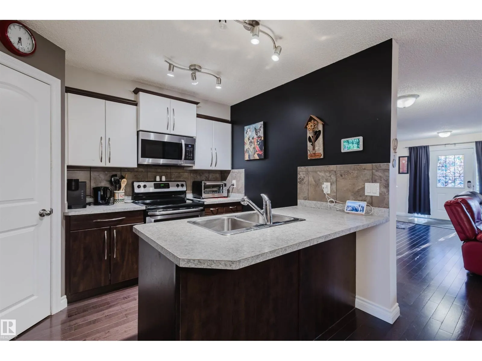 Welcome to this beautifully maintained, attached home in the highly sought-after community of Rutherford! Perfectly positioned directly across from walking trails and storm pond, this property offers an ideal blend of natural beauty, convenience, and modern living.Step inside to discover a bright interior,where natural light floods through large west-facing front windows and east-facing rear windows, creating a warm atmosphere throughout the living areas.The open-concept main floor is adorned with elegant hardwood flooring and features a thoughtfully designed layout.The modern kitchen boasts a central island with an eating bar, beautiful cabinetry, and a stylish backsplash. The rear entry provides access to the single attached garage and a private backyard.Upstairs, you'll find three well-appointed bedrooms, including a master suite with closets and a sleek three-piece bathroom.This situated near top amenities, including a Kâ9 school just a five-minute walk away, shopping centres, public transportation. (id:27476)