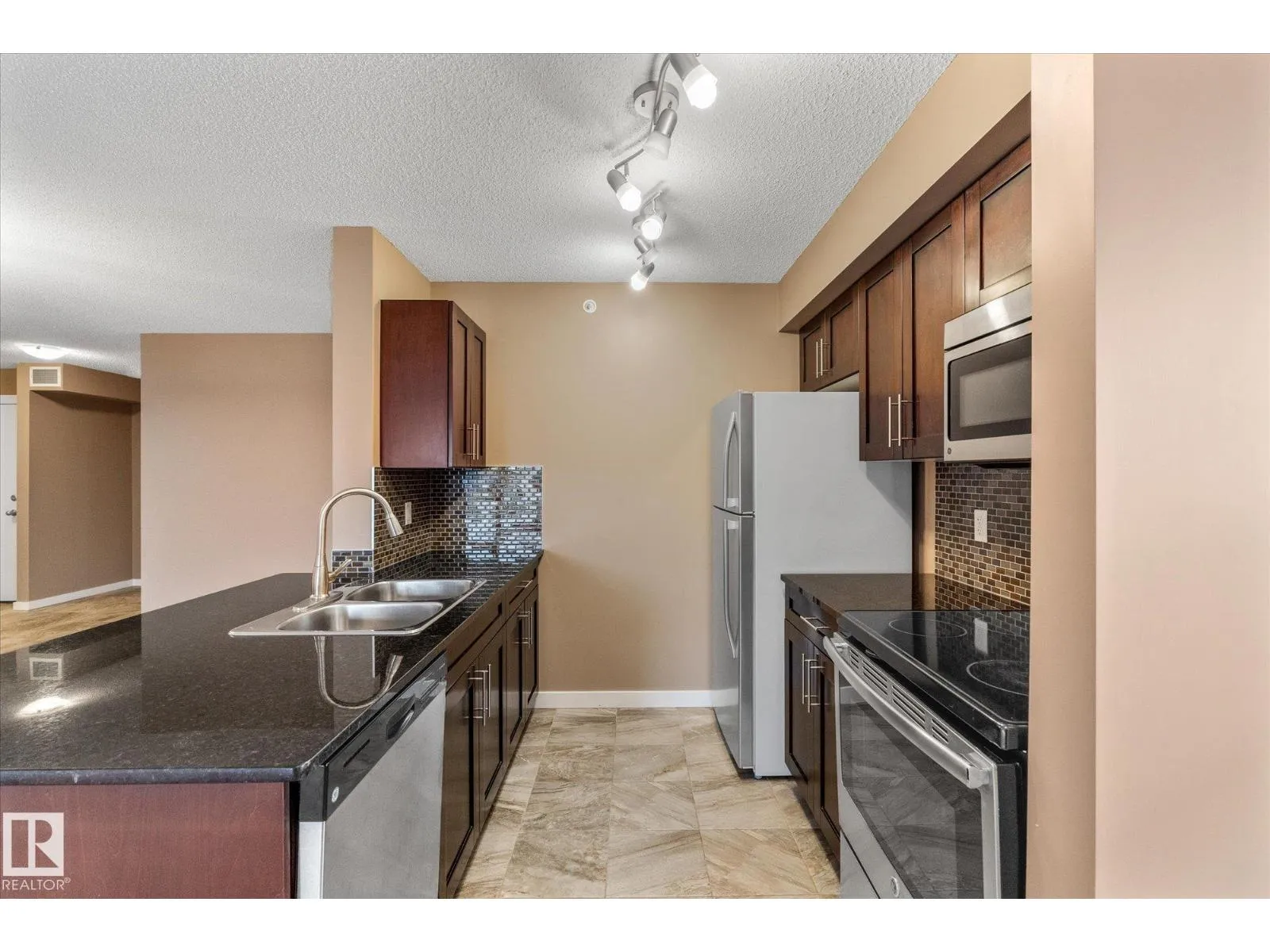 Welcome to one of the most desirable units at Creekwood Landing! This top floor 975 SF corner unit features 2 bedrooms, 2 bathrooms, AND 2 parking stalls! One is underground and the other is above ground. Plenty of natural light and a view over the pond across the street. Other great features of this condo are in-suite laundry, breakfast nook, large kitchen with SS appliances, granite counters, space by the front door could be used for a small office, walk-through closet, 3 pc primary ensuite, patio with a view, visitor parking, and much more. Some photos are virtually staged. (id:27476)