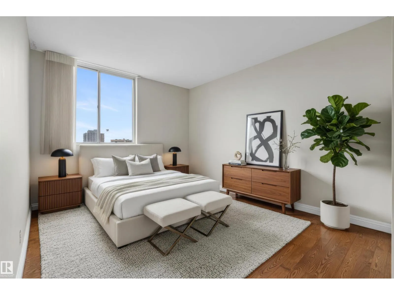 Urban Living at its Finest! Welcome to the Valhalla located in one of Edmonton's finest downtown districts. This 2 bed 1 bath is perfect for young professionals or those wanting to downsize from a home. Updated Kitchen Cabinetry, Newer Stainless appliances, Gleaming Hardwood Floors, In Suite Storage, a South East Balcony, Underground Parking ~ Painted in neutral colours offering you a blank slate to be creative with decorating your way. THE REAL SHOWSTOPPER? Resort-style amenities and unbeatable location ~ IN-COMPLEX amenities include Same floor Free Laundry, Salt Water Pool, Well Equipped Gym, Bike Storage & a Party/Social Room with Terrace Overlooking the incredible River valley Views. Close to walking Trails, Transit, and all the fantastic amenities nearby such as Shopping, Fine Restaurants, live Theatre & Music, Art Galleries & more. Located on a Beautiful Quiet Tree Lined Street ~The Valhalla is Professionally Managed on-site Daytime Staff, Fob equipped Entry, Pet & Child Friendly! (Virtually Staged) (id:27476)