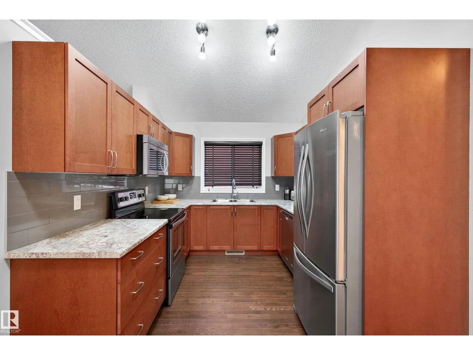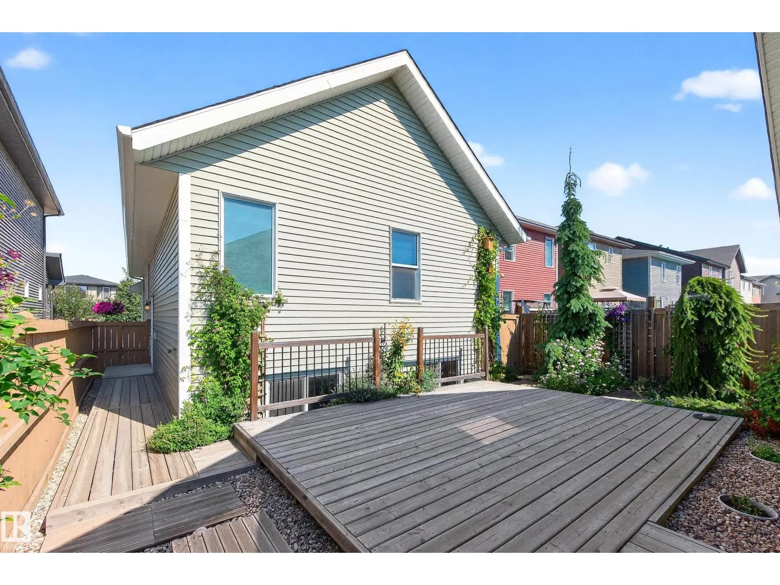 Better than new Spacious bilevel home features two bedrooms, two bathrooms, vaulted ceilings. Meticulously kept original owner Lincolnberg home. Great curb appeal and then enter into the foyer. Main floor is open and spacious with vaulted ceiling in living areas. Primary bedroom has huge shower and sink/toilet ensuite. 4 pce. Family bathroom. Side door would allow for suite development in the basement. Unfinished basement with 9 ft ceilings and 3 windows above grade for your own taste to develop. Laundry at base of stairs for ease of access. Low maintenance yard includes deck and lawn. Large double garage from Alley. Great location on a quiet street with all amenities close by and easy access to 50 St and Ellerslie Road. (id:27476)