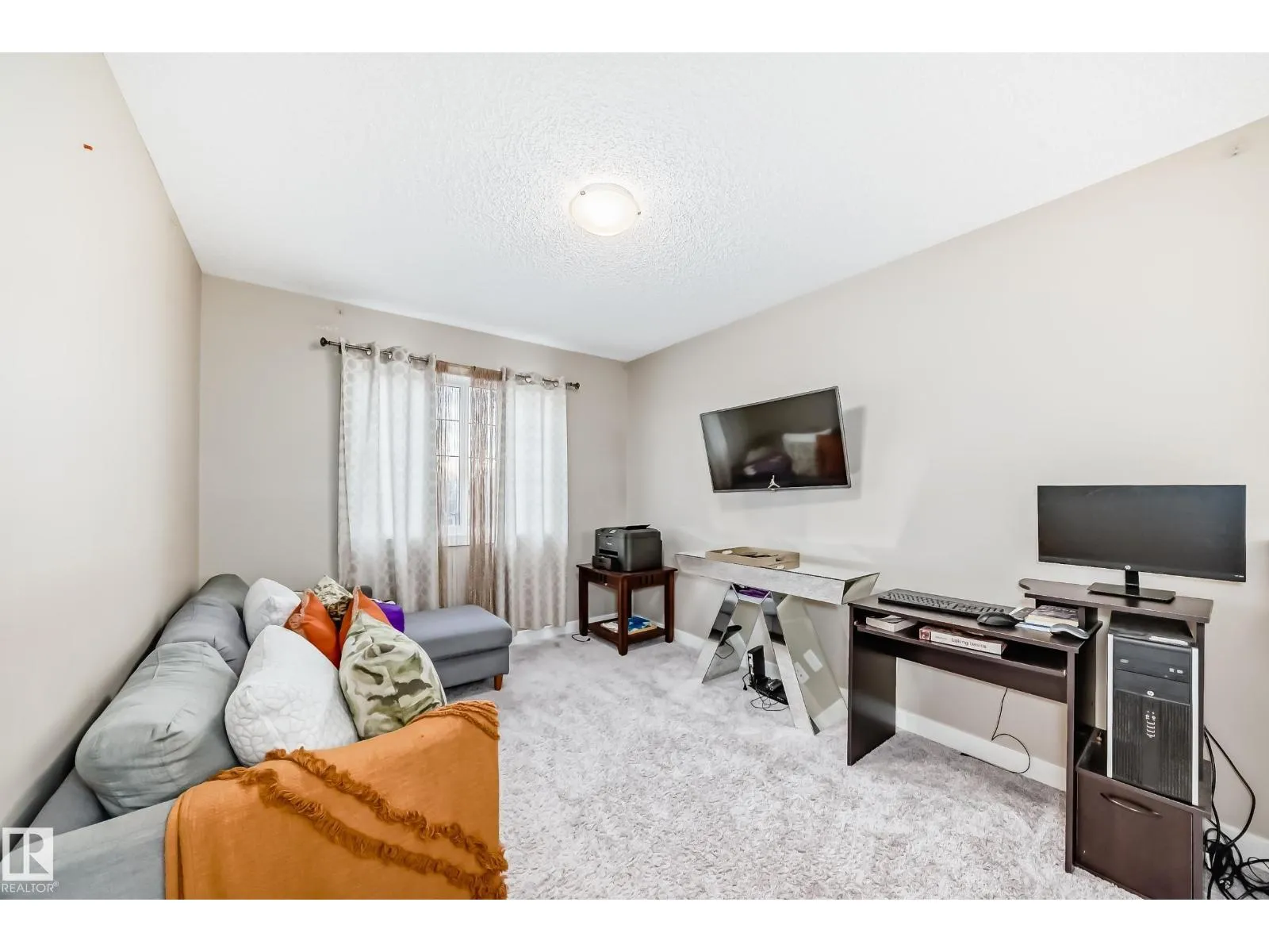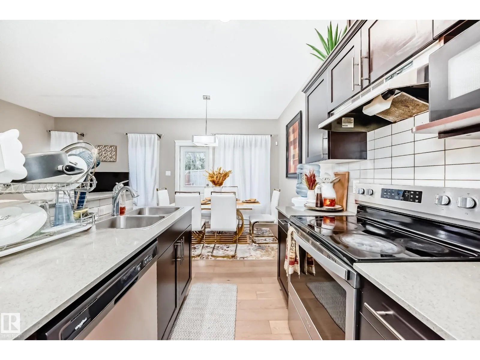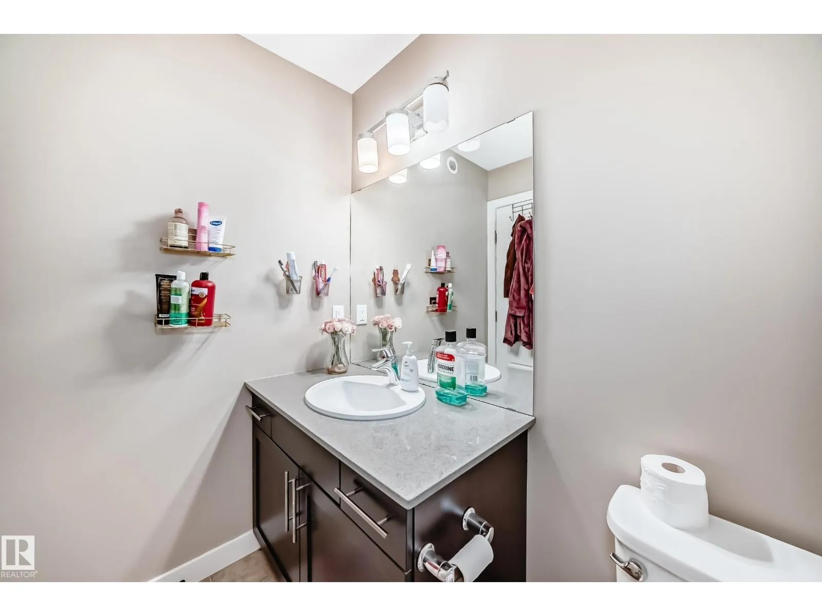 Welcome to Hawks Ridge! This stunning 3-bedroom half duplex offers the perfect blend of style, comfort, & modern living. Step inside to an open main floor featuring beautiful laminate flooring, and a spacious living & dining area ideal for entertaining. The modern kitchen boasts stainless steel appliances, quartz countertops, and sleek cabinetry. Upstairs, youâll find three generous bedrooms, including a primary suite with a private ensuite. The upper floor also features a cozy bonus area. The unfinished basement offers great potential for future development, complete with a 3-piece bathroom rough-in. Additional highlights include a tankless water heater for energy efficiency. Located in the desirable Hawks Ridge community, this home is surrounded by nature trails, parks, and easy access to amenitiesâperfect for families or first-time buyers alike. Donât miss your chance to call this beautiful home yours! (id:27476)
