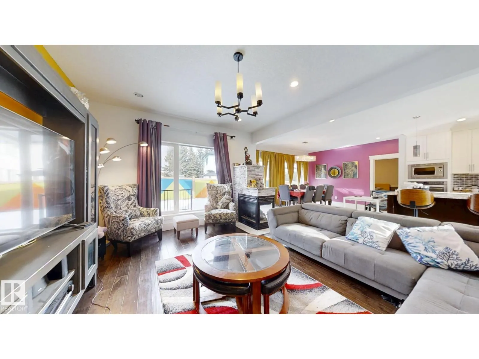 This stunning custom-built 7BDR/6BTH home offers 3,328 sq ft of above-grade living space along with a triple attached garage. Crafted with a focus on luxury and functionality, the open-concept design welcomes you with soaring ceilings, a modern glass-railing staircase, elegant tile work, and bright lighting. The spacious main living area is ideal for both family living and entertaining, highlighted by a striking see-through custom fireplace. The gourmet kitchen showcases a large granite island, high-gloss and rich wood cabinetry, and premium stainless steel appliances. A main-floor bedroom with a 4-piece ensuite and an additional 3-piece bath provide comfort and flexibility. The upper level features a large bonus room, laundry with washer/dryer, and three additional bedrooms. The luxurious master suite offers a spa-inspired 5-piece ensuite with Jacuzzi tub, standing shower, and a custom walk-in closet. The fully finished basement with separate entrance includes 3 bedrooms, 2 bathrooms with open-concept. (id:27476)