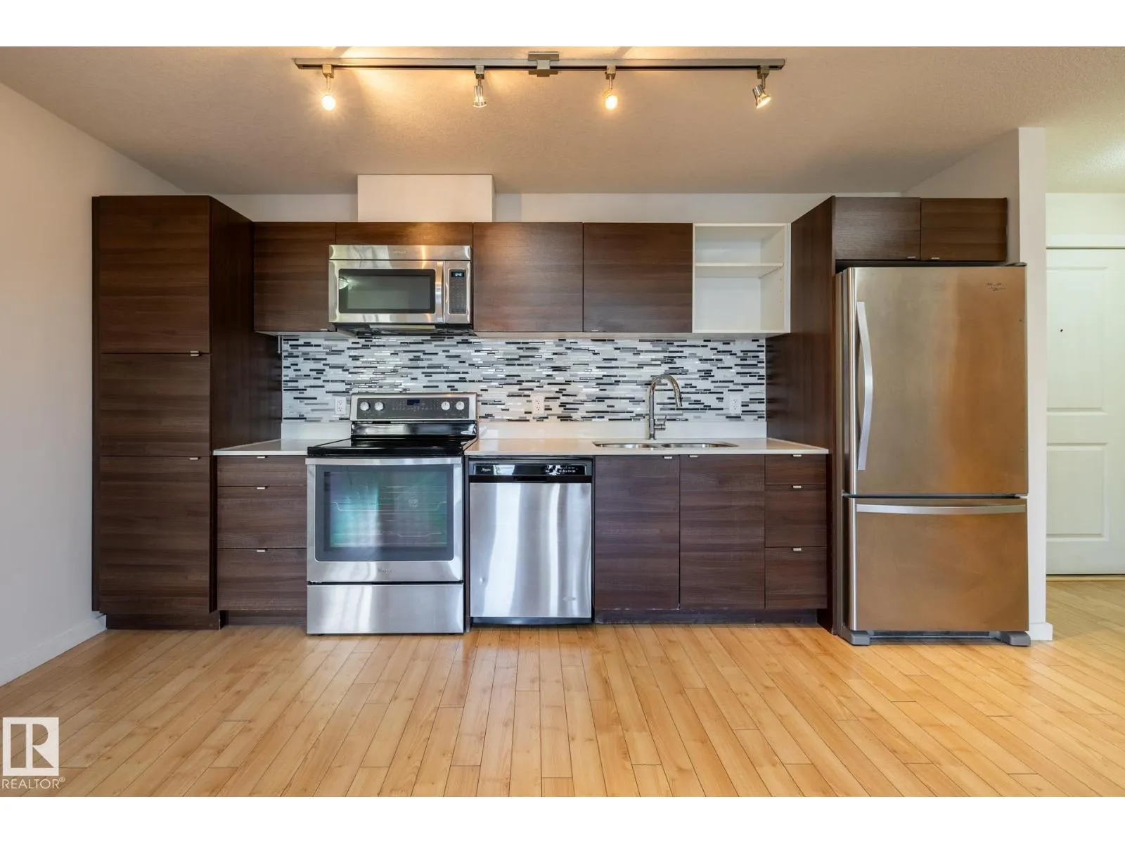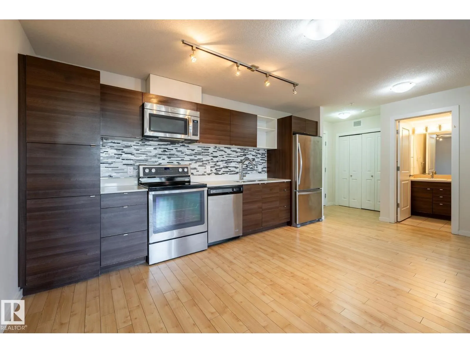 Perfectly situated just steps from grocery stores, coffee shops, restaurants, schools, and public transitâwith quick access to the Hendayâthis main floor unit offers the ultimate in everyday convenience. Inside, youâll love the open concept layout that fills with natural light from large windows, creating a bright and inviting atmosphere. The kitchen features sleek quartz countertops, rich espresso cabinetry, upgraded backsplash and stainless steel appliances, flowing seamlessly into a spacious dining and living areaâperfect for entertaining or relaxing. The primary bedroom boasts a generous walk-through closet leading to a stylish 4-piece ensuite with a tub and shower combo. A second bedroom sits privately across from the ensuite, ideal for guests or an office. Completing this beautiful home are in-suite laundry, an additional 4-piece bath, 1 titled underground parking stall, and a private balcony with a gas lineâperfect for BBQs and enjoying fresh air right at ground level. Don't miss out! (id:27476)