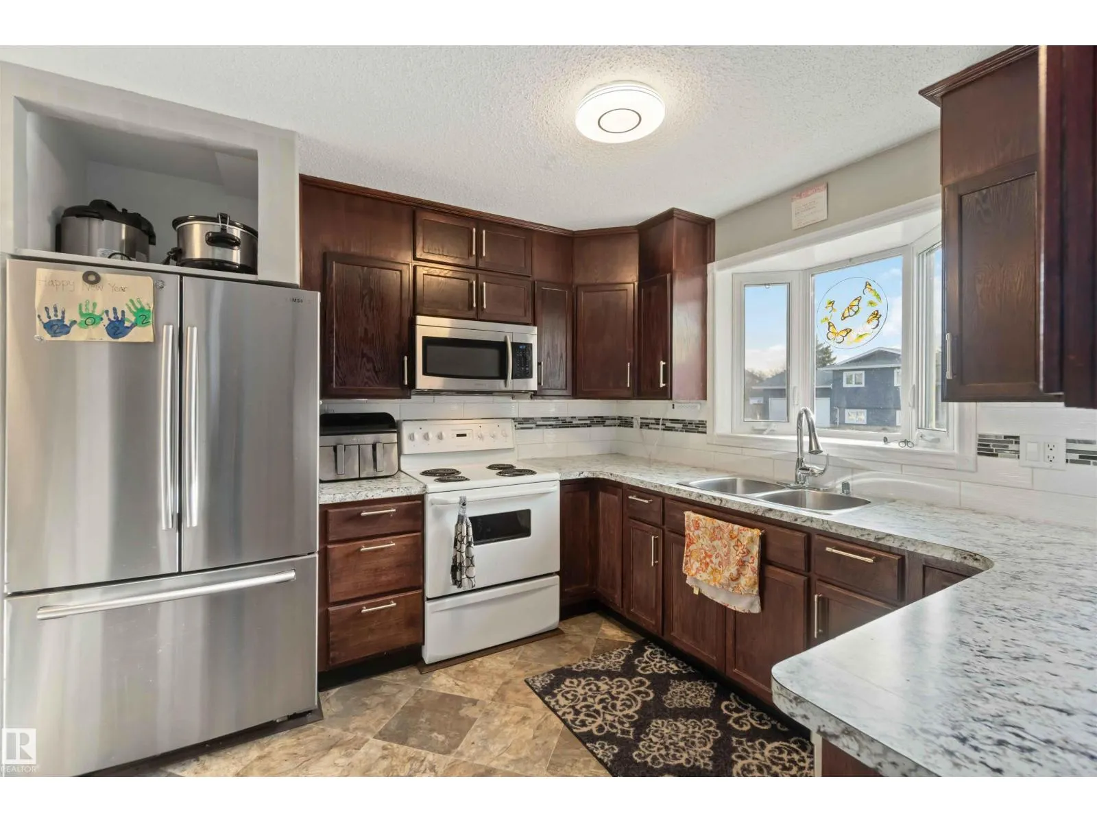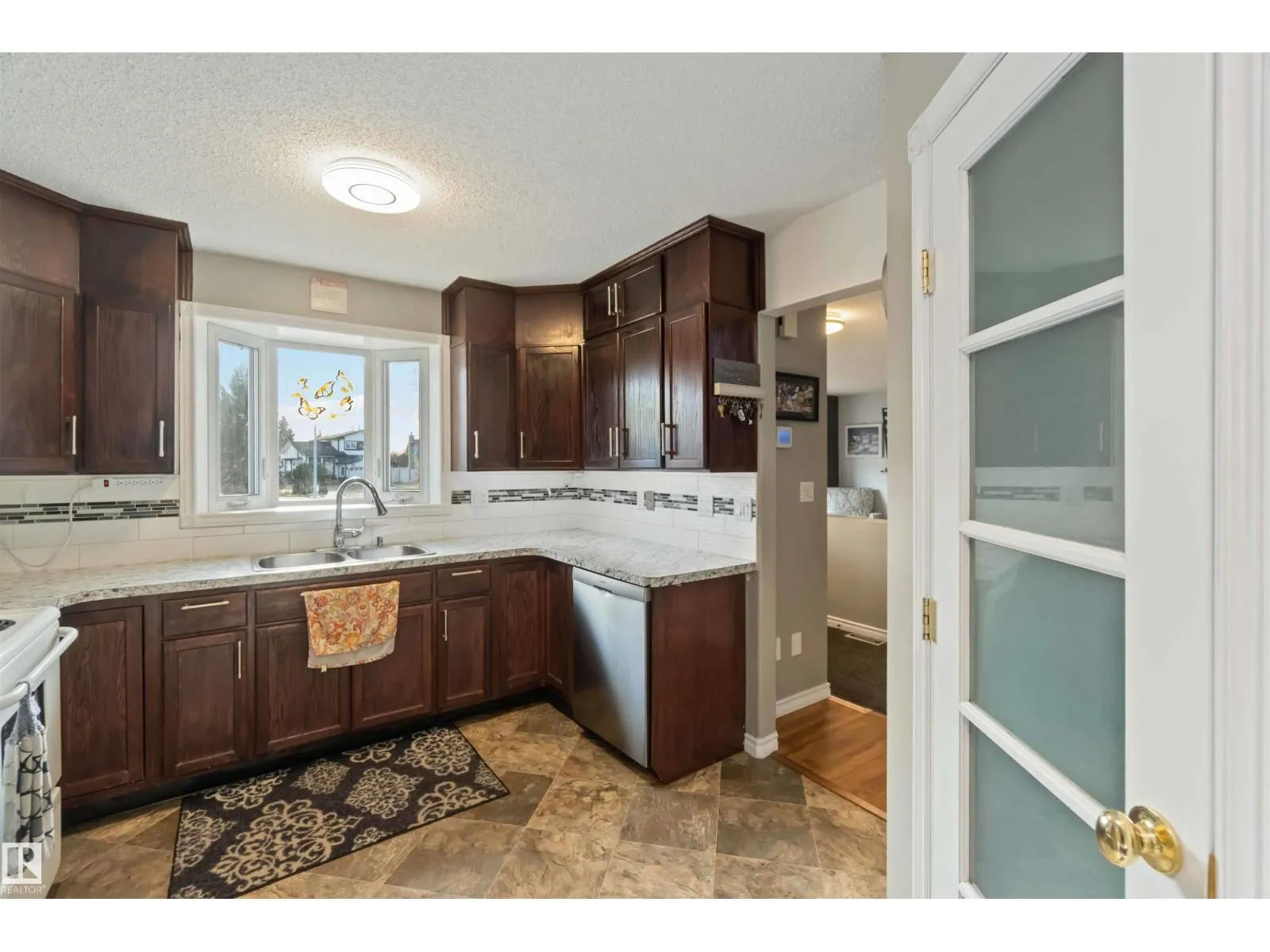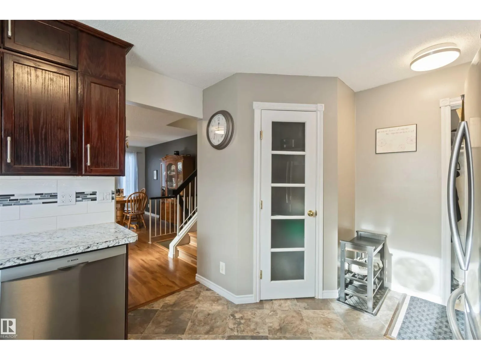 Beautiful 4-level split in La Perle offering 1888sqft of developed living space & a bright, welcoming feel throughout. The main floor features a sunny living room with a large front bay window & a cozy gas fireplace, a spacious dining area & a functional kitchen complete with a walk-in pantry. Upstairs youâll find the primary, an additional comfortable bedroom & a clean, well-kept 4pc bath. The lower level offers a 3rd bedroom, a family room perfect for movie nights & an additional 3pc bath. The basement adds a generous recreation room plus ample storage for seasonal items & hobbies. Outside, enjoy a large fenced yard with a rolling gate, a double detached heated garage & direct access to the green space behindâideal for pets & kids. Located in a quiet, safe neighbourhood & just steps from shopping, transit, schools & everyday amenities. Updated with laminate & vinyl plank flooring, newer shingles, HWT, and triple pane windows, this home is move-in ready with room to grow. All this home needs is YOU! (id:27476)