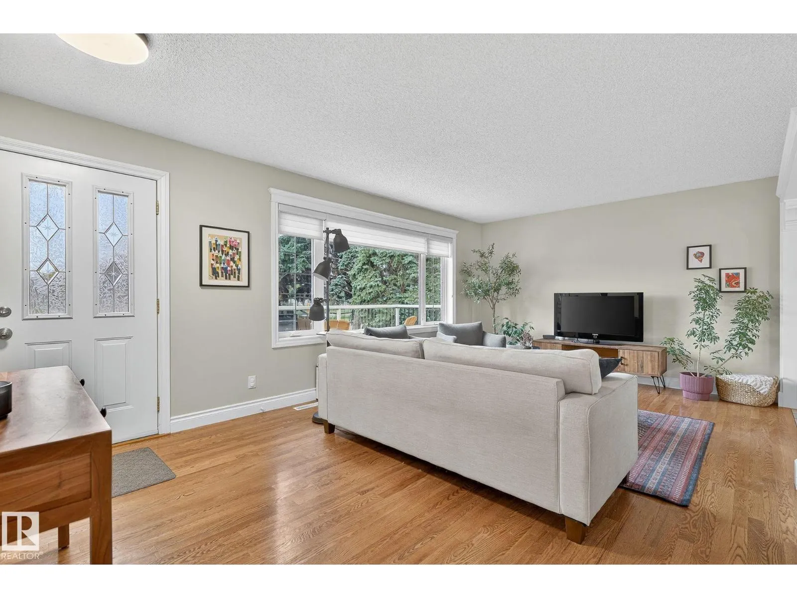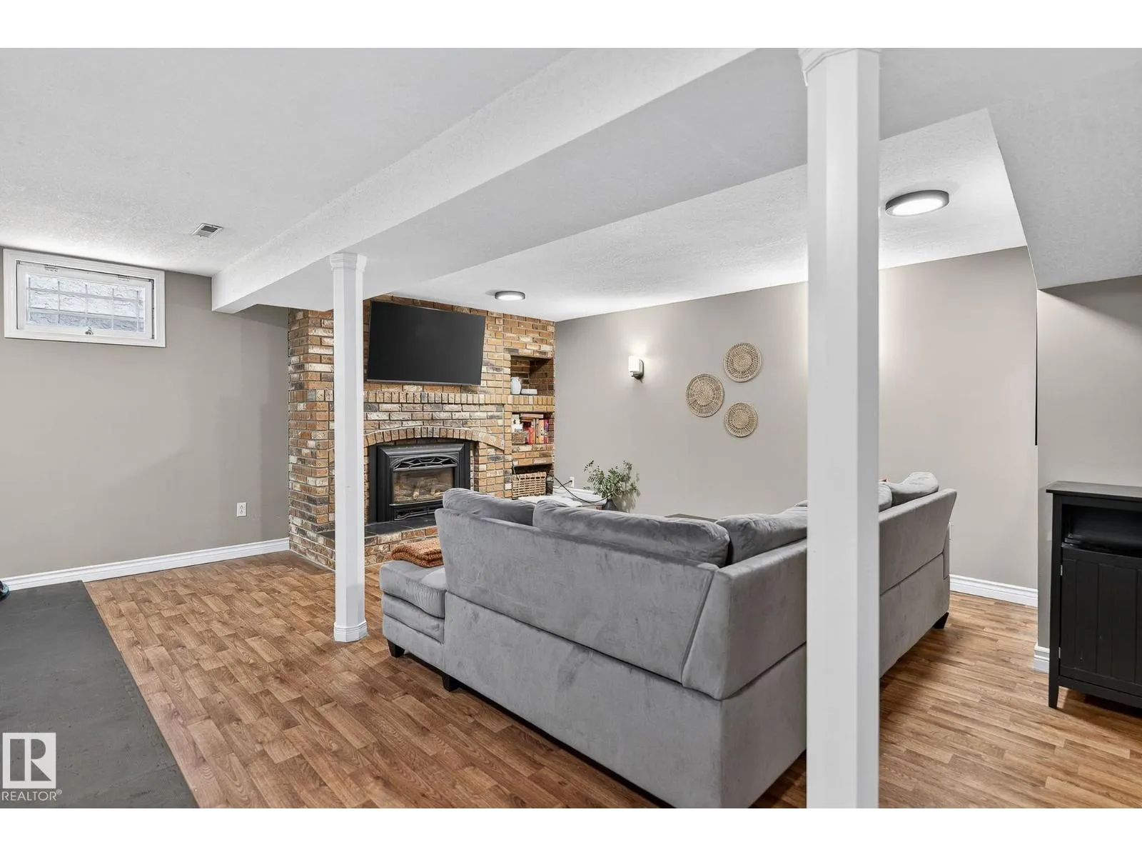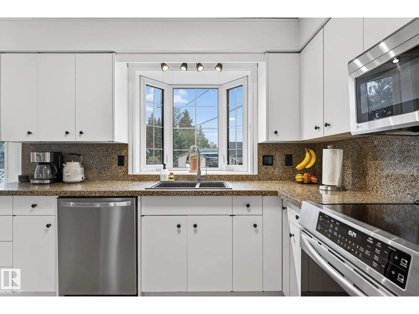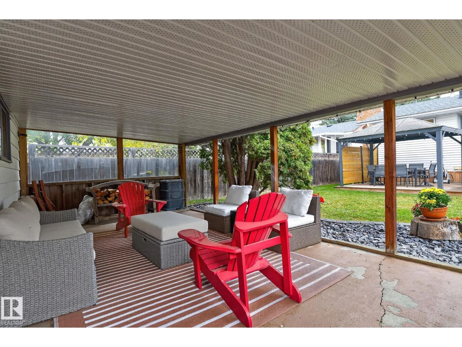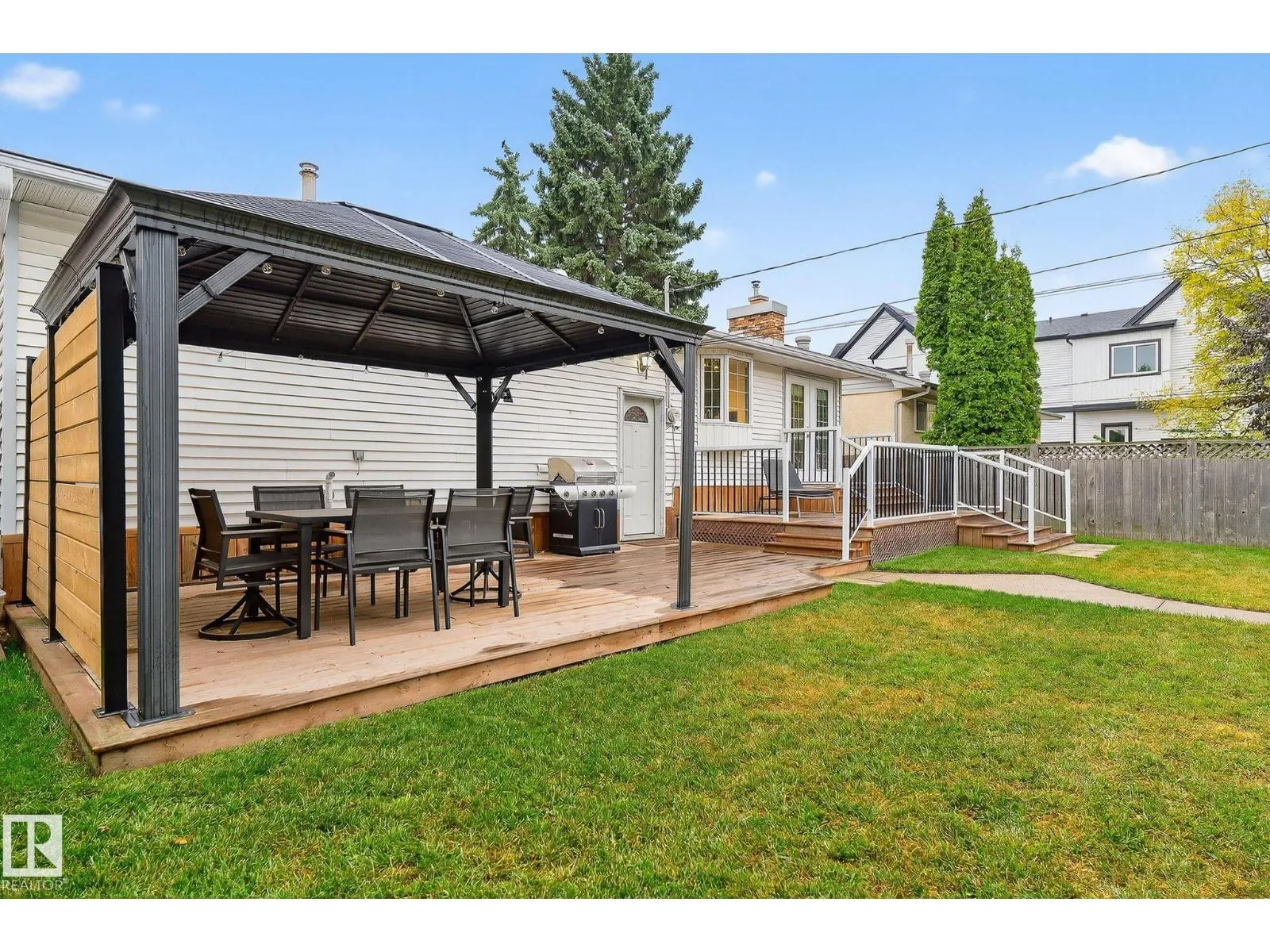 Donât miss this exquisitely cared-for home in High Park! Perfectly located across from a playground and park, on a beautifully manicured lot, this charming bungalow has been meticulously maintained inside and out. Enjoy the bright, open living and dining areas as well as the upgraded kitchen with granite countertops overlooking the stunning backyard. The main floor features a full bathroom and three spacious bedrooms. The separate entrance leads to a fully finished basement with a large family room centred around a beautiful brick fireplace, a fourth bedroom with a newly renovated ensuite, laundry, and new high efficiency furnace (2025) and plenty of storage. Stay cool all summer with brand new air conditioning (2025), and enjoy the oversized double garage with covered storage or entertainment area, a large tiered deck and west facing back yard. A true move-in-ready gem in one of Edmontonâs most desirable mature neighbourhoods! (id:27476)