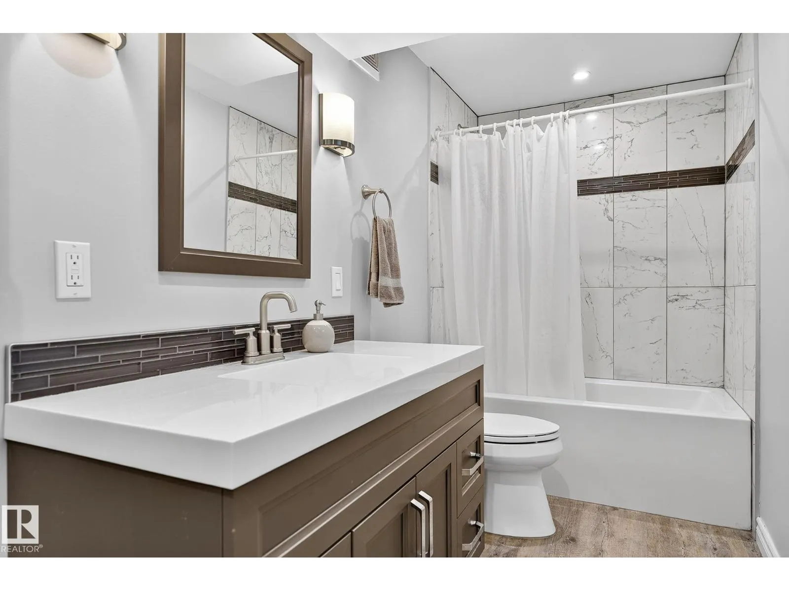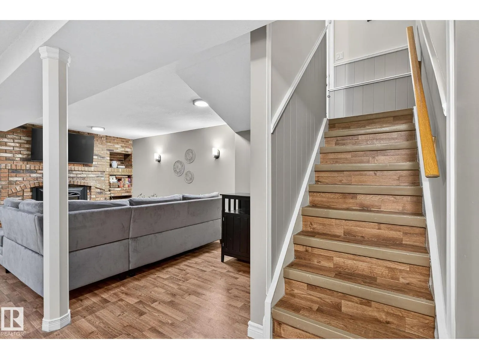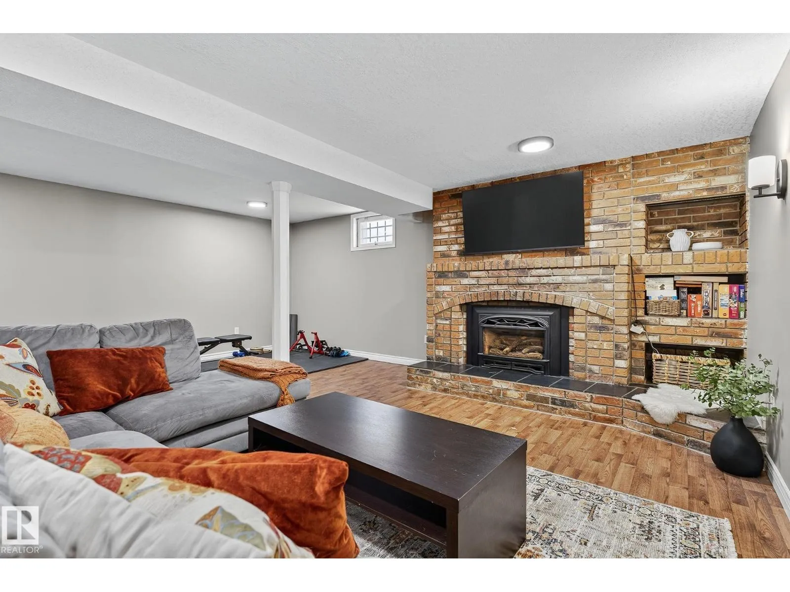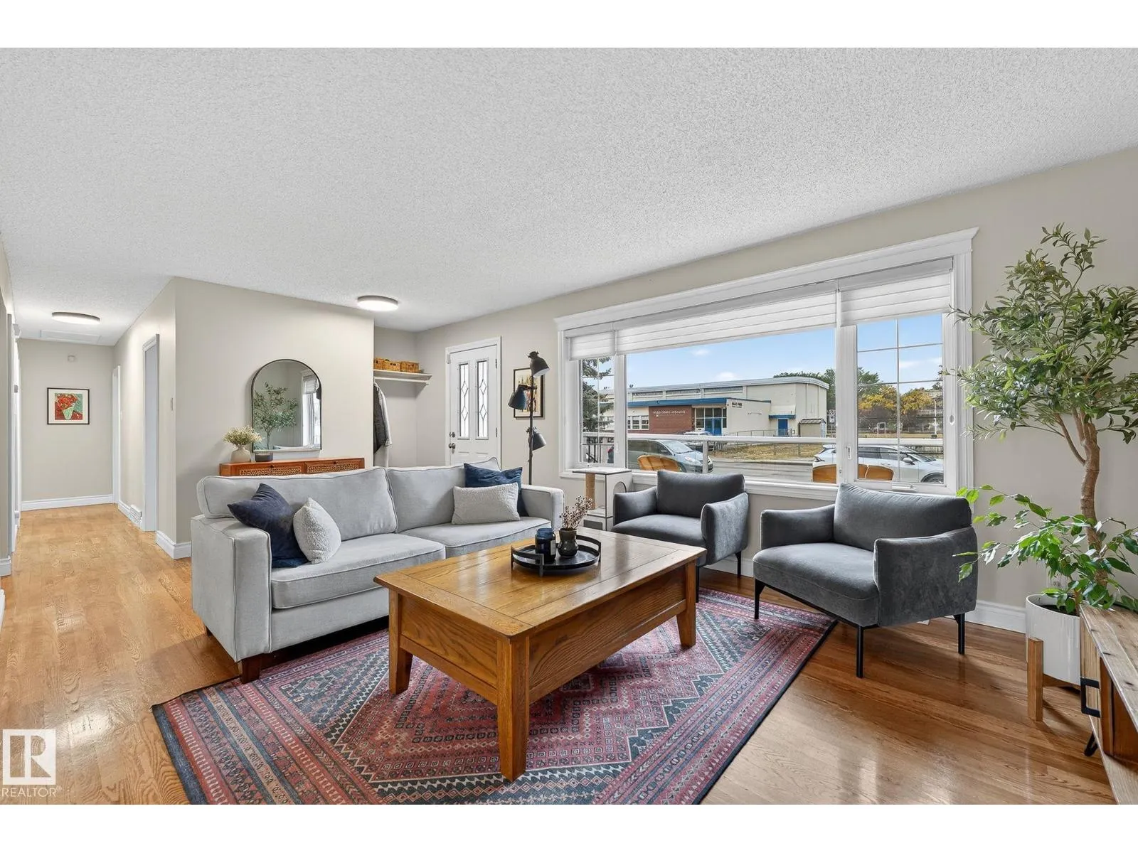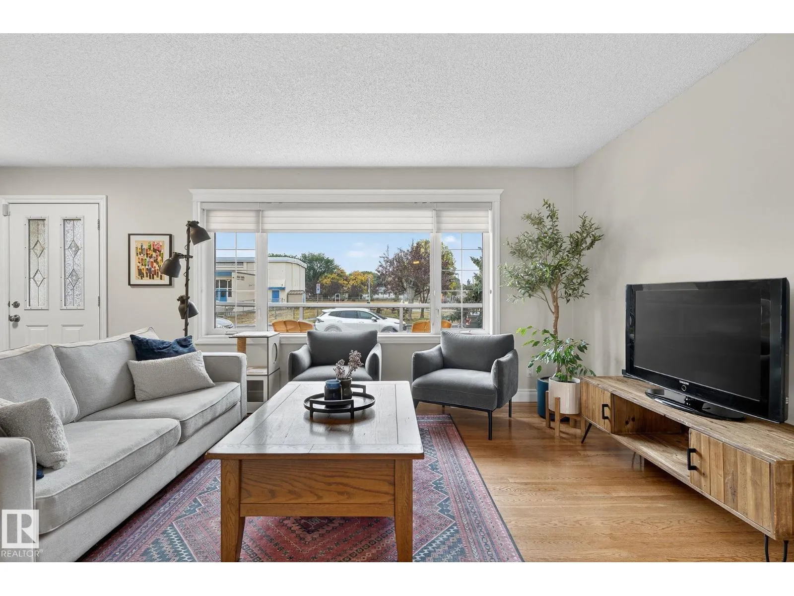 Donât miss this exquisitely cared-for home in High Park! Perfectly located across from a playground and park, on a beautifully manicured lot, this charming bungalow has been meticulously maintained inside and out. Enjoy the bright, open living and dining areas as well as the upgraded kitchen with granite countertops overlooking the stunning backyard. The main floor features a full bathroom and three spacious bedrooms. The separate entrance leads to a fully finished basement with a large family room centred around a beautiful brick fireplace, a fourth bedroom with a newly renovated ensuite, laundry, and new high efficiency furnace (2025) and plenty of storage. Stay cool all summer with brand new air conditioning (2025), and enjoy the oversized double garage with covered storage or entertainment area, a large tiered deck and west facing back yard. A true move-in-ready gem in one of Edmontonâs most desirable mature neighbourhoods! (id:27476)