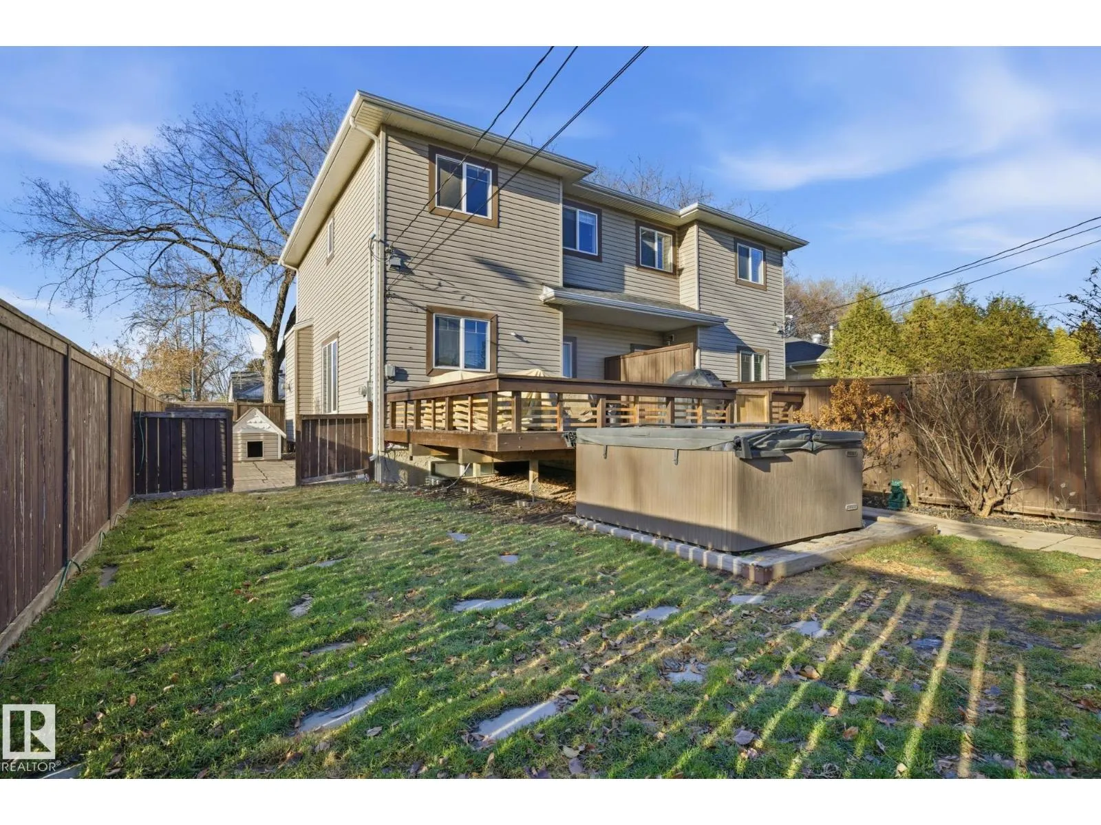 PLATINUM PROPERTY!! Bright & beautifully maintained half duplex on a sunny corner lot with RV parking & single detached garage. The inviting main floor features a cozy gas fireplace, U-shaped kitchen with updated appliances & plenty of natural light. Conveniently located near the Portuguese Bakery, Costco & other great shops, this home offers comfort & convenience in one great package. Upstairs you'll find 3 bedrooms including a primary suite with walk-in closet & 4-pc ensuite. The finished basement adds a rec room, laundry area & bedroom with 3-pc ensuiteâperfect for guests or teens. Step outside to a large deck & hot tubâideal for entertaining or relaxing at the end of the day. The spacious side yard, currently a dog run, offers sunny south exposure & potential for a garden. With RV parking, concrete curbing, tidy landscaping & a generous yard ready for summer fun, the main floor freshly painted and newer appliances this home is truly move-in readyâjust unpack & enjoy! (id:27476)
