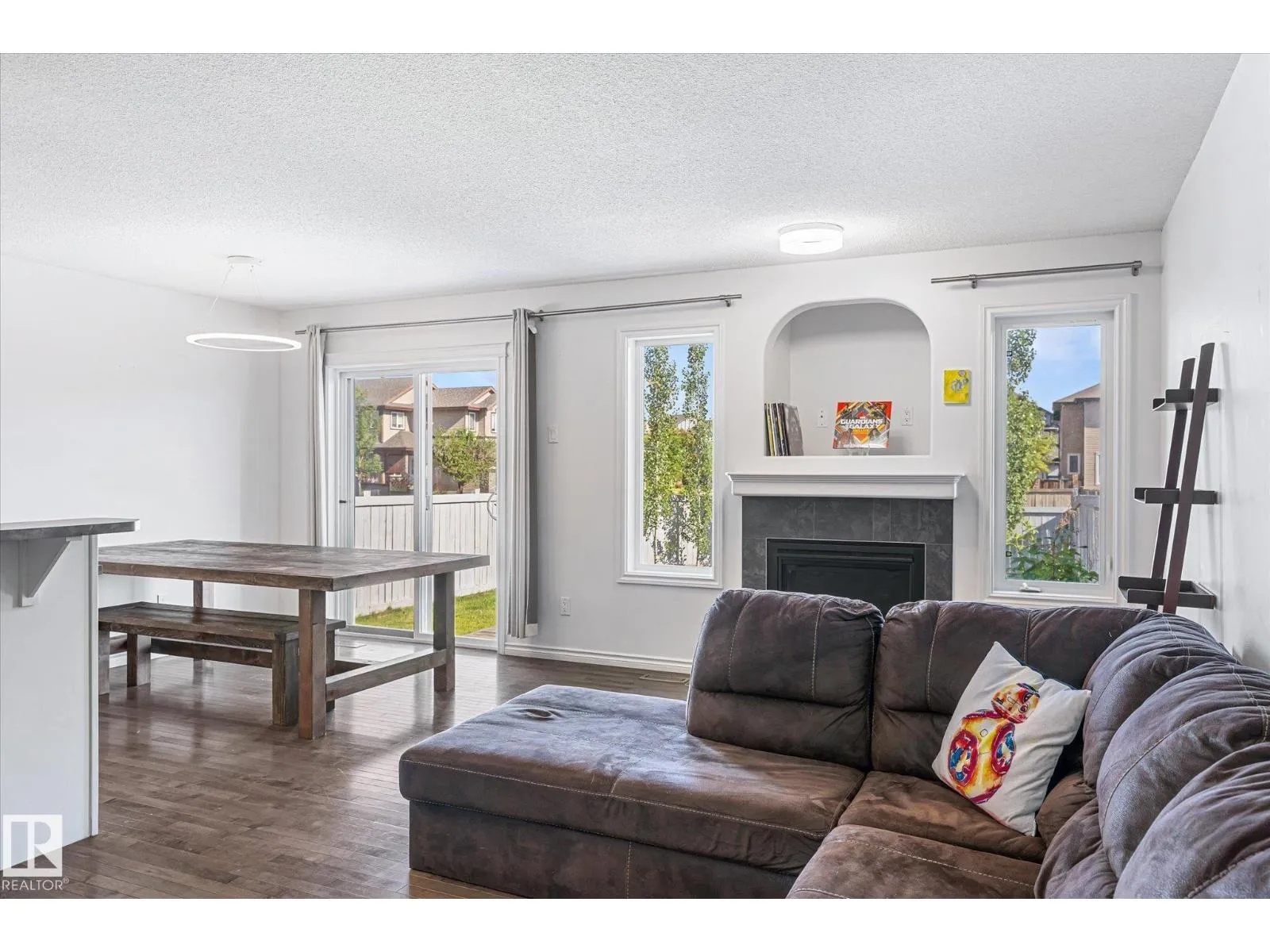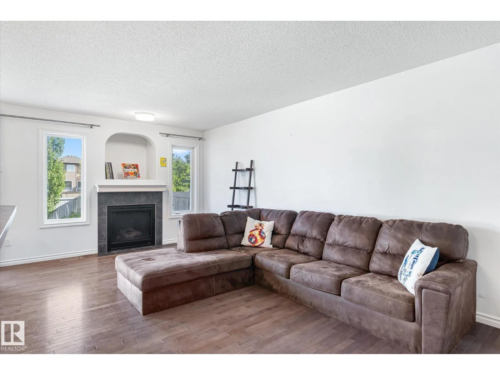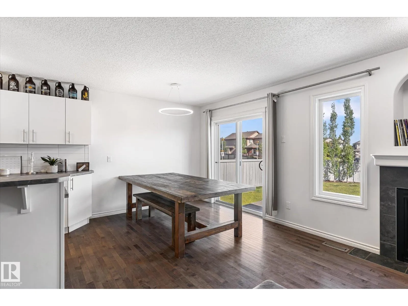 Enormous lot with no neighbours on two sides! This fully finished home welcomes you in with shining hardwood flooring. The bright white kitchen has an island kitchen with eating bar, tons of counter and cabinet space plus a corner pantry. The kitchen overlooks the dining and living area with gas fireplace. Patio doors off the dining area lead to a deck and large fenced yard. Perfect for kids and dogs to roam in! Upstairs there are three good sized bedrooms including a master bedroom with walk in closet. The full bathroom features tile flooring and white cabinetry. The basement has a finished family room. The projector and screen also stay, perfect for your family's movie night! Central A/C is an added bonus, and you have a garage, ample parking in the driveway and lots of on street parking. All of this in popular the Windermere community close to schools, parks, trails gyms and shopping. (id:27476)