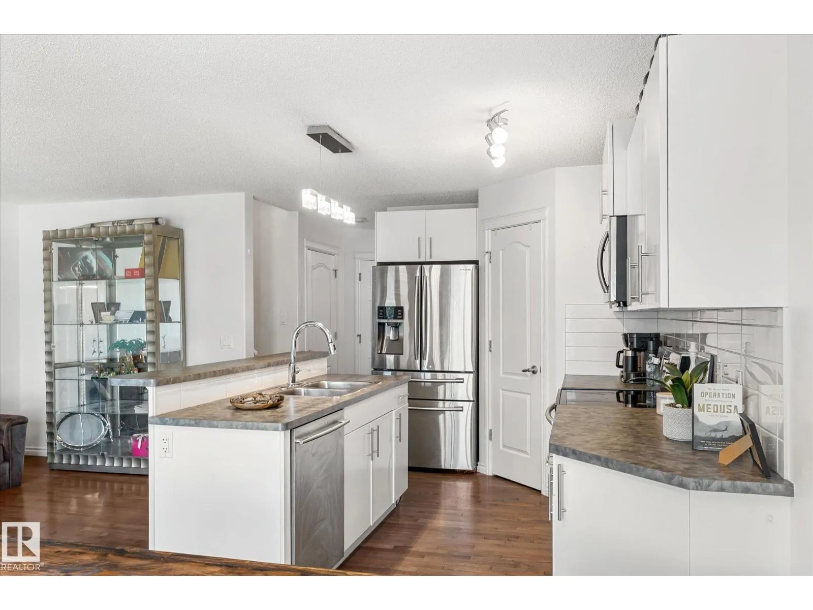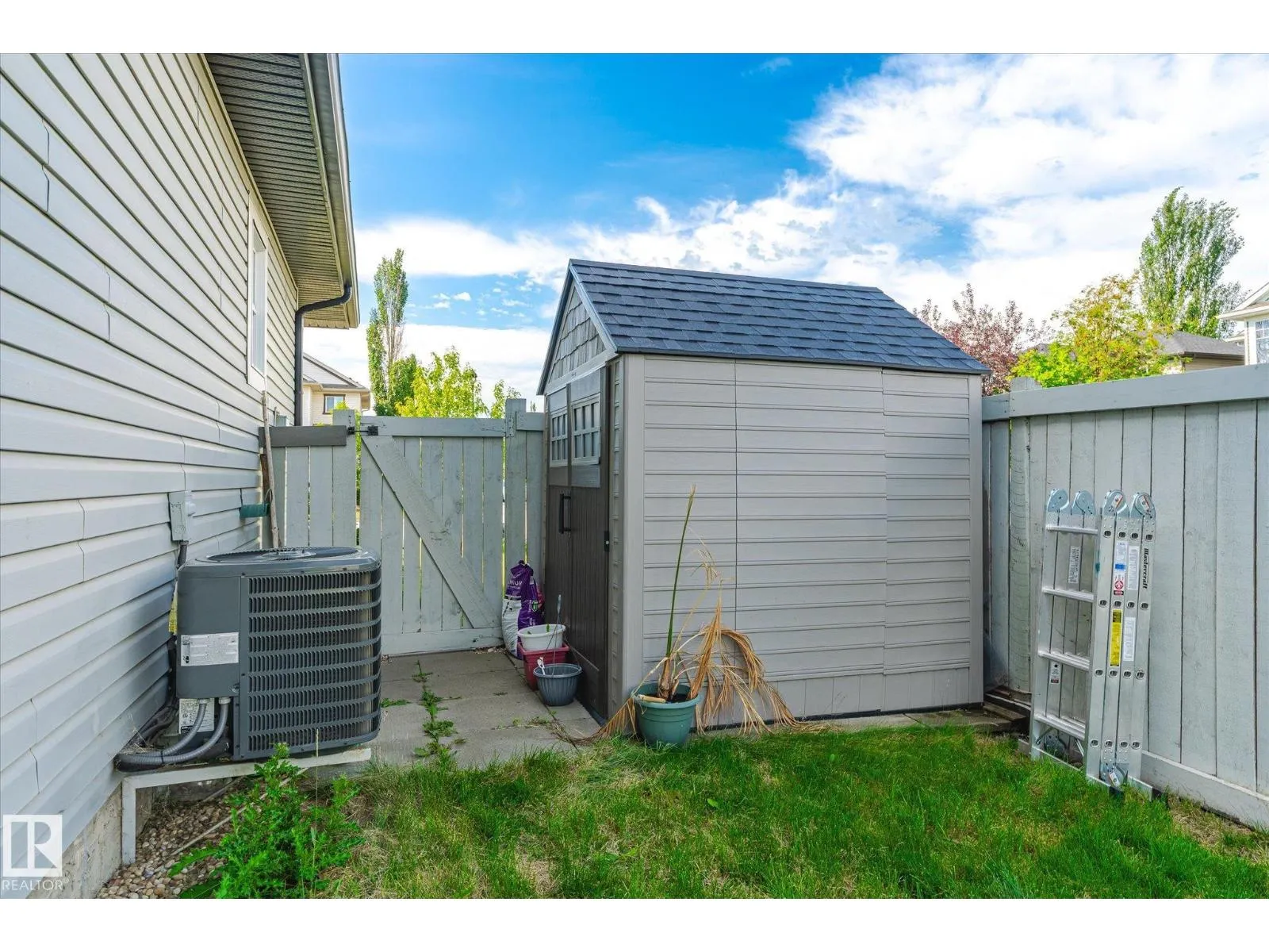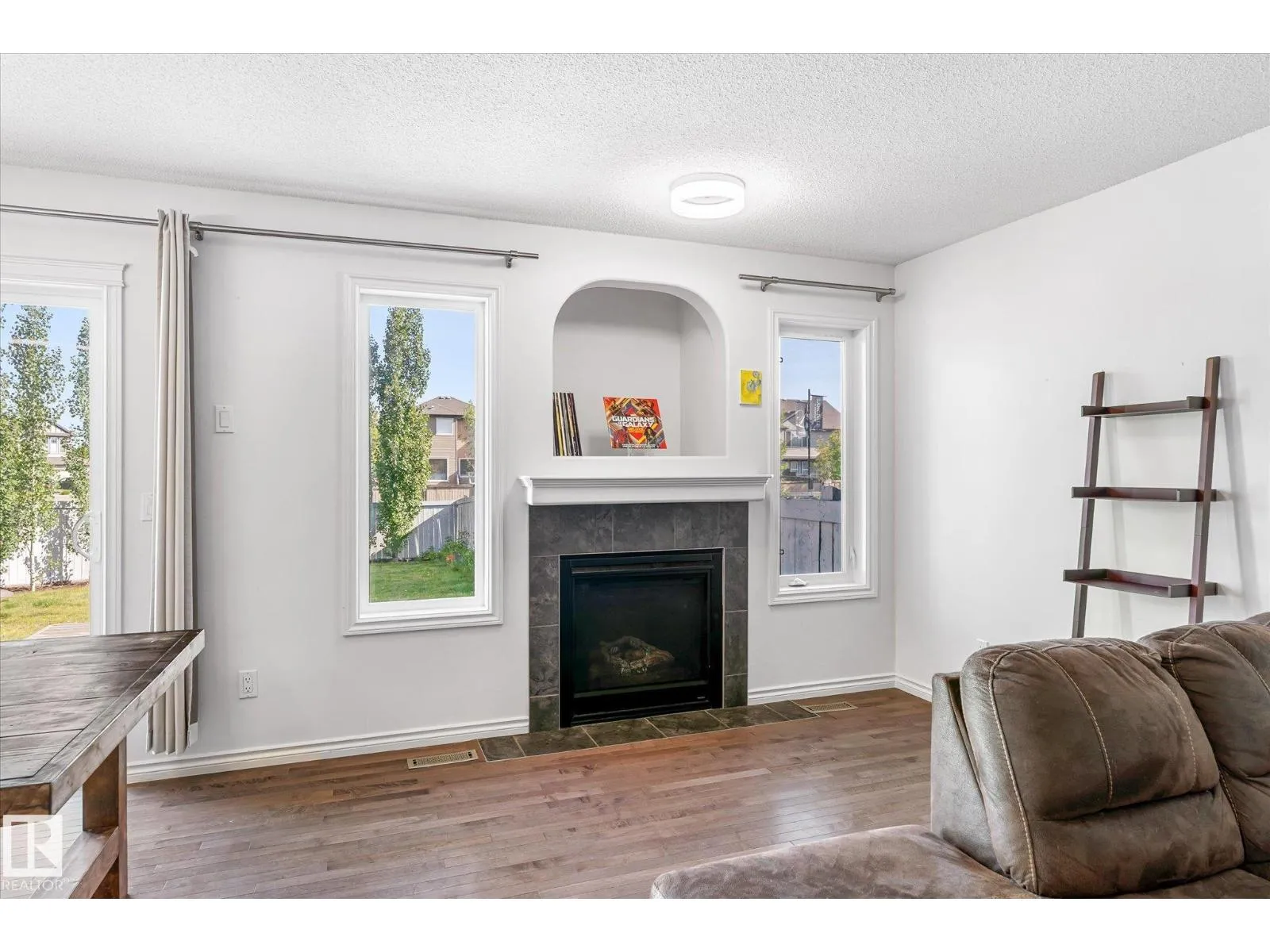 Enormous lot with no neighbours on two sides! This fully finished home welcomes you in with shining hardwood flooring. The bright white kitchen has an island kitchen with eating bar, tons of counter and cabinet space plus a corner pantry. The kitchen overlooks the dining and living area with gas fireplace. Patio doors off the dining area lead to a deck and large fenced yard. Perfect for kids and dogs to roam in! Upstairs there are three good sized bedrooms including a master bedroom with walk in closet. The full bathroom features tile flooring and white cabinetry. The basement has a finished family room. The projector and screen also stay, perfect for your family's movie night! Central A/C is an added bonus, and you have a garage, ample parking in the driveway and lots of on street parking. All of this in popular the Windermere community close to schools, parks, trails gyms and shopping. (id:27476)