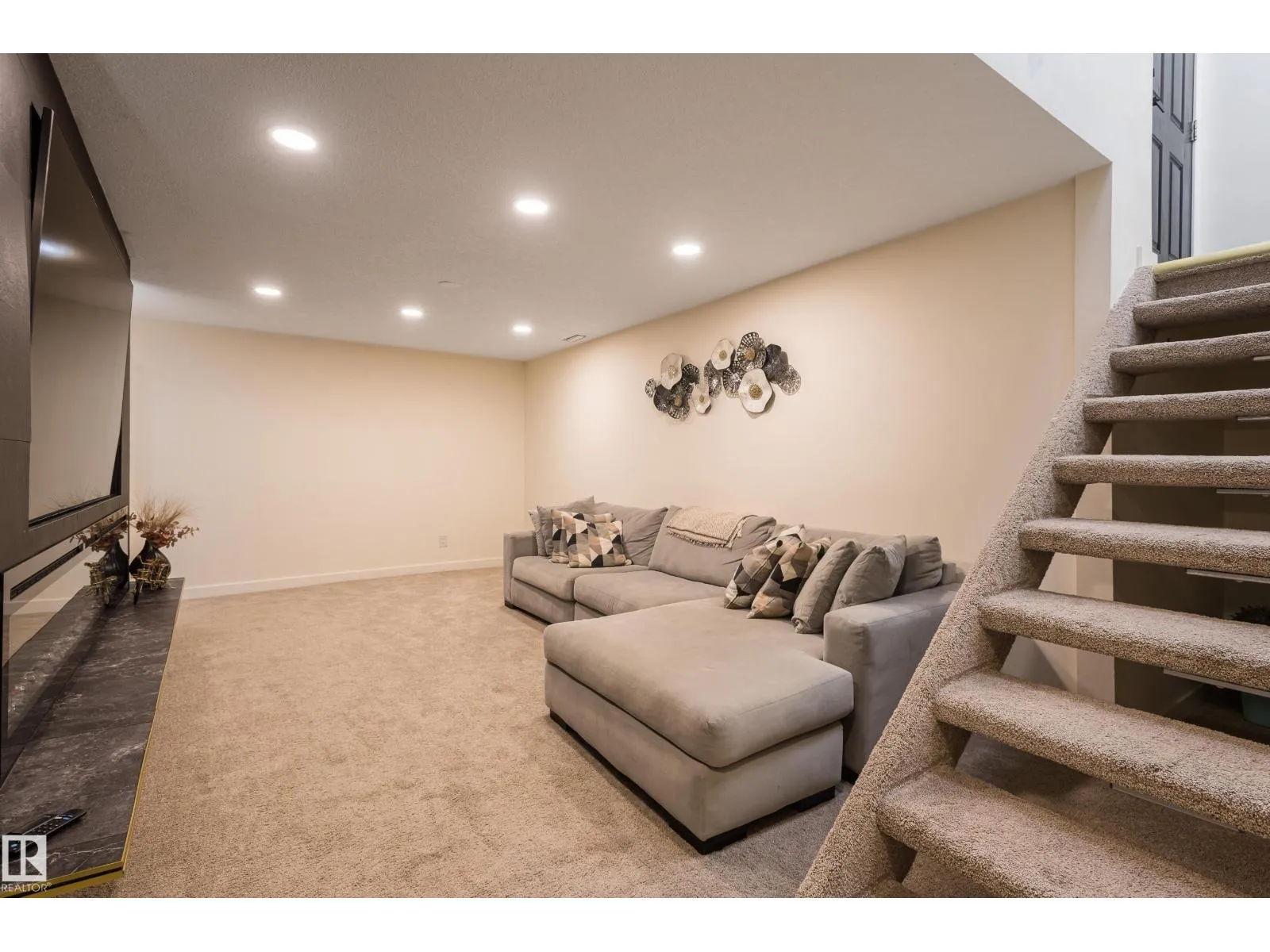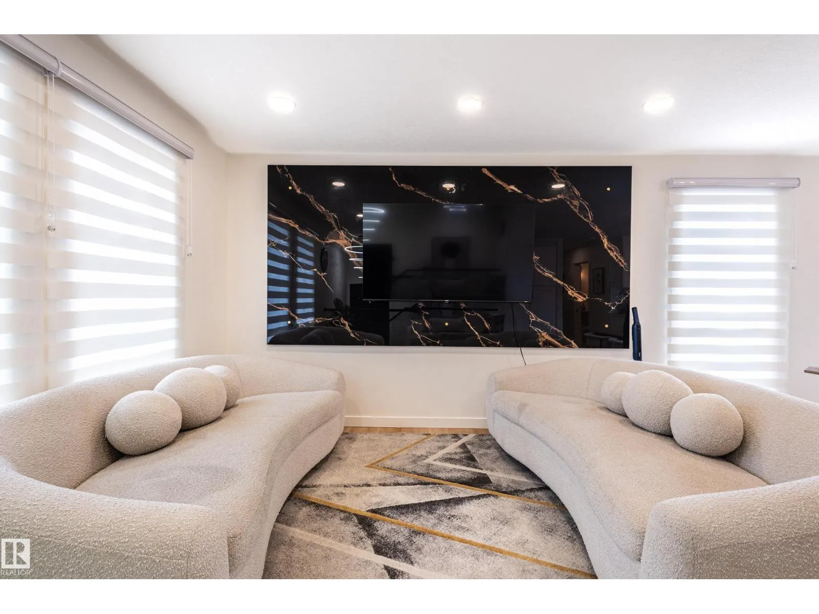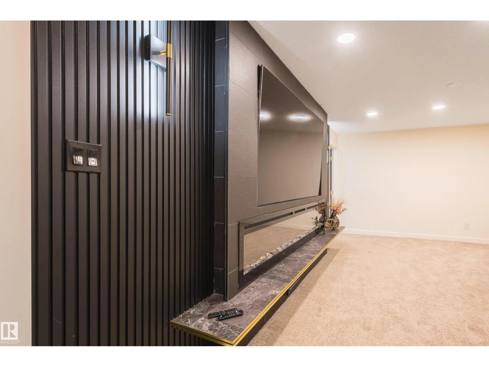 MOTIVATED SELLER. LARGE FAMILY..? Welcome to Baturyn's youngest home! The main floor showcases a bright living area with a striking DESIGNER PORCELAIN feature wall, sleek GLASS RAILINGS, chef-inspired kitchen with PREMIUM APPLIANCES next to a bright dining area ideal for gathering and entertaining. The primary suite offers a chic ENSUITE, situated next to two more bedrooms and full bath. The FULLY FINISHED basement impresses with a custom FIREPLACE/TV WALL + rec area, two bedrooms (one with ENSUITE + LOUNGE), and an additional full bath â perfect for family living or hosting guests. Nestled in a quiet, family-oriented community near schools, parks, and amenities, this home delivers sophisticated style and functionality on a CORNER LOT with an OVERSIZED DOUBLE GARAGE, spacious yard, and expansive deck â the perfect balance of LUXURY and LIVABILITY. (id:27476)