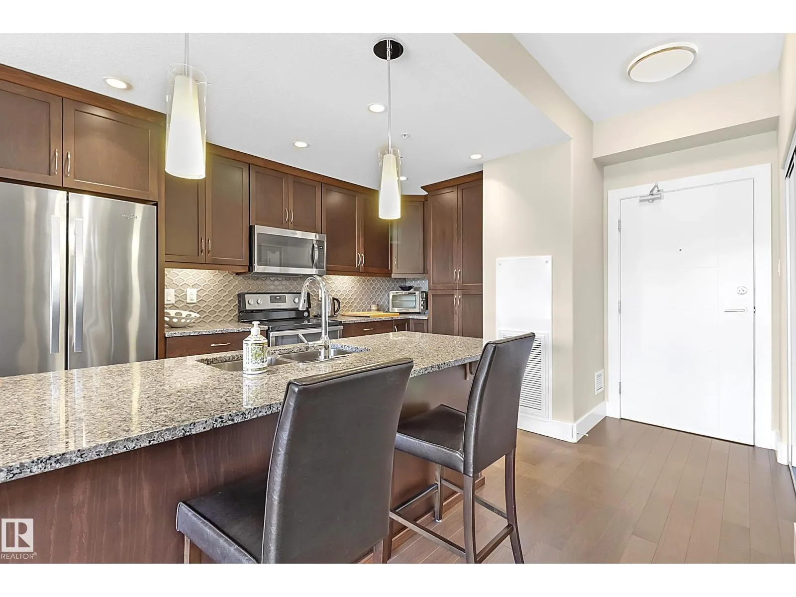 SIDE BY SIDE UNDERGROUND PARKING AND STORAGE! Affordable Luxury at The Escapes in Richford! Bright and modern open-concept condo featuring a stylish kitchen with plenty of cabinetry, stainless steel appliances, and a large island. The living room opens to a large balcony, perfect for summer evenings. The primary suite offers a walk-through closet and a large ensuite. There is a spacious second bedroom, full second bath, and in-suite laundry with storage. Includes two titled heated underground parking stallsâone with a storage unit. Prime location near Ellerslie Road, Anthony Henday, shopping, and dining. Priced to sell! (id:27476)