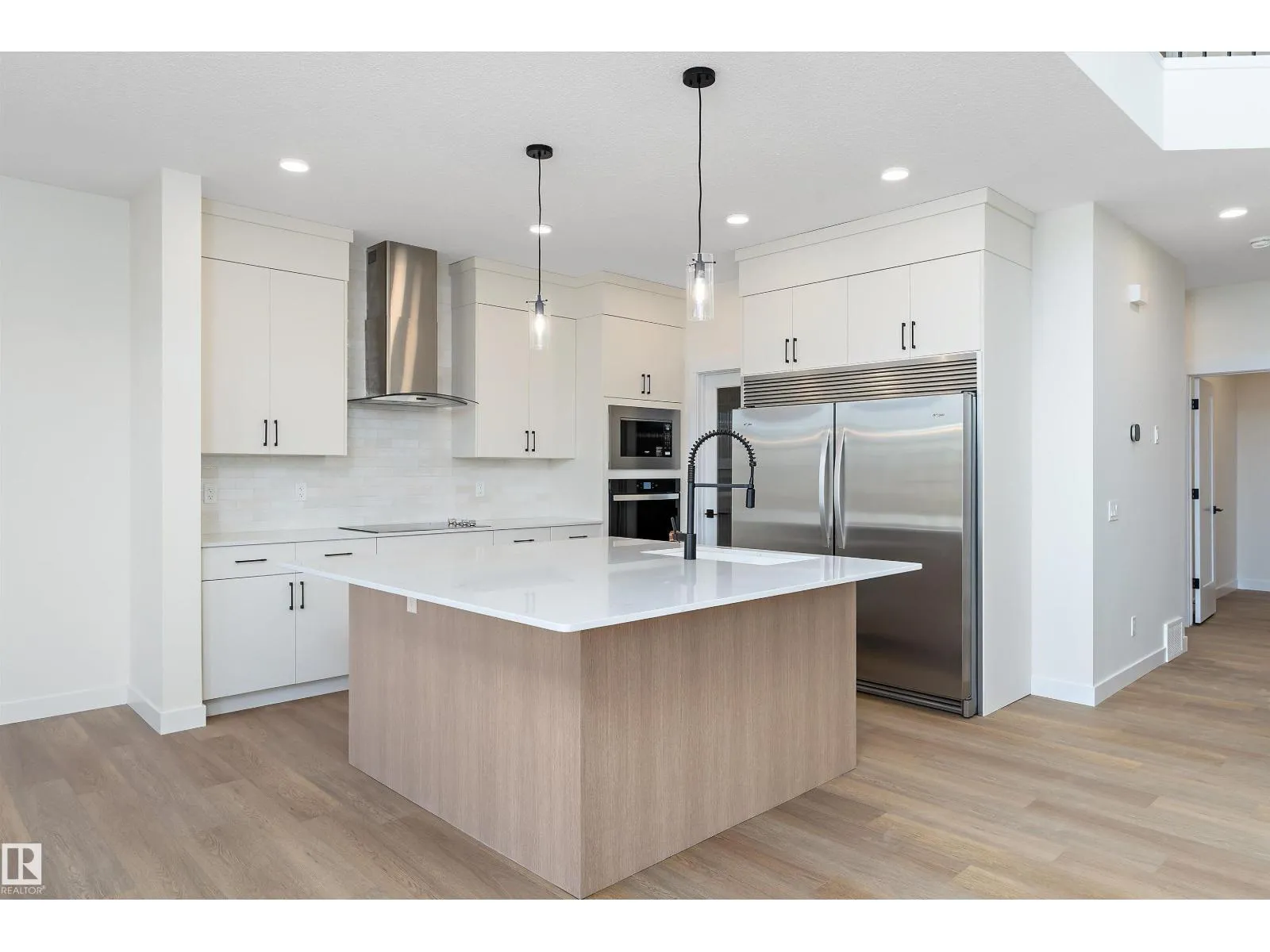 Welcome to this amazing 2,308 Sq Ft home, perfect for modern living with a touch of elegance! This spacious 3-bedroom home is designed with family and entertainment in mind. Step into the main floor where you'll find a bright den and full bath. The well-planned mudroom off the garage entrance offers convenience for busy days. The heart of the home is the chef's dream kitchen with more than ample cabinetry and quartz countertops. The open-to-above great room creates a grand and inviting space, ideal for gatherings and cozy nights. Upstairs, retreat to the vaulted ceiling master bedroom with a luxurious 5-piece ensuite, offering double sinks, a deep soaker tub, and a separate shower. The additional bedrooms are spacious and well-lit. Plus, enjoy the potential of an optional basement legal suite with a separate side entrance, offering extra living space. To put the cherry on top, this home backs onto a walking path and pond, perfect for those summer time walks! Immediate possession! (id:27476)
