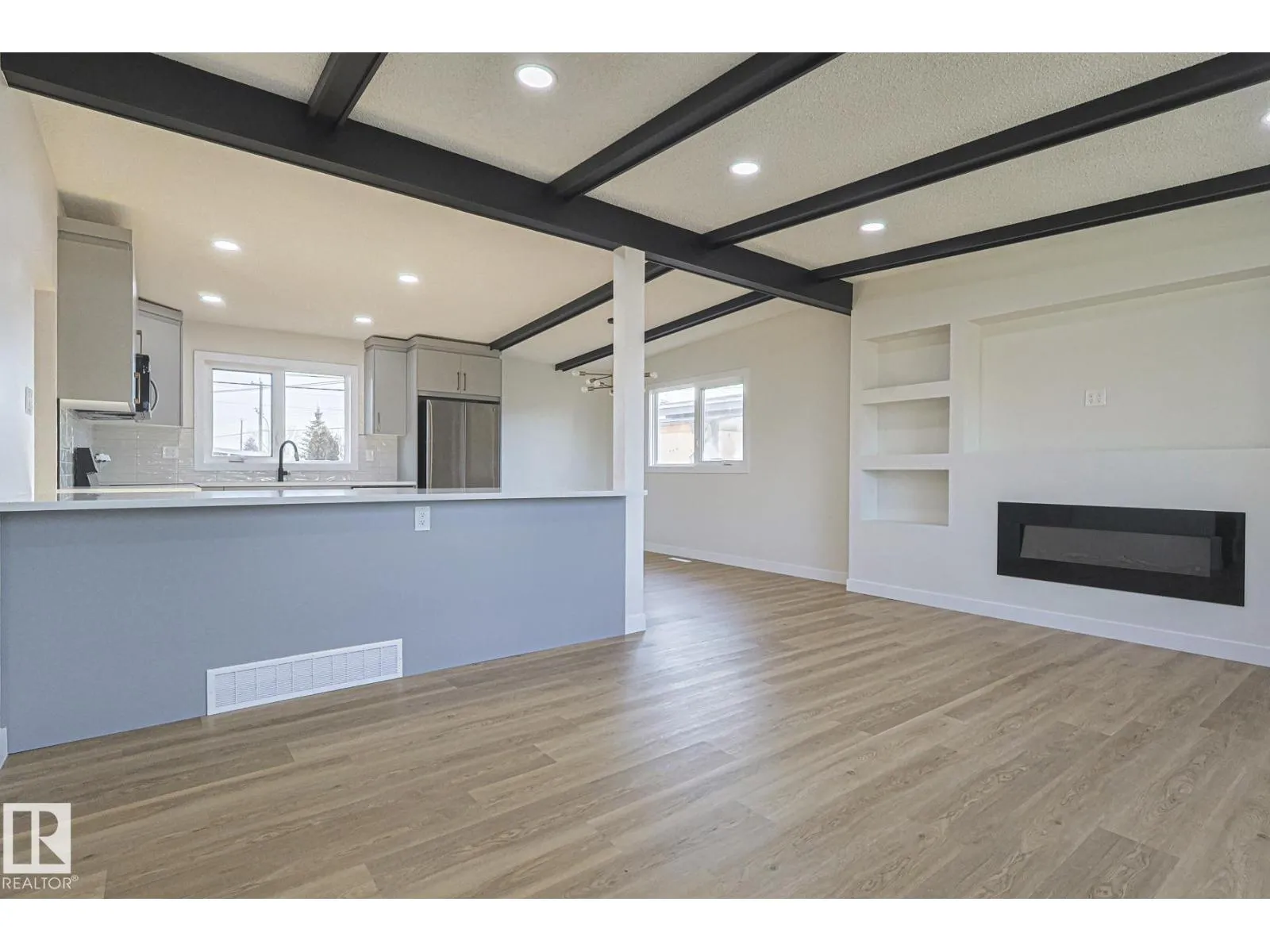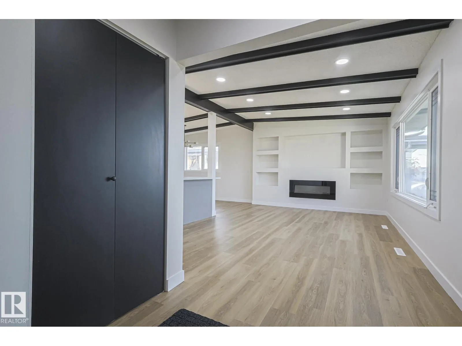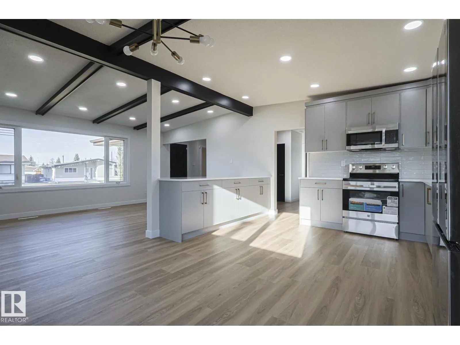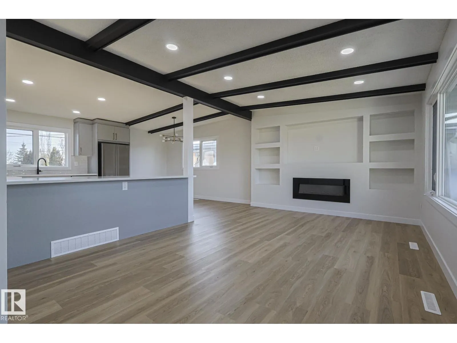 FULLY RENOVATED & MOVE-IN READY! This gorgeous 5-bedroom bungalow on a HUGE lot in family-friendly Delwood has it all! Every inch has been beautifully updated with modern style and high-end finishes â stunning vinyl plank flooring, pot lighting, & quartz counters. Newer windows, furnace (2020), HWT (2023), and softener (2023). Youâll love the bright open layout with vaulted ceilings, exposed beams, and a sleek linear fireplace. The chefâs kitchen shines with quartz counters, stainless steel appliances, elegant cabinetry, and a breakfast bar overlooking the spacious living room. Three generous bedrooms and a designer bathroom complete the main floor. The SEPARATE ENTRANCE leads to a fabulous finished basement with 2 bedrooms, a big family room with custom WET BAR, luxury bath with glass shower, and plenty of storage. Enjoy the large fenced yard, patio, DOUBLE garage and let's not forget the CENTRAL A/C!!. Close to great schools, shopping, and parks â this stylish home is the total package! (id:27476)
