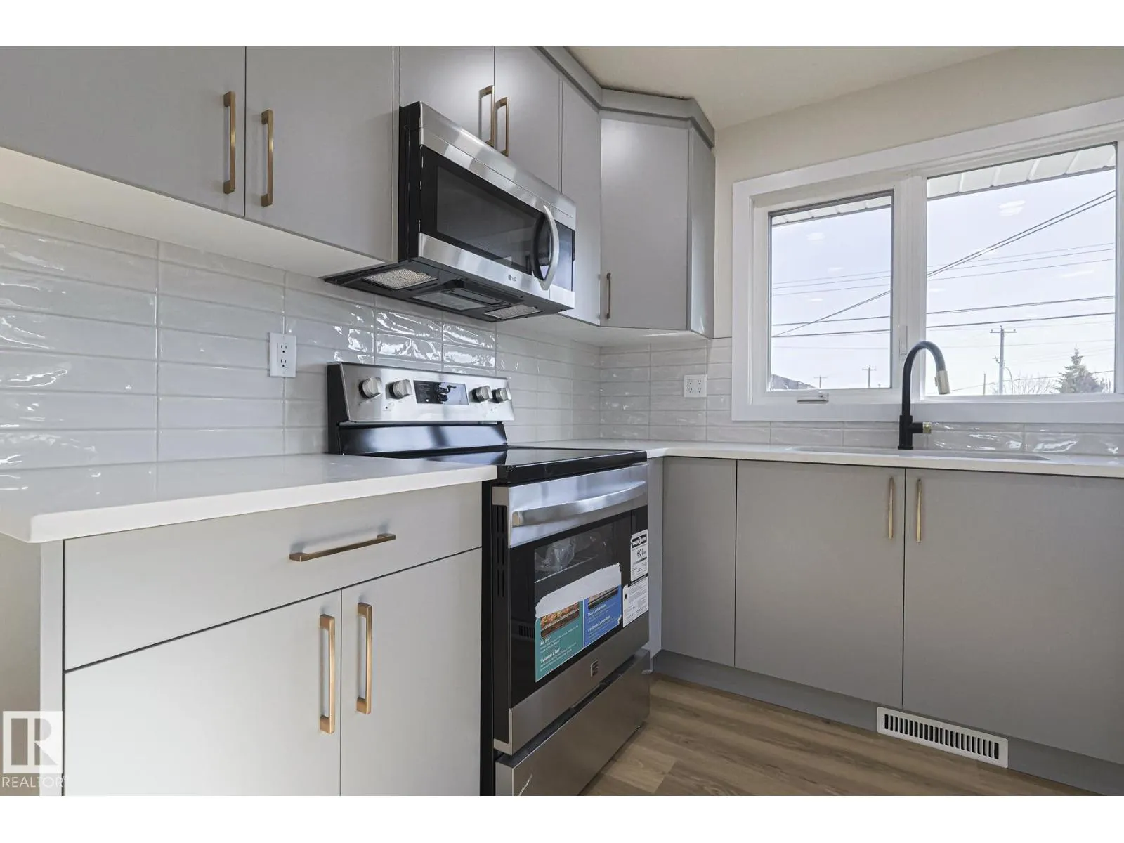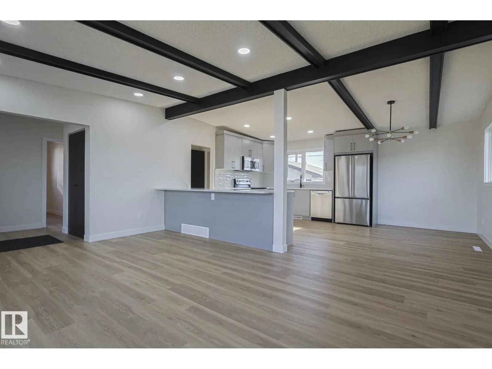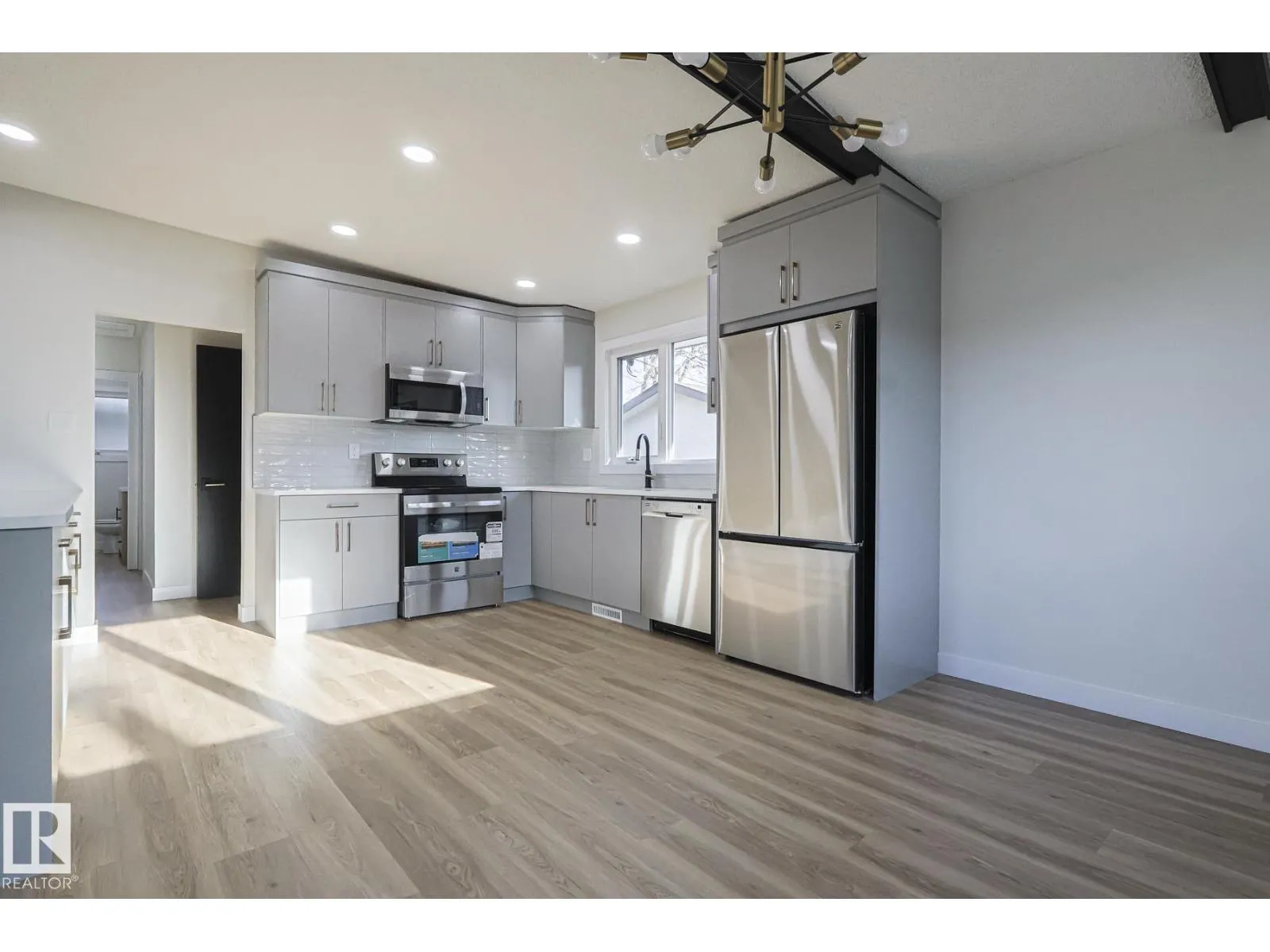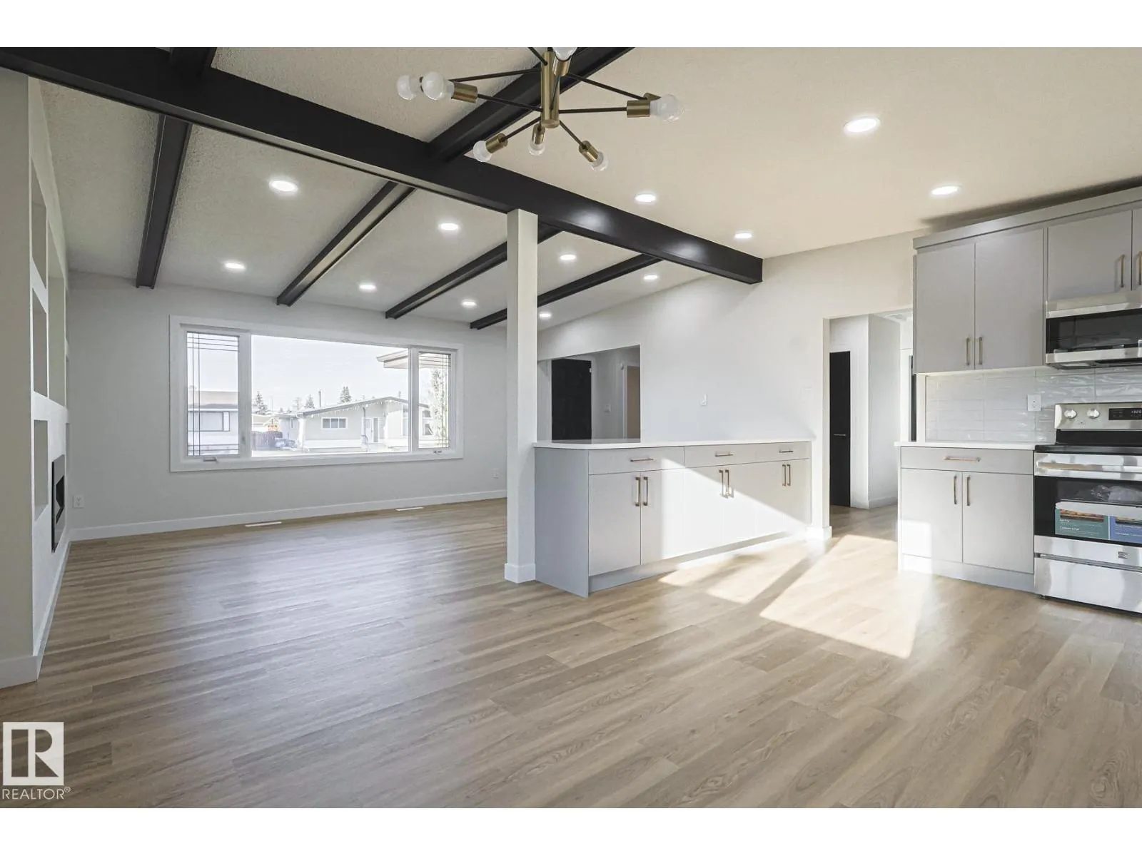 FULLY RENOVATED & MOVE-IN READY! This gorgeous 5-bedroom bungalow on a HUGE lot in family-friendly Delwood has it all! Every inch has been beautifully updated with modern style and high-end finishes â stunning vinyl plank flooring, pot lighting, & quartz counters. Newer windows, furnace (2020), HWT (2023), and softener (2023). Youâll love the bright open layout with vaulted ceilings, exposed beams, and a sleek linear fireplace. The chefâs kitchen shines with quartz counters, stainless steel appliances, elegant cabinetry, and a breakfast bar overlooking the spacious living room. Three generous bedrooms and a designer bathroom complete the main floor. The SEPARATE ENTRANCE leads to a fabulous finished basement with 2 bedrooms, a big family room with custom WET BAR, luxury bath with glass shower, and plenty of storage. Enjoy the large fenced yard, patio, DOUBLE garage and let's not forget the CENTRAL A/C!!. Close to great schools, shopping, and parks â this stylish home is the total package! (id:27476)
