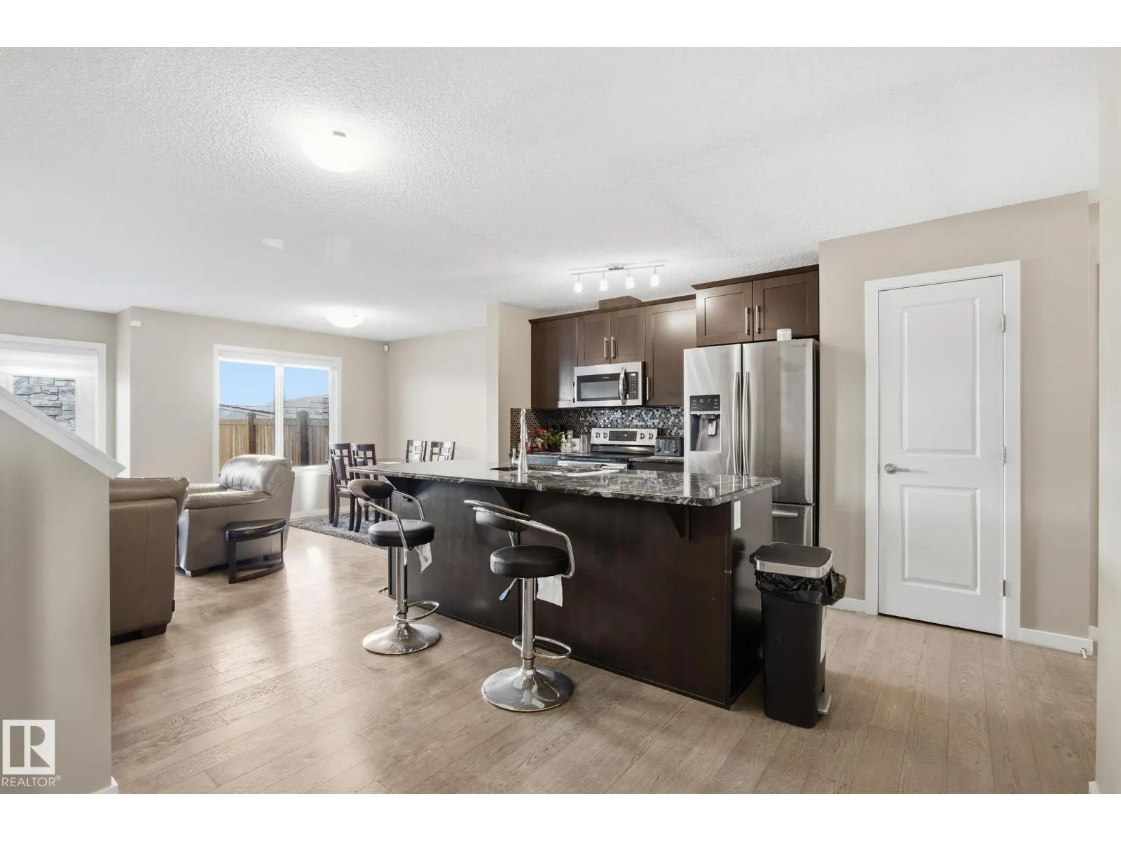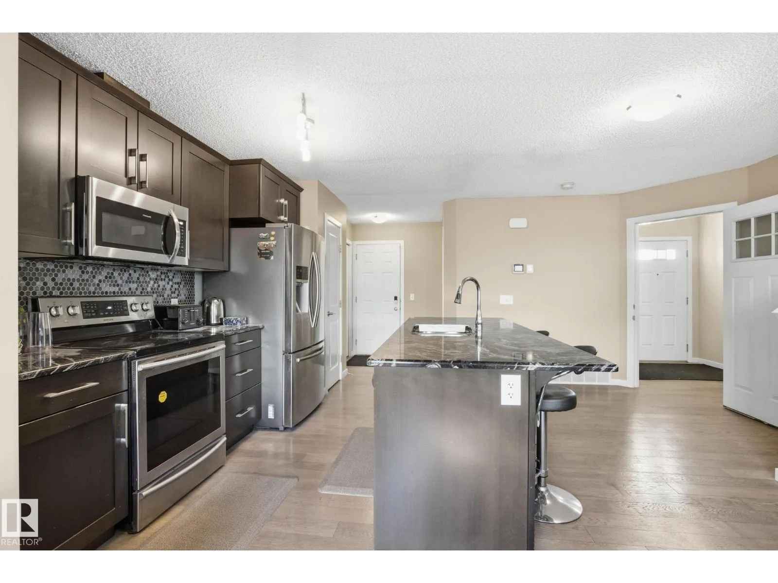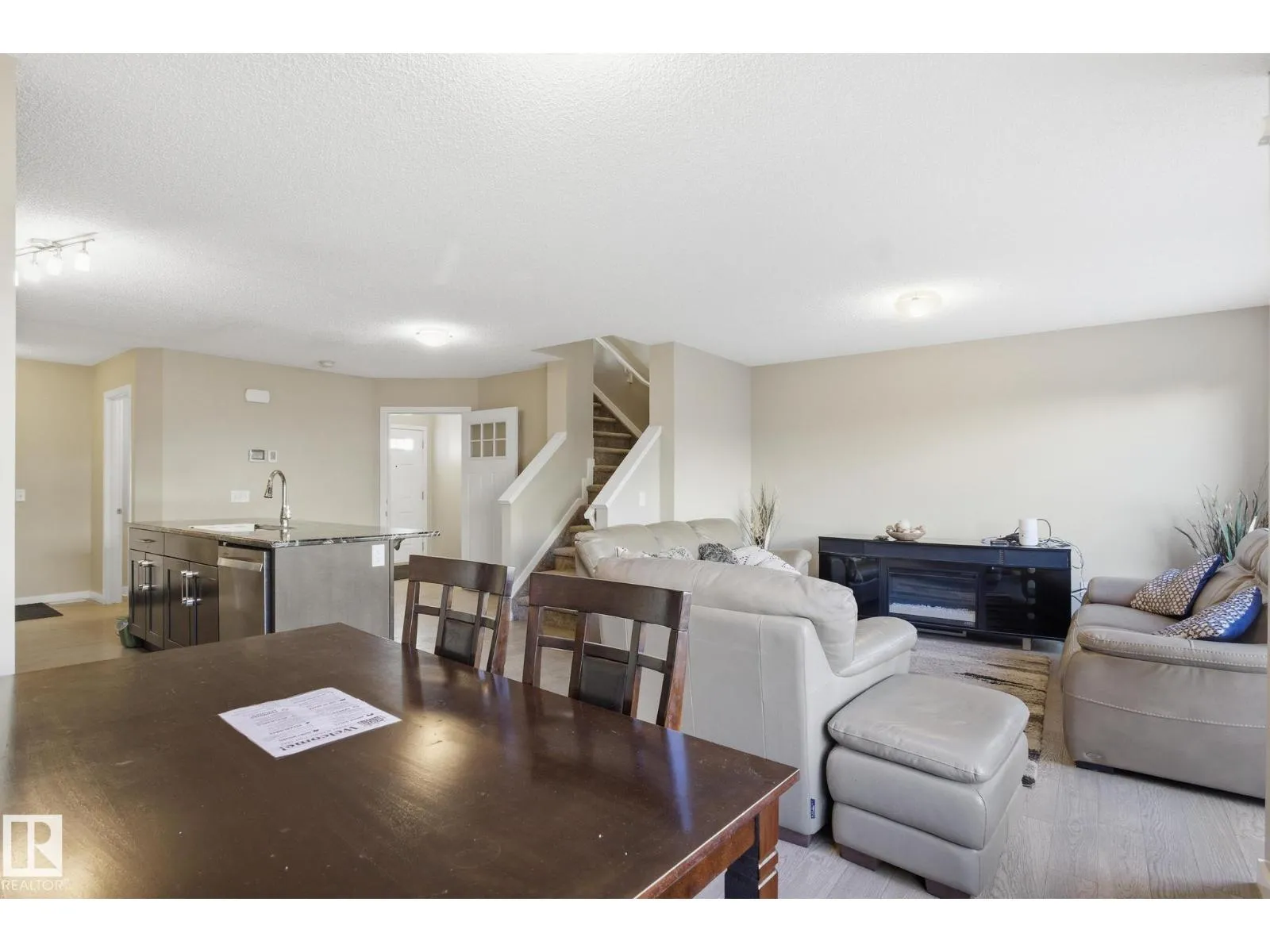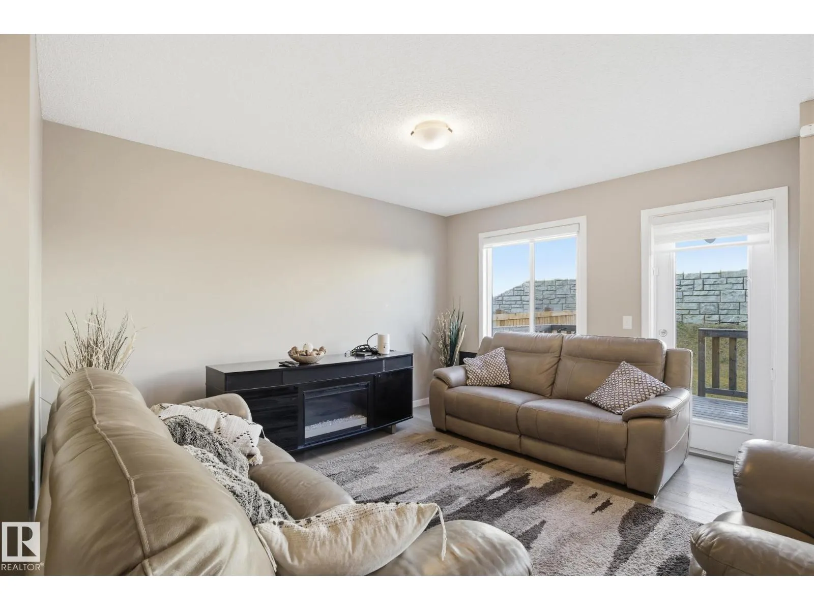 This stunning half duplex offers the perfect blend of style, comfort, and functionality â ideal for families or investors alike. The main floor showcases a bright open-concept layout with a convenient 2-piece bathroom, and a modern kitchen featuring rich espresso cabinetry, elegant white quartz countertops, a large island, and a corner pantry for added storage. The spacious living area provides flexibility for your furniture layout and creates an inviting space to relax or entertain. Upstairs, youâll find a versatile flex space; perfect for a home office, reading nook, or play area. The primary suite offers a walk-in closet and a 4-piece ensuite for your private retreat. Two additional bedrooms, a full 4-piece bathroom, and upstairs laundry complete this level for everyday convenience. The fully finished walkout basement expands your living space with two bedrooms and a 4-piece bath, ideal for guests, extended family, or future rental. Located close to Manning Town Centre, schools, parks, and recreation. (id:27476)