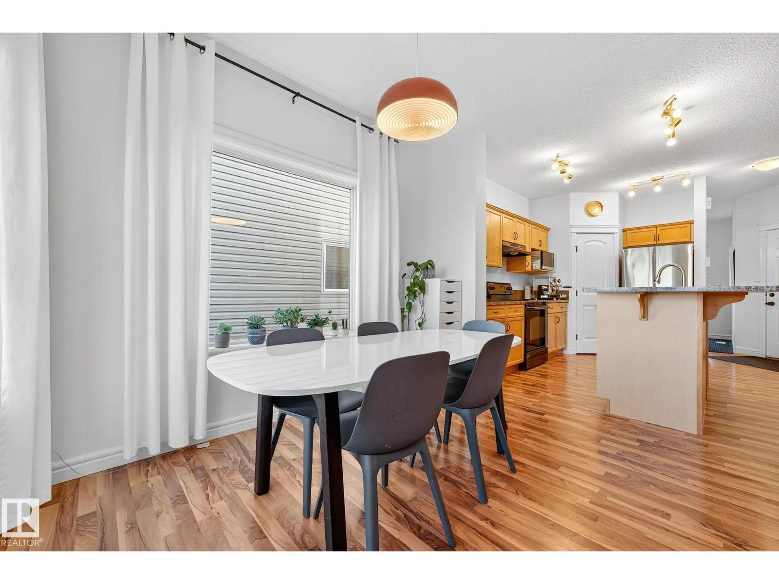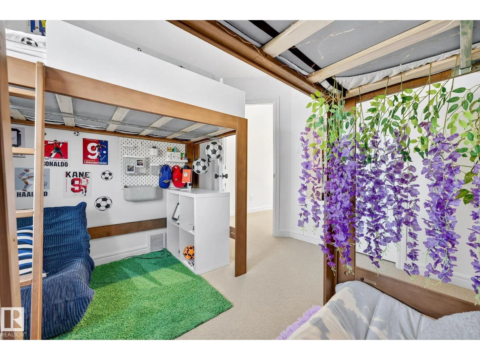 Welcome to this bright, well-maintained 1,302 sq. ft. half duplex backing onto a walking path in the family-friendly community of Rutherford. The open-concept main floor features large windows, a cozy gas fireplace, 9 ft. ceilings and a gorgeous wood kitchen. This home offers numerous upgrades, including ample storage shelving in the single attached garage, a radon ventilation system, newer washer and dryer, central A/C installed 2 years ago, and a new furnace. The partly finished basement provides a spacious rec room with the option to convert it into a 4th bedroom. The upper level features 3 bedrooms, highlighted by a generous primary suite with a walk-in closet and 4-pc ensuite, along with two additional bedrooms. Enjoy a beautiful back deck and a large private backyard, perfect for relaxing or entertaining. Ideally located minutes from schools, parks, shopping, transit, and major roadways. Walking distance to Monsignor Fee Otterson Elementary/High School andJohnny Bright (id:27476)