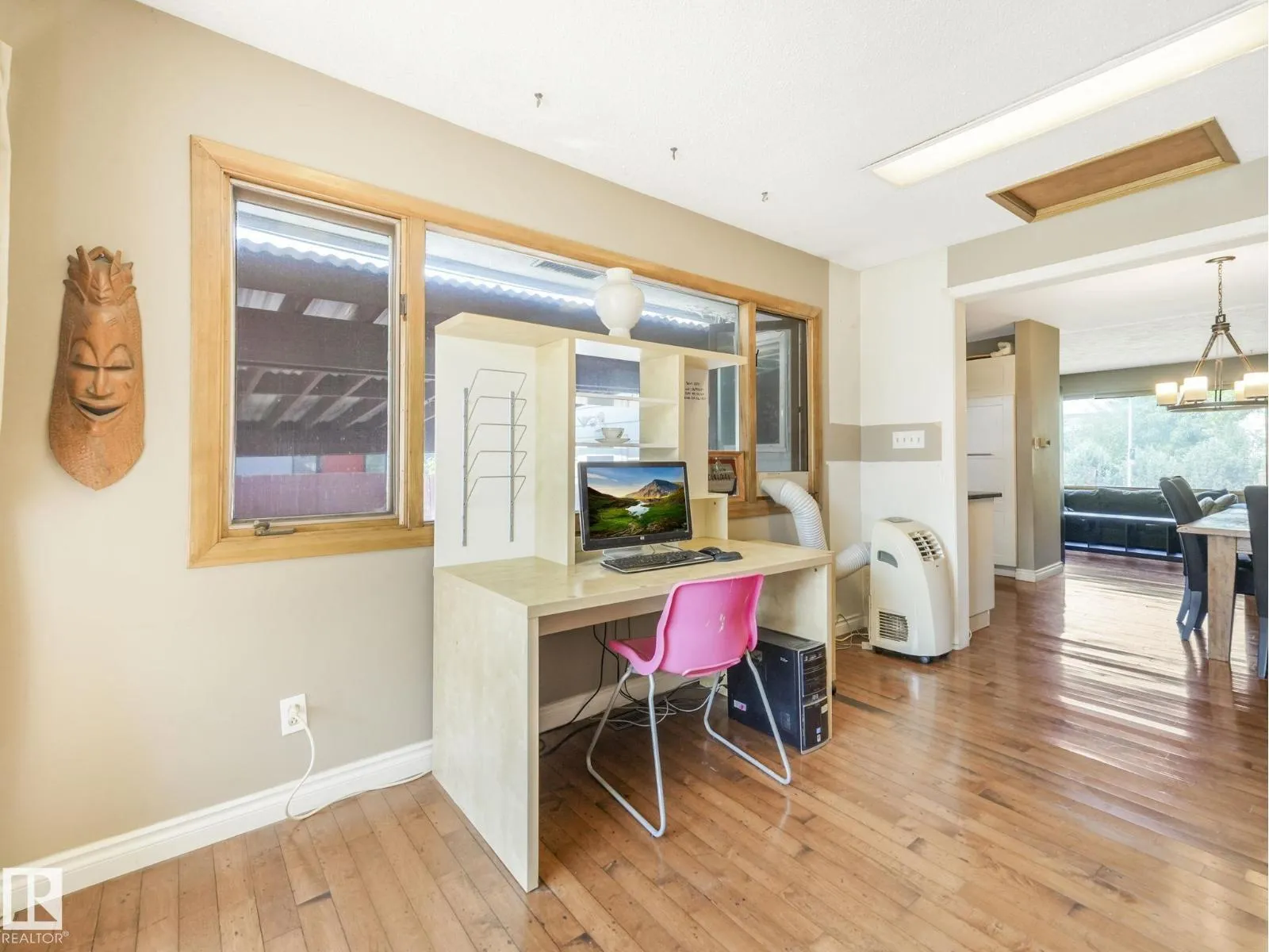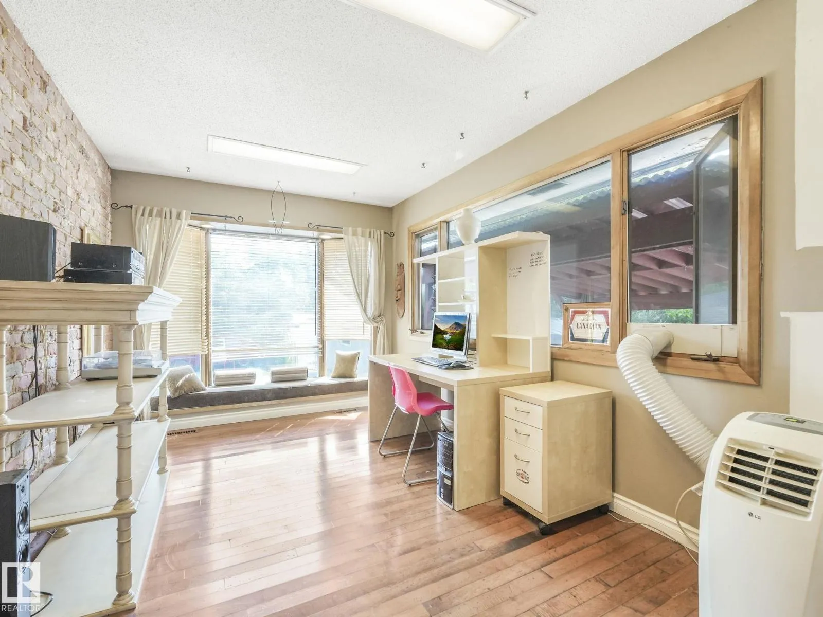 welcome to this well maintained bungalow located in the heart of the jasper place. third lovely 5 bed 2 full bath house offers over 1100 sq ft of well developed space. main floor boasts upgraded engineered hardwood floors with a lovely wood burning fireplace, upgraded kitchen with a lovely dining room area and an addition to the main floor that is currently being used as an office The well kept primary bedroom offers space for a large kind size be. plus a good sized second main floor bedroom. The basement has been fully developed with two more bedrooms plus a spacious second family room and a 3 pcs bath. this home boast a double oversized heated & insulated garage ideal for a handy man. The back yard offer a large covered deck with tons of room for family and friends BBq .located across the street from Meadowlark medical center public transportation and schools.. (id:27476)