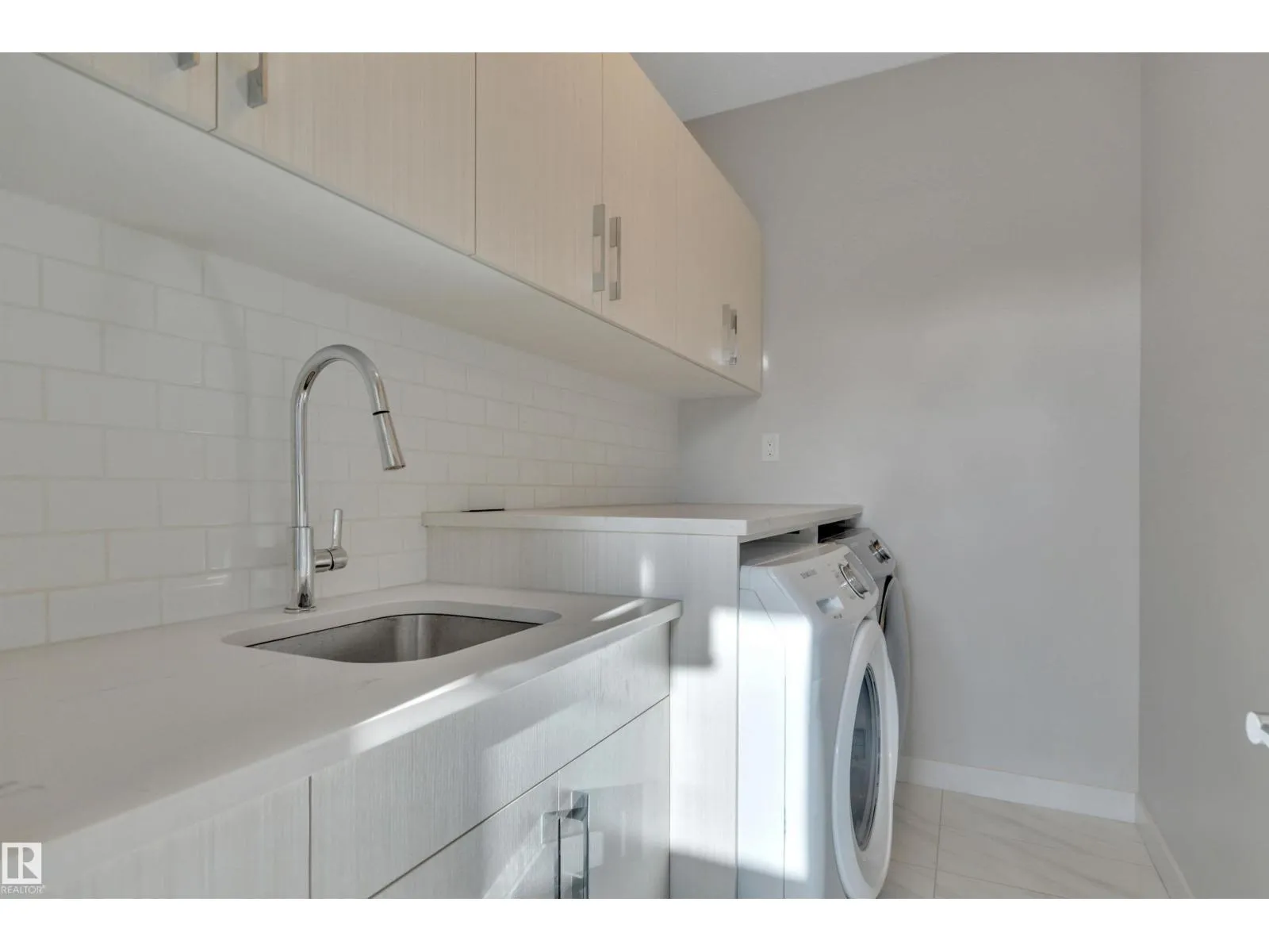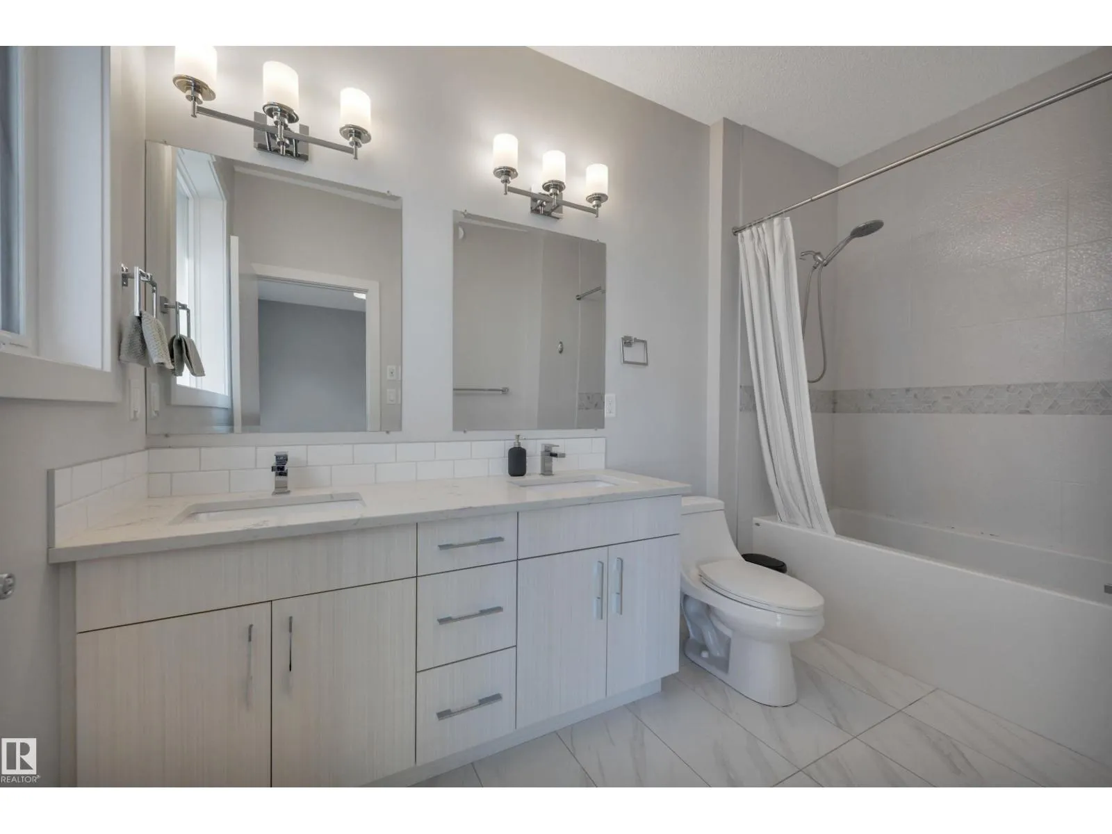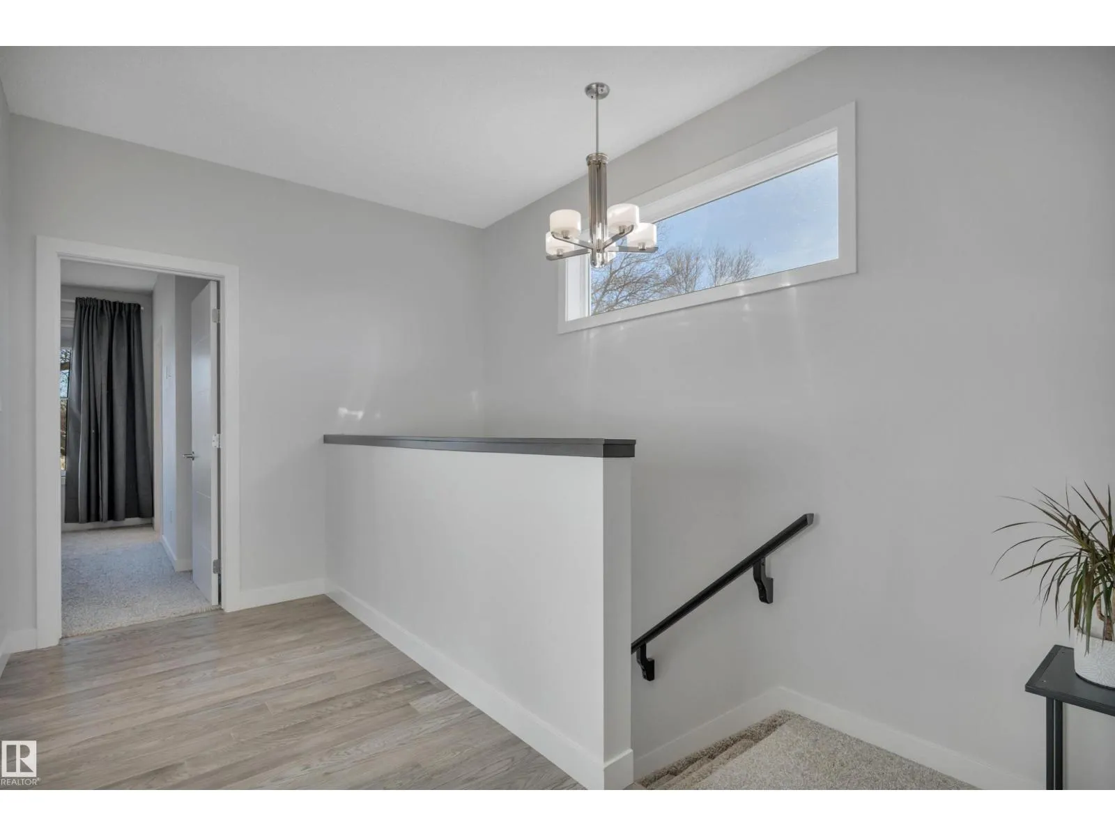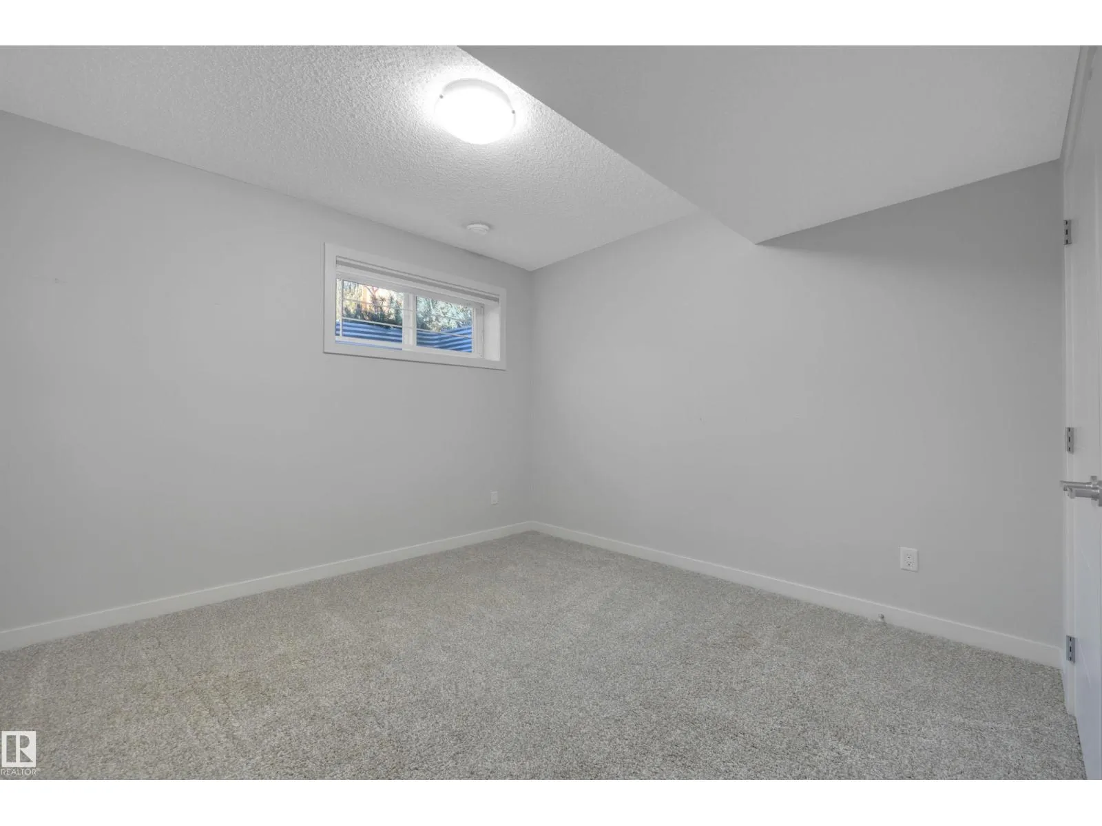 Centrally located in Bonnie Doon, and close to Downtown, Mill Creek Ravine, Whyte Ave, and the LRT, this stunning 4 bed half-duplex offers stylish living close to all the action. The 9' ceilings, engineered hardwood flooring, and spacious open concept layout welcomes you into this upgraded and well maintained home. Beyond the bright front dining/living room with gas fireplace lies your kitchen with stainless steel appliances, quartz countertops, pantry closet, gas stove, and ample counter space. The upstairs features your primary suite with walk-in closet and 5-piece ensuite with double vanity. The laundry room with sink, 2 additional bedrooms, and a 4-piece main bath completes the upstairs. The fully finished basement with separate entrance provides a large rec room, bar, 4-piece bathroom, and 4th bedroom. Enjoy entertaining in your backyard with concrete tile patio, large wood deck, and gas BBQ hook-up. Day to day life is easier with your double detached garage, triple pane window, and central AC. (id:27476)