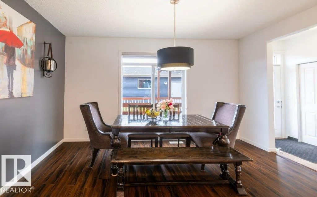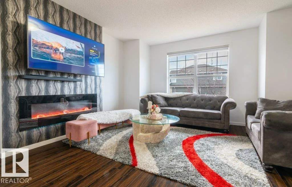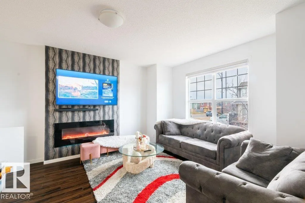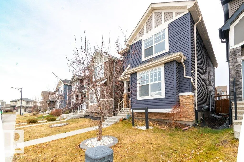 This is a stylish single-family home located in the desirable community of The Walker With its modern charm, smart layout, and unbeatable location. This home offers the perfect combination of comfort and modern design. The spacious living room is filled with natural light from the large front window and features a sleek electric fireplace, creating the perfect space to relax or entertain. The kitchen boasts a quartz countertop, and the upgraded design cabinets, offering ample storage space with a chimney style hood fan and tile backsplash to add a touch of elegance. Stairs lead to a large primary suite with walk-in closet and private ensuite, plus two additional bedrooms, a full bath, and convenient upper-level laundry. Added perks include a separate side entrance, ideal for future development, and a double detached garage & landscaped for convenience. (id:27476)