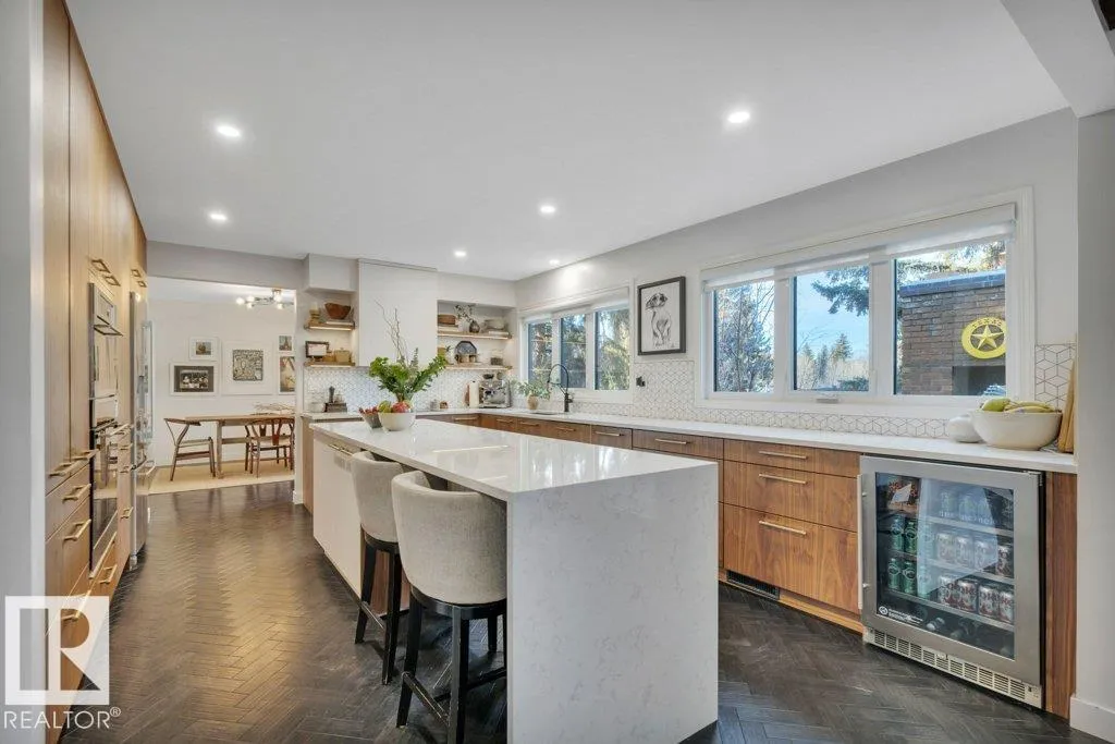 If youâre seeking an executive-level home that blends thoughtful design with high-end renovationsâwhile still honouring its beautiful original characterâthis 3300+ sq ft residence is truly a rare find. Every detail has been upgraded with intention showcasing premium materials & exceptional craftsmanship throughout. With 6 spacious bedrms, 2 offices, & a bright walkout basement, the home offers remarkable flexibility for modern living. Upgrades include windows, furnaces-3, air conditioning, custom-designed kitchen, fully renovated bathrooms, & refined interior finishes that elevate every level of the home. The exterior features mature, landscaping that enhances the propertyâs serene presence. Situated in the prestigious community of Brookside, on a quiet street just steps from the ravine & trail system, this home delivers the perfect blend of luxury, comfort, & location. An exceptional opportunity for those seeking quality, space, & timeless design in one of Edmonton's most desirable neighbourhoods. (id:27476)