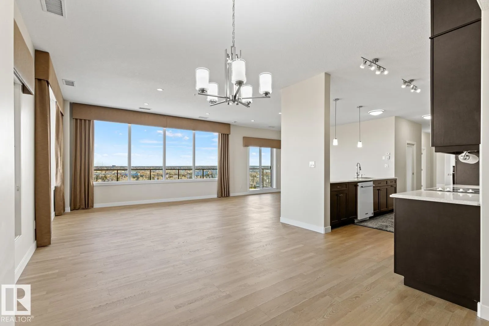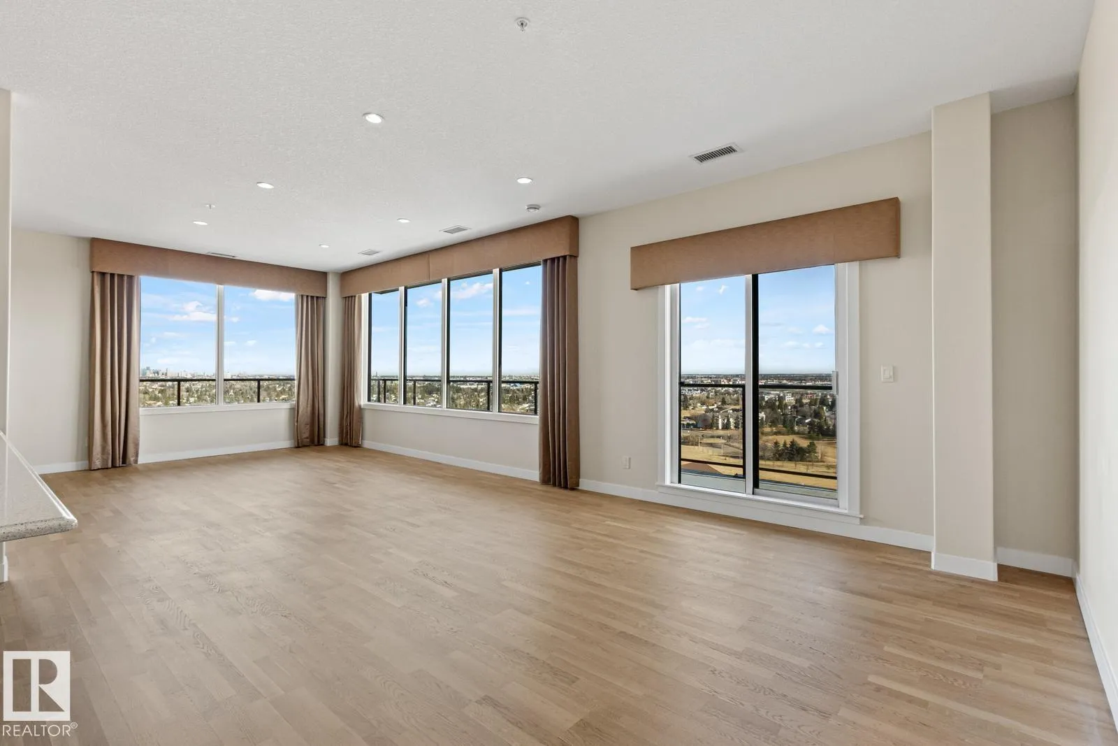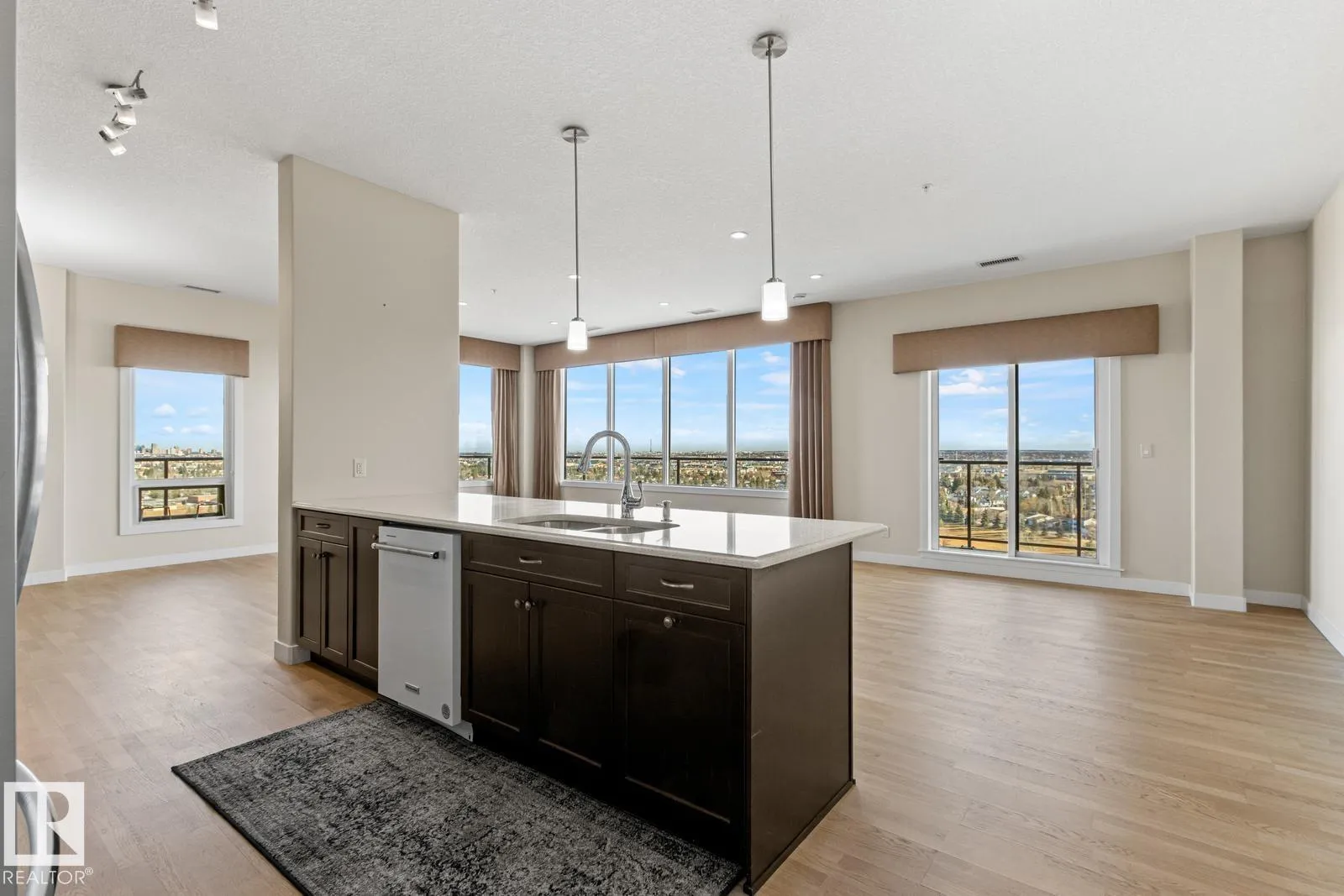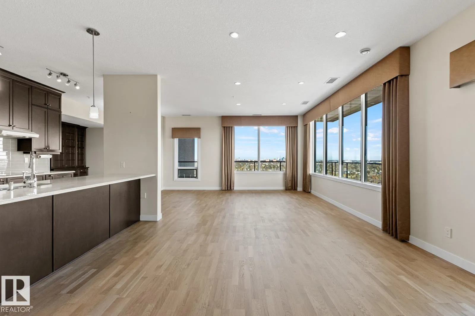 Rare Opportunity for a PENTHOUSE Unit at Heritage Tower@Century Park! This unit offers 3 bdrms & 2 full baths w/ BREATHTAKING views of Downtown/Skyline & Ermineskin Park. CUSTOM KITCHEN offers an OPEN CONCEPT to the dining & living room, a matching custom China cabinet, Kitchen Aid Appliances, Custom Window Coverings (remote blinds in Primary & Living), large island w/QUARTZ counters plus access to your wrap around balcony. Primary suite can accommodate a KING-SIZED bed PLUS offering a massive W/I closet & stunning EN-SUITE complete with WALK-IN SHOWER, HEATED TILE FLOOR + LARGE vanity w/ UPGRADED QUARTZ counters plus an abundance of storage. Main bath offers some special features as well as WALK-IN BATHTUB! 2 more bedrooms to accommodate guest space or office + separate laundry room w/ added storage complete the unit. This property also comes w/ titled tandem underground parking plus 2 titled storage lockers. Residents can also enjoy the onsite restaurant ,HomeCare in the building & active social room. (id:27476)