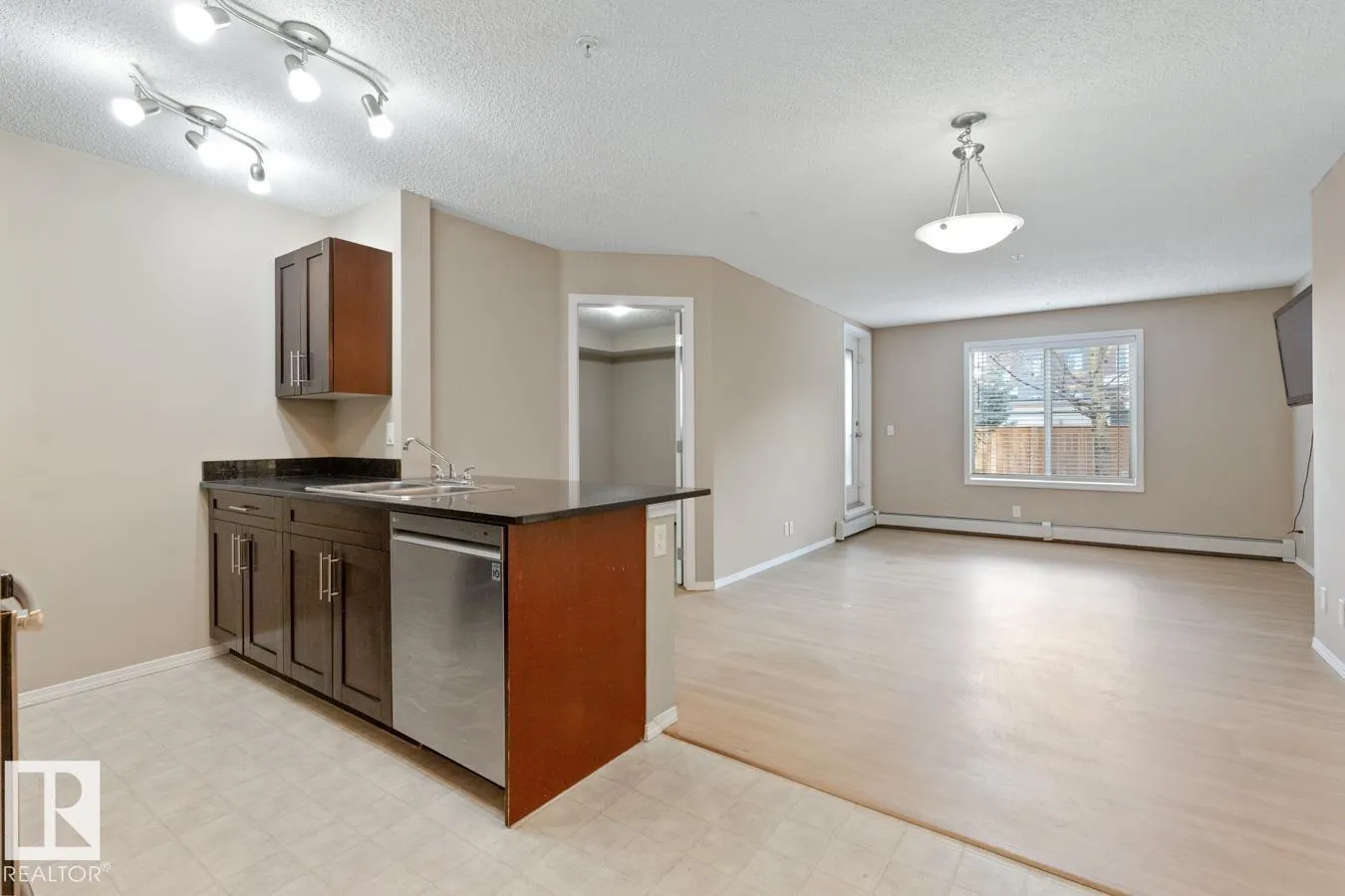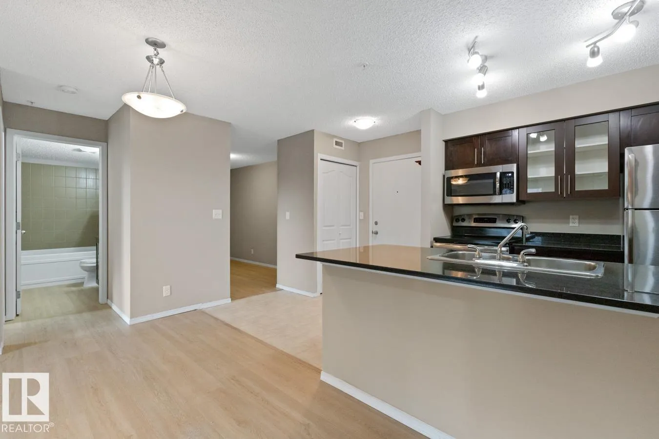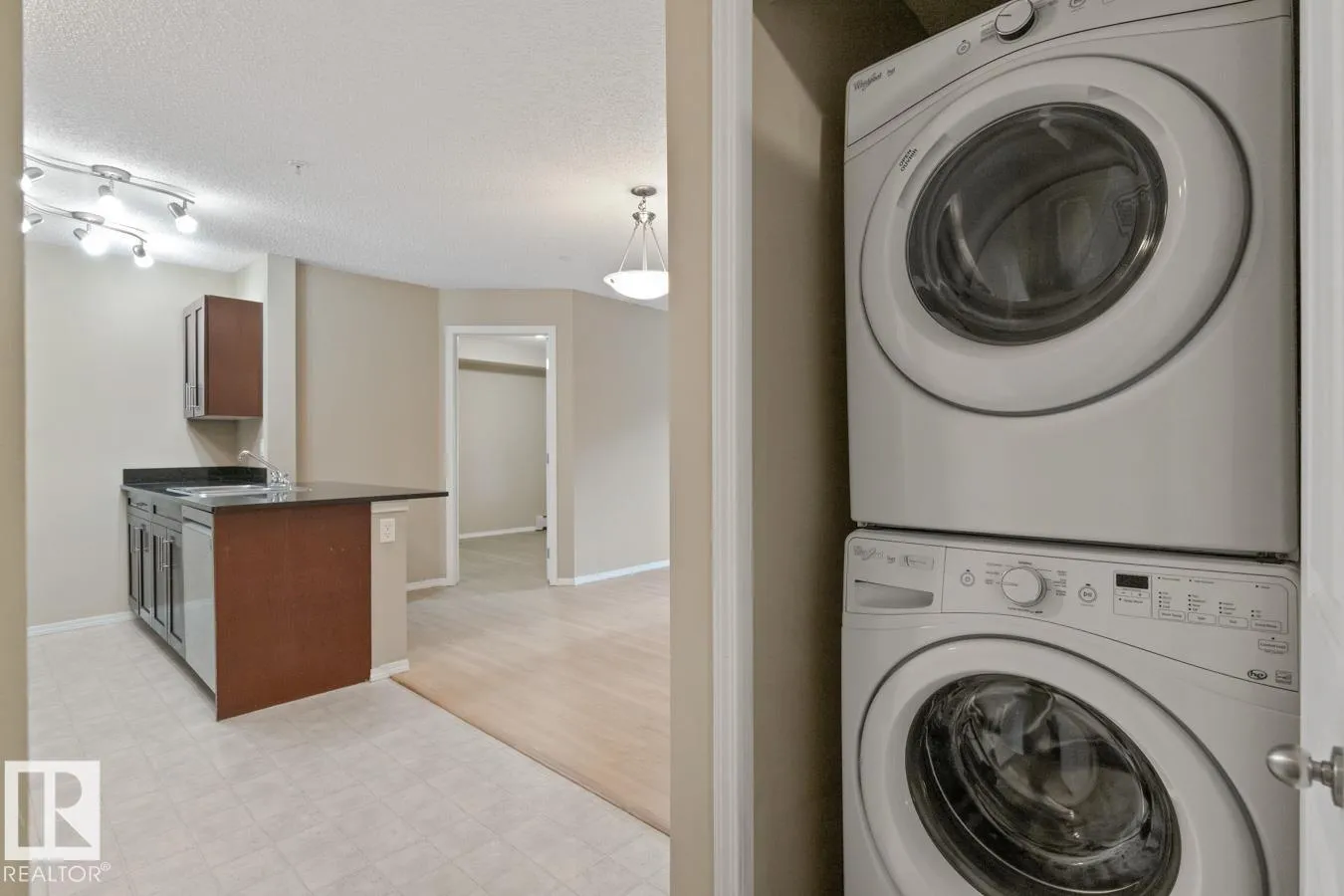 Beautiful well-maintained 2-bedroom, 2-bathroom condo located in the heart of Heritage Valley. With one titled HEATED UNDERGROUND PARKING spot. The unit has a large size den that can be multi purpose use such as an office, play or dinning room area. The unit features a spacious living room and has a patio door leading to a south-facing balcony. The open-concept kitchen is equipped with beautiful cabinetry, stainless steel appliances including a fridge, stove, dishwasher, and microwave hood fan, as well as a granite countertop. The master bedroom has a walk thru closet and a 4-pcs in-suite bathroom. The second bedroom is larger than the master bedroom. An additional full bathroom next to the second bedroom. The unit has brand new flooring, freshly painted with in-suite laundry. Located near walking trails, Superstore and many restaurants. Quick access to Anthony Henday. This home is perfect for the next family looking for comfort and convenience. (id:27476)