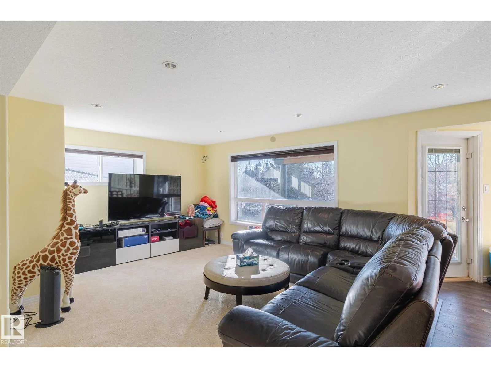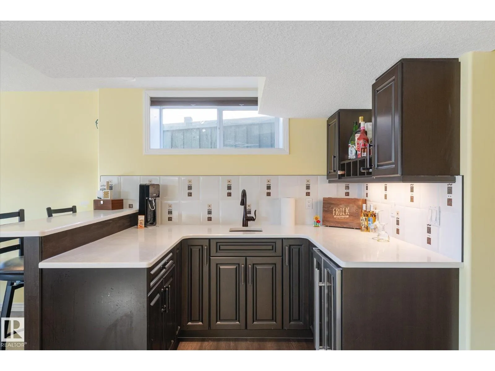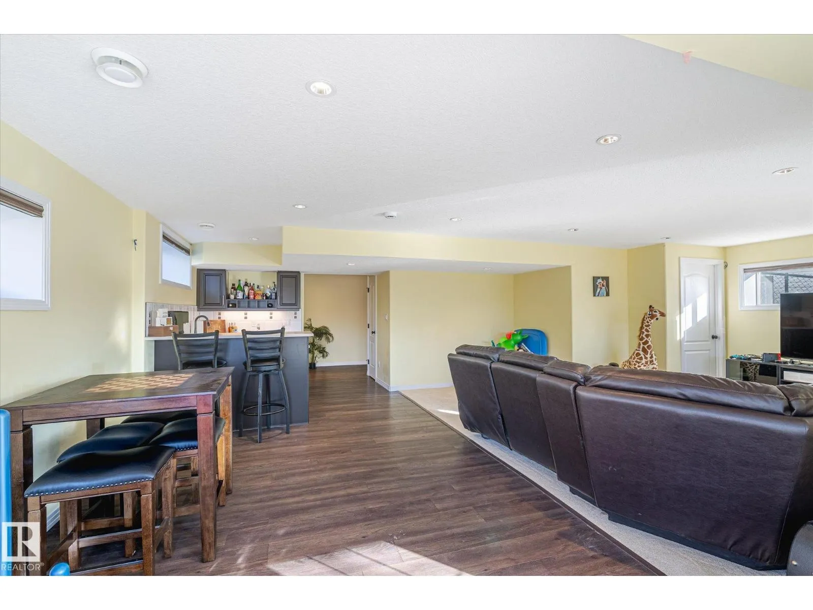 Walkout backing onto a pond and next to a walking trail! This 1,913 sq ft two story home with a fully finished walkout basement, has 4 bedrooms upstairs, and 4 bathrooms. Sunny southwest backyard is meant to be enjoyed as it backs directly onto a scenic pond and walking trails. The main floor is bright and open, featuring a spacious living room separated by the dining area with a 3 sided gas fireplace, and a maple island kitchen with pantry. Step out onto the SW facing deck from the dining room and take in the viewsâperfect for enjoying summer evenings. Upstairs, you'll find four generously sized bedrooms, including a master bedroom suite with a walk-in closet and full ensuite. The recently developed walkout basement, adds a fourth full bath, and a huge rec room, wet bar with direct access to a private patio and beautifully landscaped yard. Upgrades include new shingles (2021), high efficient furnace (2024) and more. Quiet street minutes away from shopping, restaurants and numerous walking trails. (id:27476)