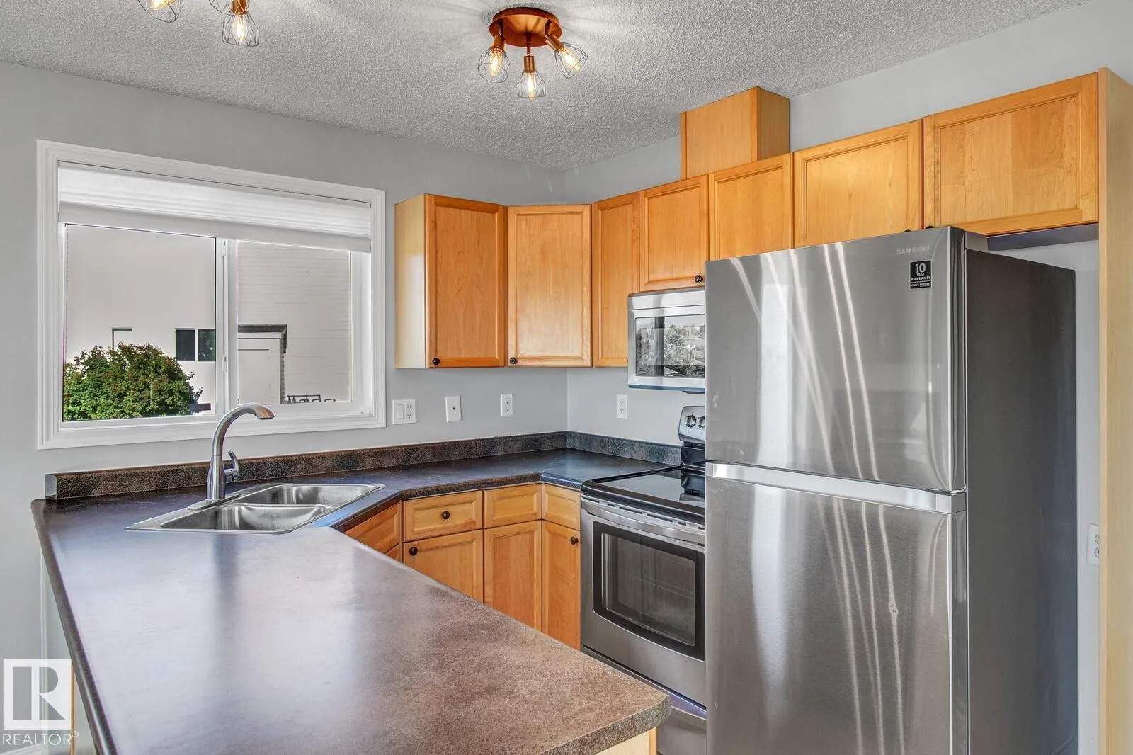 PET FRIENDLY, UPGRADED END UNIT TOWNHOUSE BACKING ONTO A GREEN SPACE! Upon entry, youâll appreciate the open-concept design & the abundance of natural light streaming through the large side & rear windows. The kitchen offers generous cabinetry, a spacious peninsula ideal for casual dining, & stainless steel appliances. The living room features NEWER carpet & a gas fireplace. Perfect for winter nights ahead. Large glass doors fill the space w/ sunlight & provide access to the deck overlooking the serene green space. The main floor also includes a RENOVATED 2-pc bathroom (newer toilet, sink, faucet, countertop & hardware). Upstairs features newer carpet throughout. The primary bedroom is spacious & offers a walk-in closet. Two additional bedrooms & a FULLY RENOVATED 4-pc bathroom (newer toilet, countertop, sink, bathtub, tile surround & hardware) complete the upper level. Additional highlights include a single attached garage, visitor parking, fresh paint, updated light fixtures, newer washer/dryer, & MORE. (id:27476)