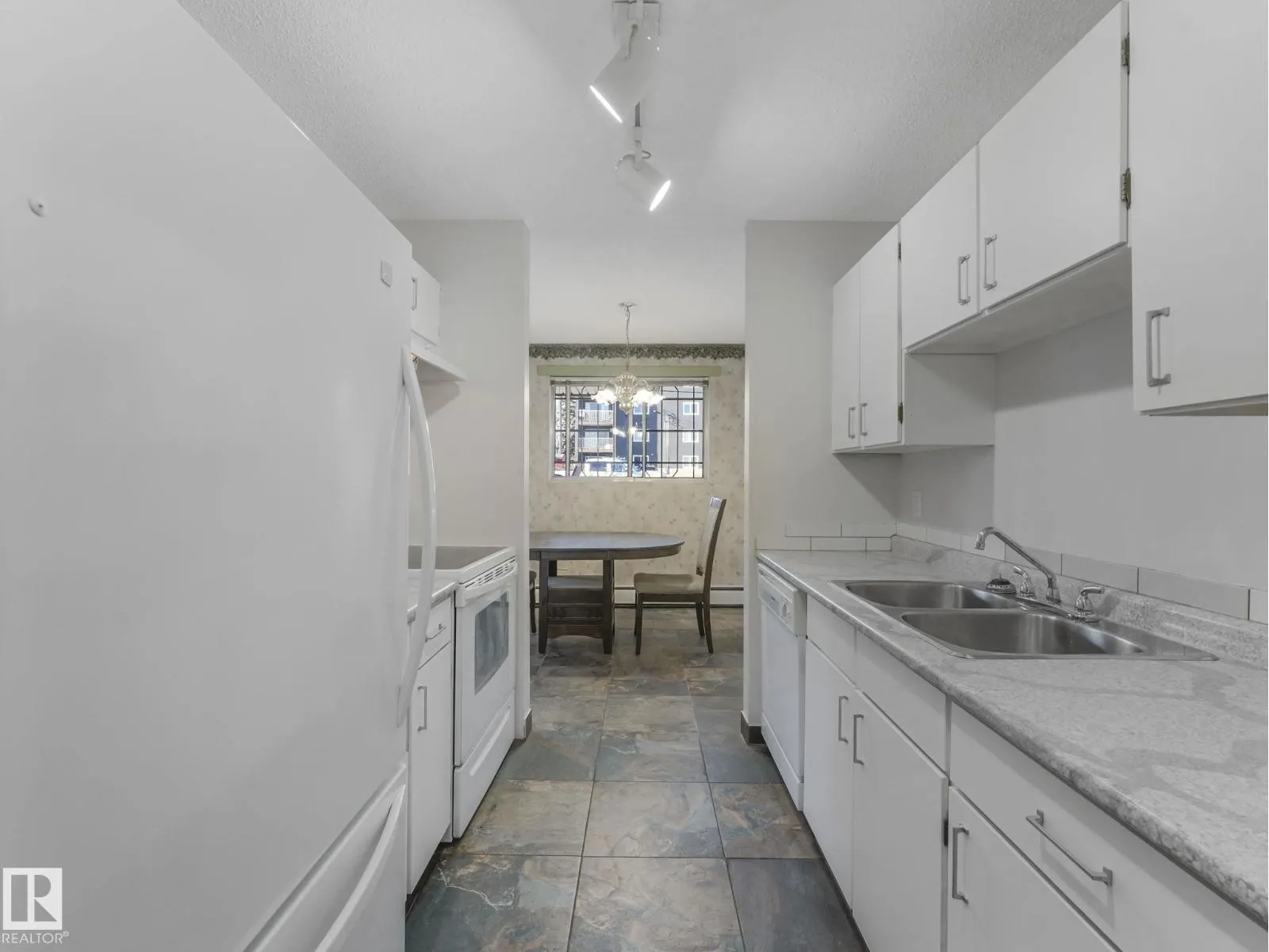 First Time Buyers, Investors & Students!! Perfectly situated in Queen Mary Park, the Mark II Building is close to Grant McEwan, NAIT, Downtown & All the Shops & Services of Oliver Square, Brewery District & Kingsway Mall. This Large One Bedroom Ground Floor Suite offers plenty of natural light with West Exposure & big Windows. Low maintenance & durable Slate Flooring throughout. The entire unit has been Freshly Painted including the ceiling. Newer Laminate Counter-tops in Kitchen & Bath. Enjoy In-Suite Laundry with NEW Samsung Laundry Pair. Plenty of In-Suite Storage with Built-In Shelving. The West Facing private Patio offers direct access to your Parking stall, perfect for bringing in the groceries or just to enjoy an evening cocktail! This Move-In Ready Gem is a Fantastic Opportunity! (id:27476)