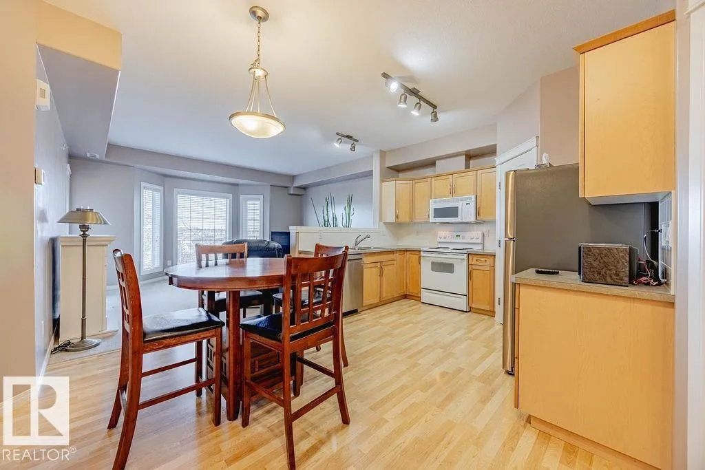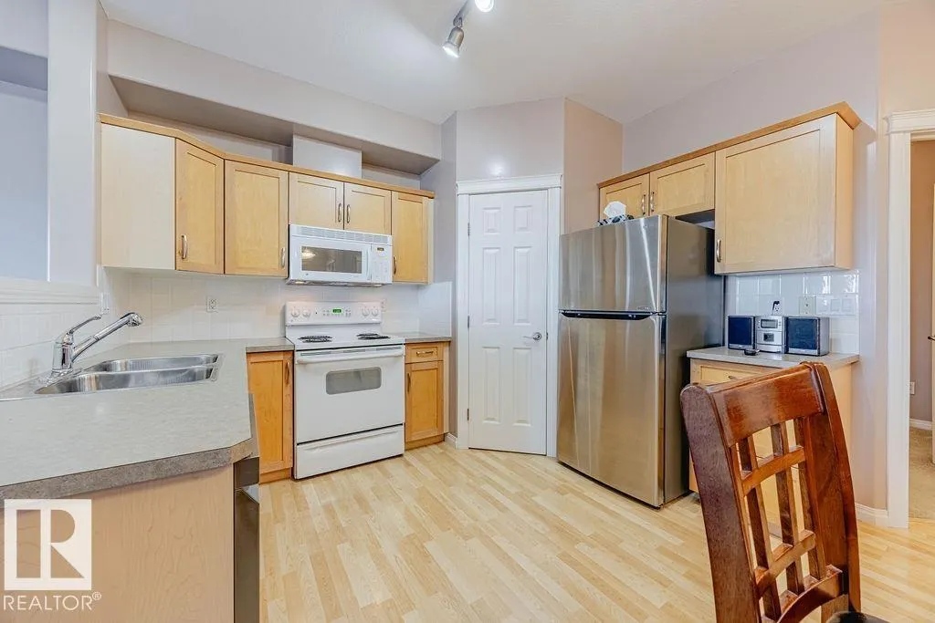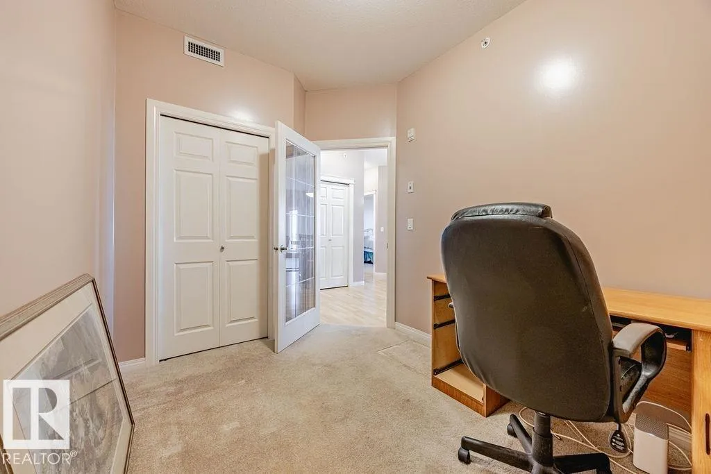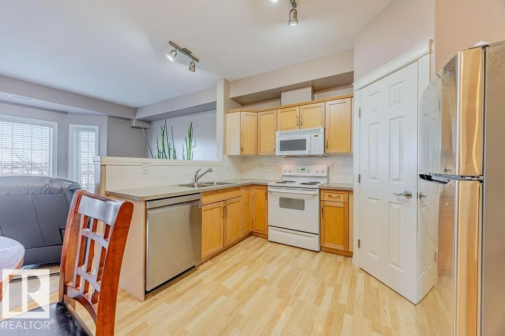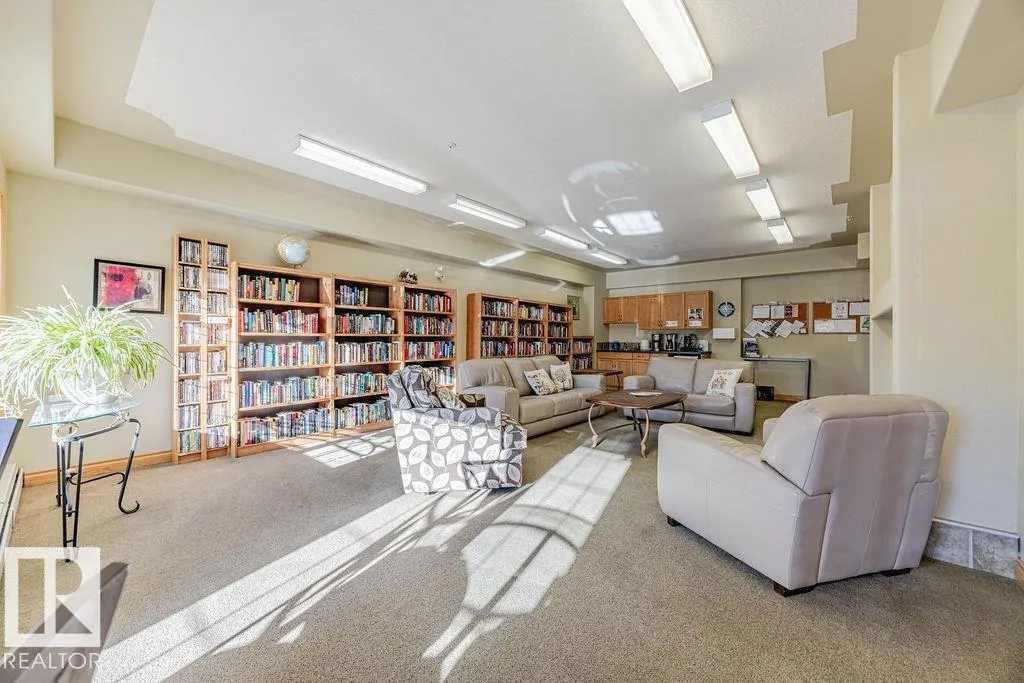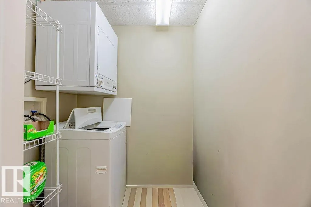 TOP-FLOOR condo in desirable HERITAGE VALLEY ESTATES, a well-maintained 55+ building offering quiet, comfortable living with OUTSTANDING AMENITIES. This immaculate 832 ft2 condo features 9 FOOT CEILINGS, CENTRAL A/C, 2 bedrooms including the large primary with W/I closet, kitchen featuring maple cabinets, corner pantry, newer S/S fridge & dishwasher and in-suite laundry. The spacious west facing balcony with gas BBQ outlet OVERLOOKS A WOODED NATURAL RESERVE and residential homes. Enjoy your heated underground parking stall with a locked storage room located close to the elevator. Smoke & pet free complex featuring outstanding amenities including a large social room with kitchen & dance floor, saltwater indoor pool, hot tub, exercise room, theater, library, games rooms, woodworking room and car wash. Ideally located steps from everyday shopping, close to transit, and offering quick access to Ellerslie Road and the Anthony Henday. A convenient and welcoming community perfect for low-maintenance living. (id:27476)