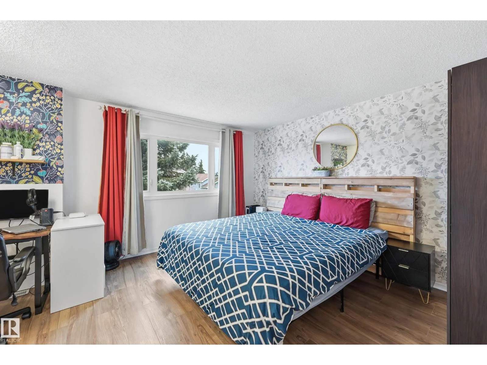 Step into this beautifully maintained residence offering exceptional comfort and a prime location. Enjoy a sun filled south facing backyard with a new deck, perfect for summer living, while new windows, a high efficiency furnace, and a humidifier keep the home warm and efficient year-round. The main floor features elegant laminate flooring, a spacious living area, and a renovated kitchen with stainless steel appliances and a bright dining nook. A stylish 2-piece powder room is located off the rear entry. Upstairs, the expansive primary suite offers dual his and her closets, accompanied by two additional bedrooms and a 4 piece bath. The fully finished basement includes a refined rumpus room, storage, and an upgraded utility area with new laundry and two workspaces. New fencing and an oversized driveway with RV parking. Within walking distance to transit, shopping, parks, and schools, and just minutes from the Anthony Henday, WEM, Yellowhead, and Whitemud, this home delivers unmatched convenience. (id:27476)