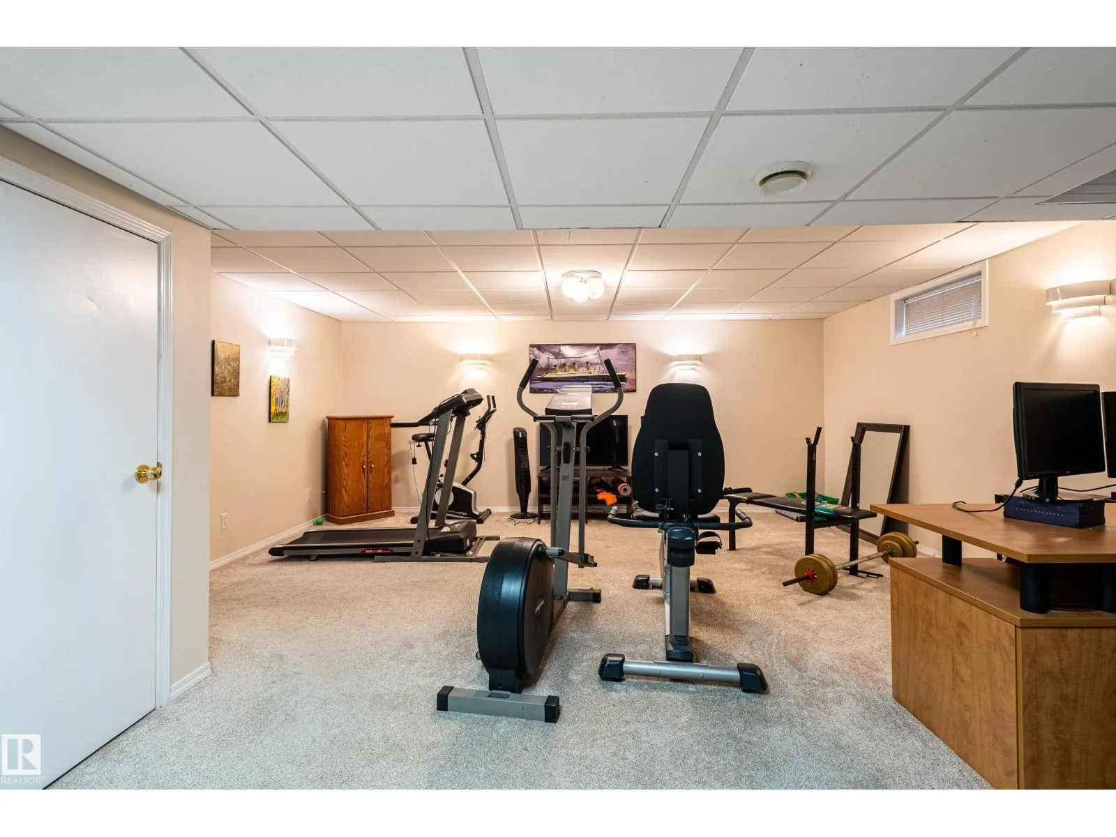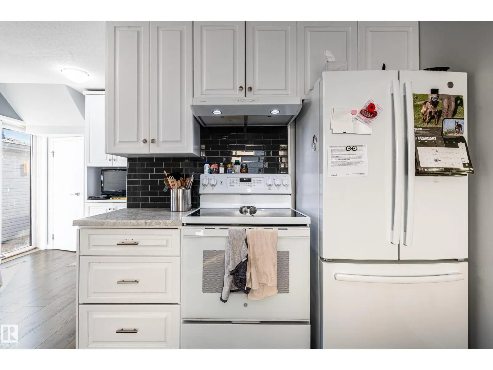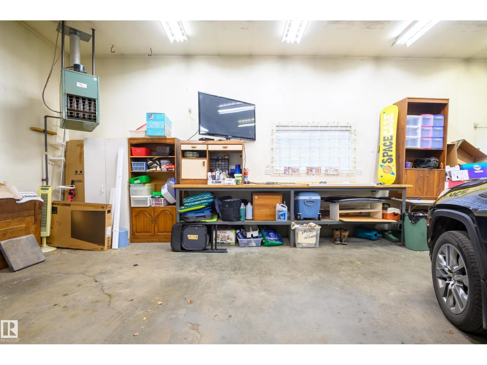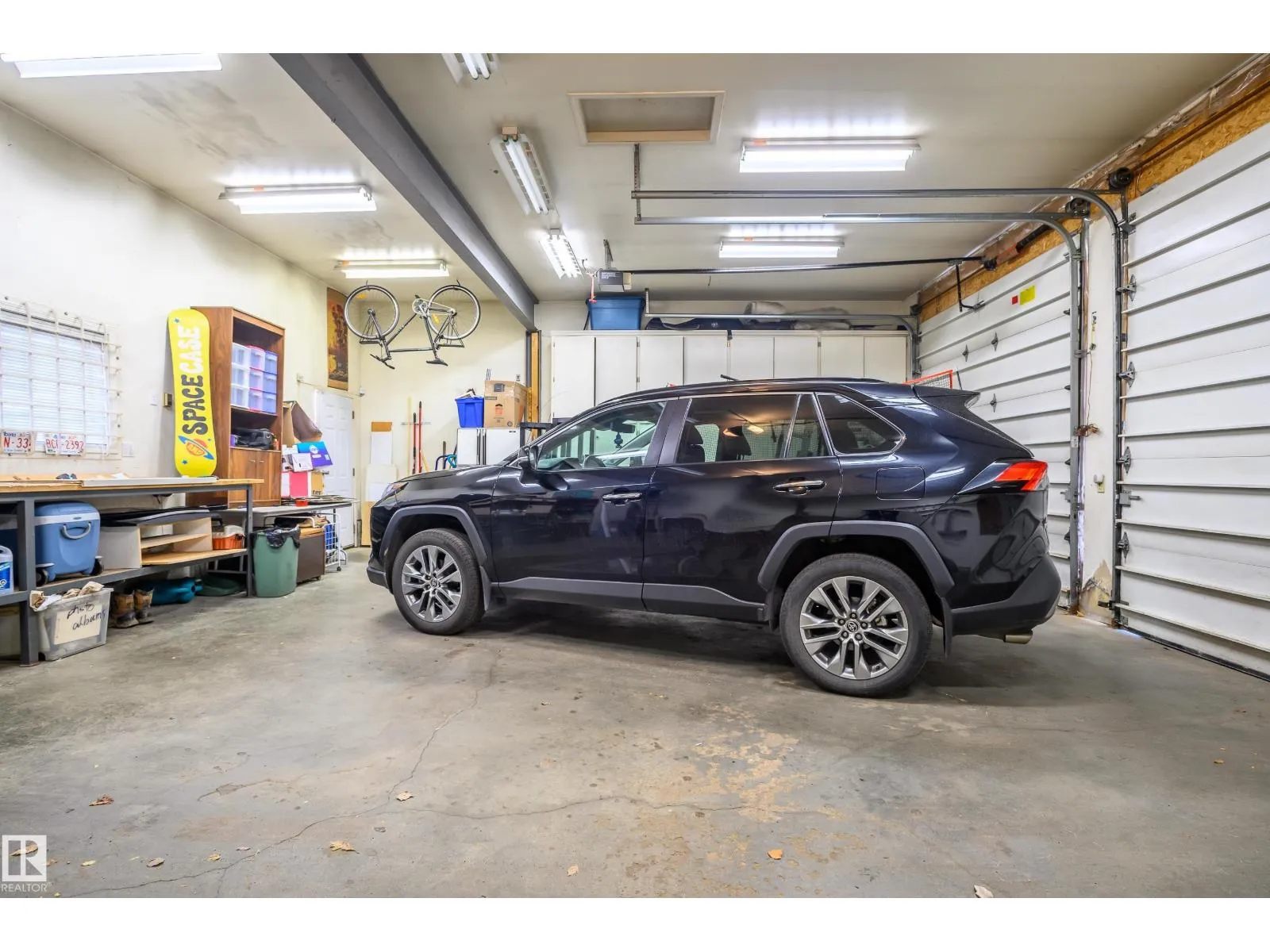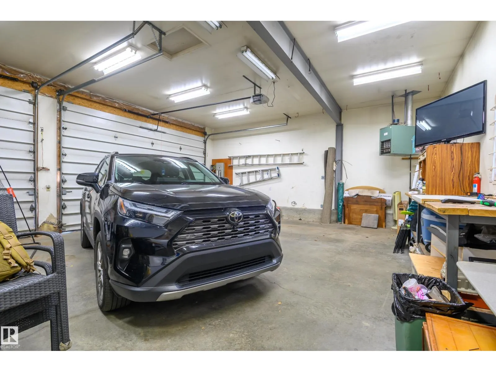 OVERSIZED TRIPLE GARAGE with a beautiful, upgraded 2-story home! Keep your cars (or toys) dry and accessible this winter! This home is filled with natural light from the west front windows. The main floor has a large kitchen, dining room & living room with a full bath & main floor bedroom. Upstairs has 3 large bedrooms and a 3 piece bathroom. The basement features a huge bonus/rec room, bedroom, full bathroom/ensuite & walk-in closet. Recent upgrades include Furnace(2025) & HWT(2022). The 31'x25' 3 car garage has 10' doors(3), 11' ceiling, hoist beam, heater (recently serviced in great shape), bright lighting, shelving & internet connection - all the car enthusiast/hobbyist/mechanic/indoor golfer could ever want. A fantastic spot for a Man Cave! There's RV parking too enclosed by a gate! You'll have 8 parking spots at the back of the house. There's no yard maintenance in the back which has a deck w/gas hookup. All this in a quiet neighborhood backing the ravine. House & garage are shown in Virtual Tour. (id:27476)
