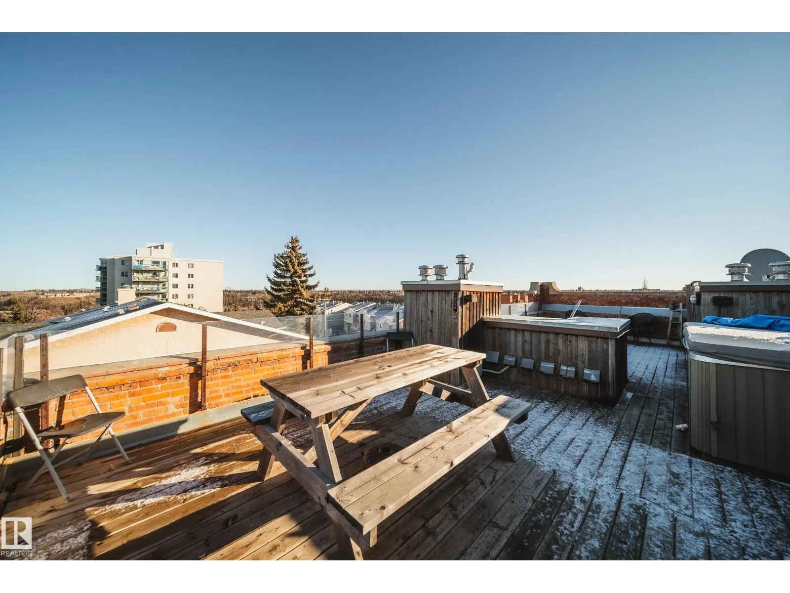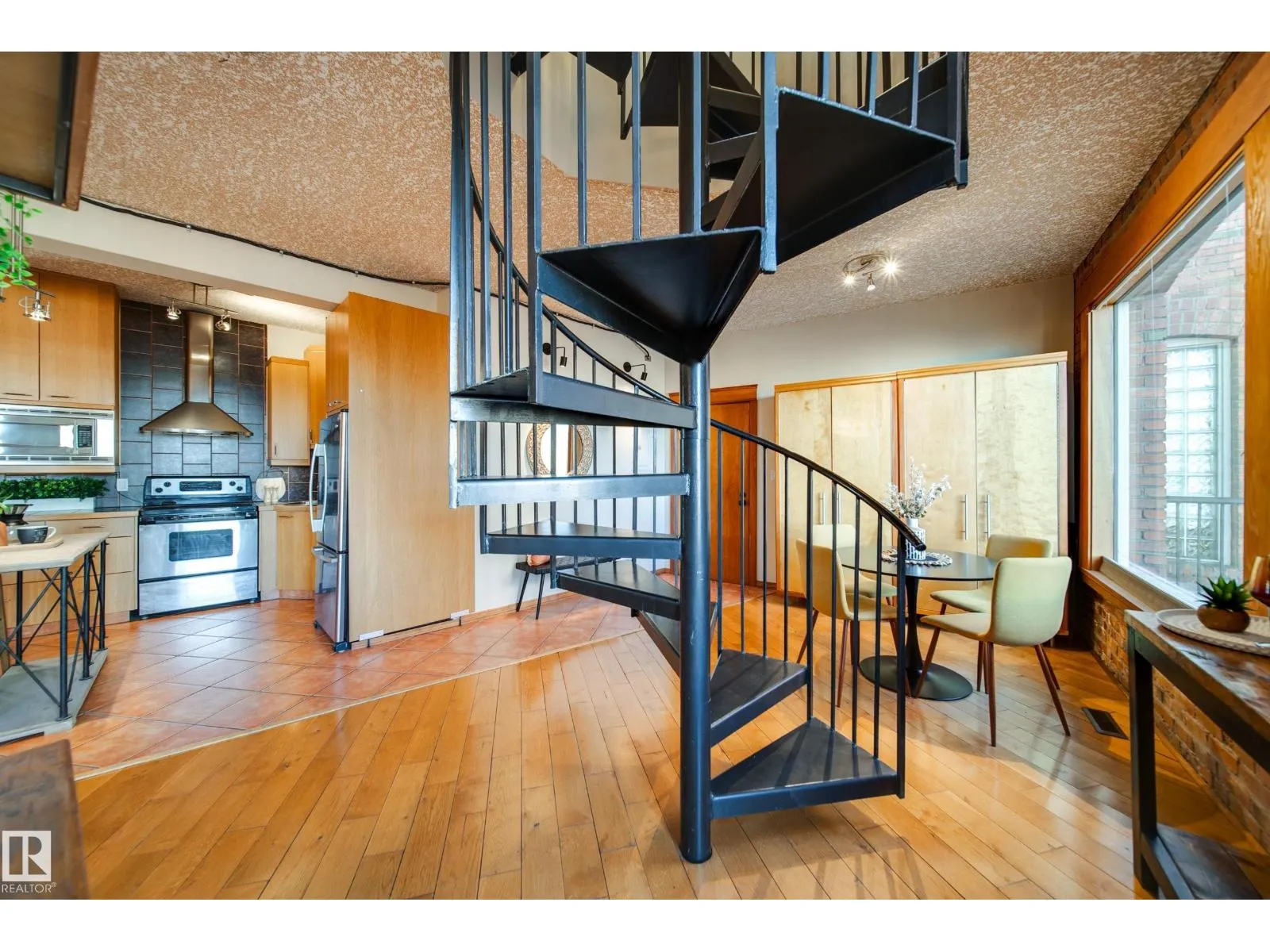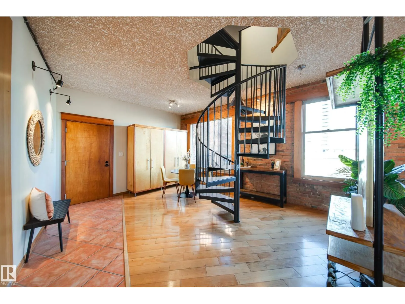 Hecla Lofts! A charming heritage walk-up with only 14 units, offering an authentic loft experience in the heart of downtown. This 3rd-floor open-concept loft/penthouse conversion is the premier unit in the building and showcases exposed brick, unique character, and a striking spiral staircase leading to your private rooftop patio. Enjoy over 500 sq. ft. of exclusive outdoor space with incredible river valley and downtown viewsâperfect for entertaining on warm summer nights or relaxing in your own private hot tub. Inside, the home features a blend of hardwood and ceramic tile flooring, stainless steel appliances with a built-in microwave, in-suite laundry, and large windows fitted with Shade-O-Matic blinds. The space is wired for surround sound and offers ample art and picture lighting to highlight the loftâs charm. Additional storage is available in the basement. The building is Airbnb friendly, and youâre steps to downtown, the river valley, restaurants, nightlife, and more. A truly unique property! (id:27476)