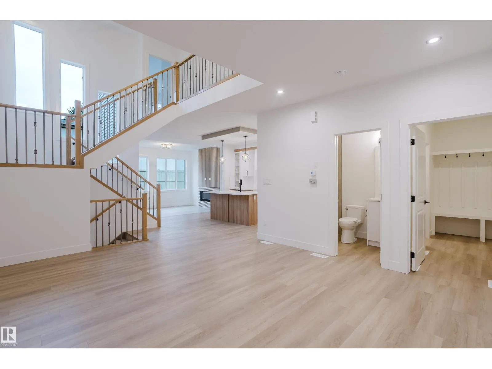Experience elevated living in this stunning brand-new luxury home in Kinglet Gardens, a serene, nature-inspired community in Northwest Edmonton. Thoughtfully designed with premium craftsmanship and sophisticated detailing throughout, this residence offers 4 spacious bedrooms upstairs along with 3 beautifully finished full bathrooms, including an elegant main-floor bedroom with a full bath, perfect for guests or multi-generational families seeking comfort and privacy. The main level is highlighted by a breathtaking open-to-below dining room, where soaring ceilings and expansive windows create a bright, impressive atmosphere ideal for refined entertaining. Upstairs, a stylish and versatile bonus room provides an additional space for relaxation or work-from-home needs. A separate side entrance enhances the homeâs long-term versatility, offering exceptional potential for a future private suite, while the large double attached garage adds everyday convenience and ample room for vehicles and storage. (id:27476)