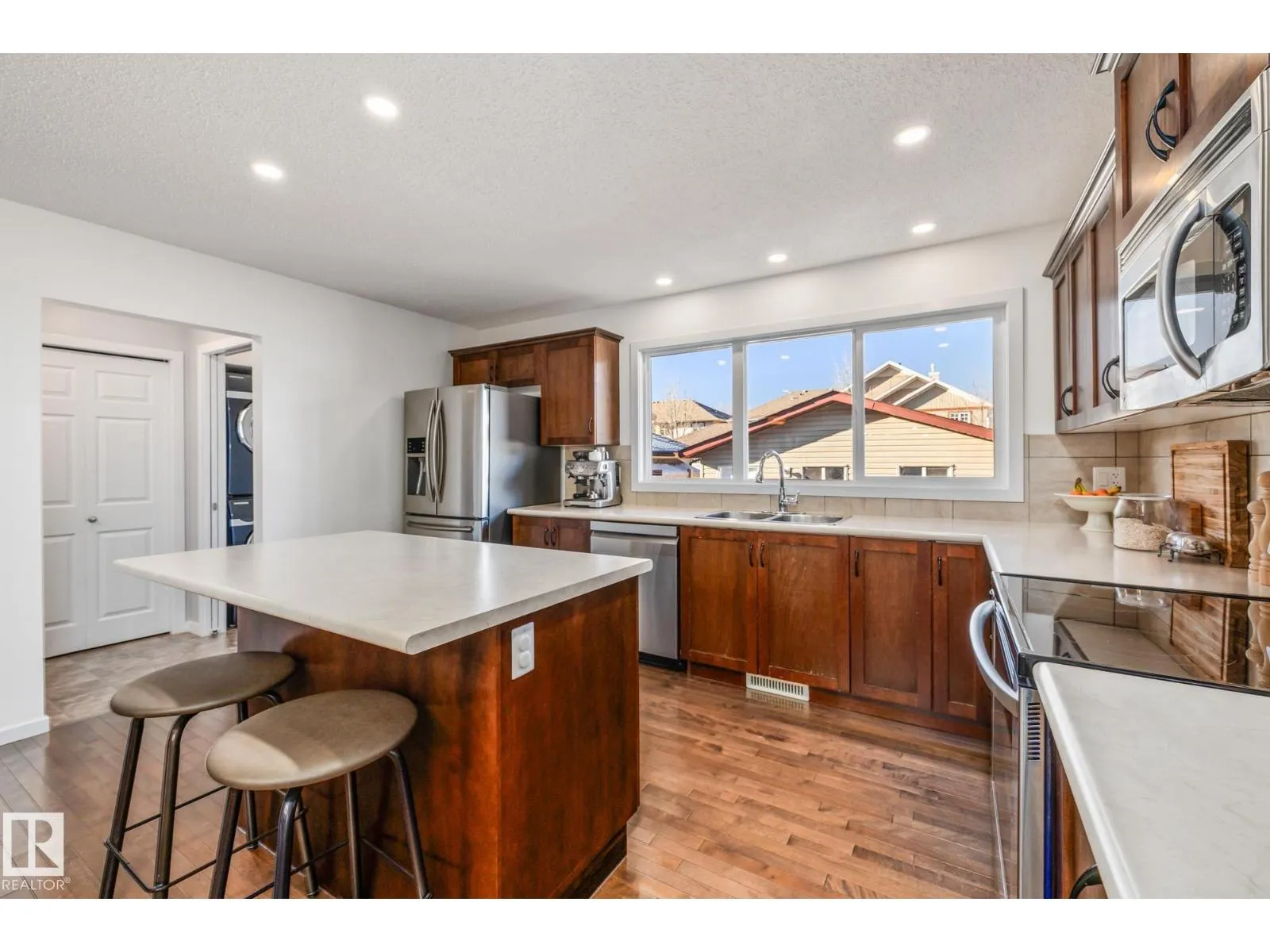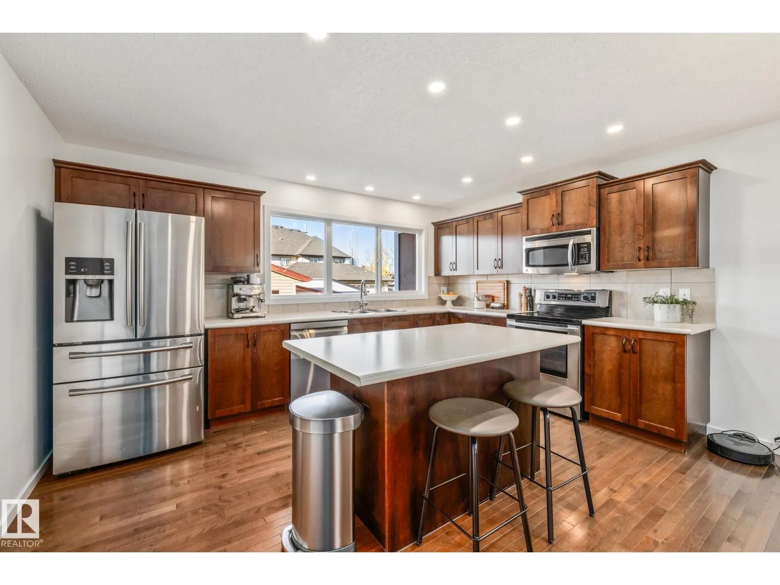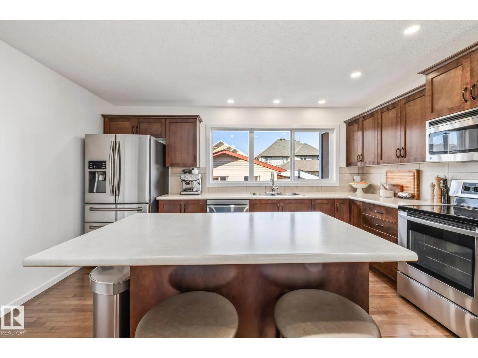 Welcome to this beautifully maintained Jayman Built 4-bedroom, 3.5-bath family home, ideally located just a 6-minute walk to Dr. Margaret-Ann Armour School, 8 minute walk to Ambleside Park, and 10 minutes to the Currents of Windermere. Thoughtful updates include garage insulation (2020), central A/C (2021), new main floor lighting (2024), and a brand-new dishwasher (2025). The spacious kitchen opens to a west-facing backyard with a large deck - perfect for entertaining and summer evenings. Enjoy your morning coffee on the charming east-facing front porch. The fully finished basement offers an additional bedroom, bathroom, and wet bar, providing great flexibility for family or guests. With quick access to public transit, shopping, restaurants, gyms, parks, schools and all the amenities Windermere has to offer, this home truly combines comfort, convenience, and style. (id:27476)