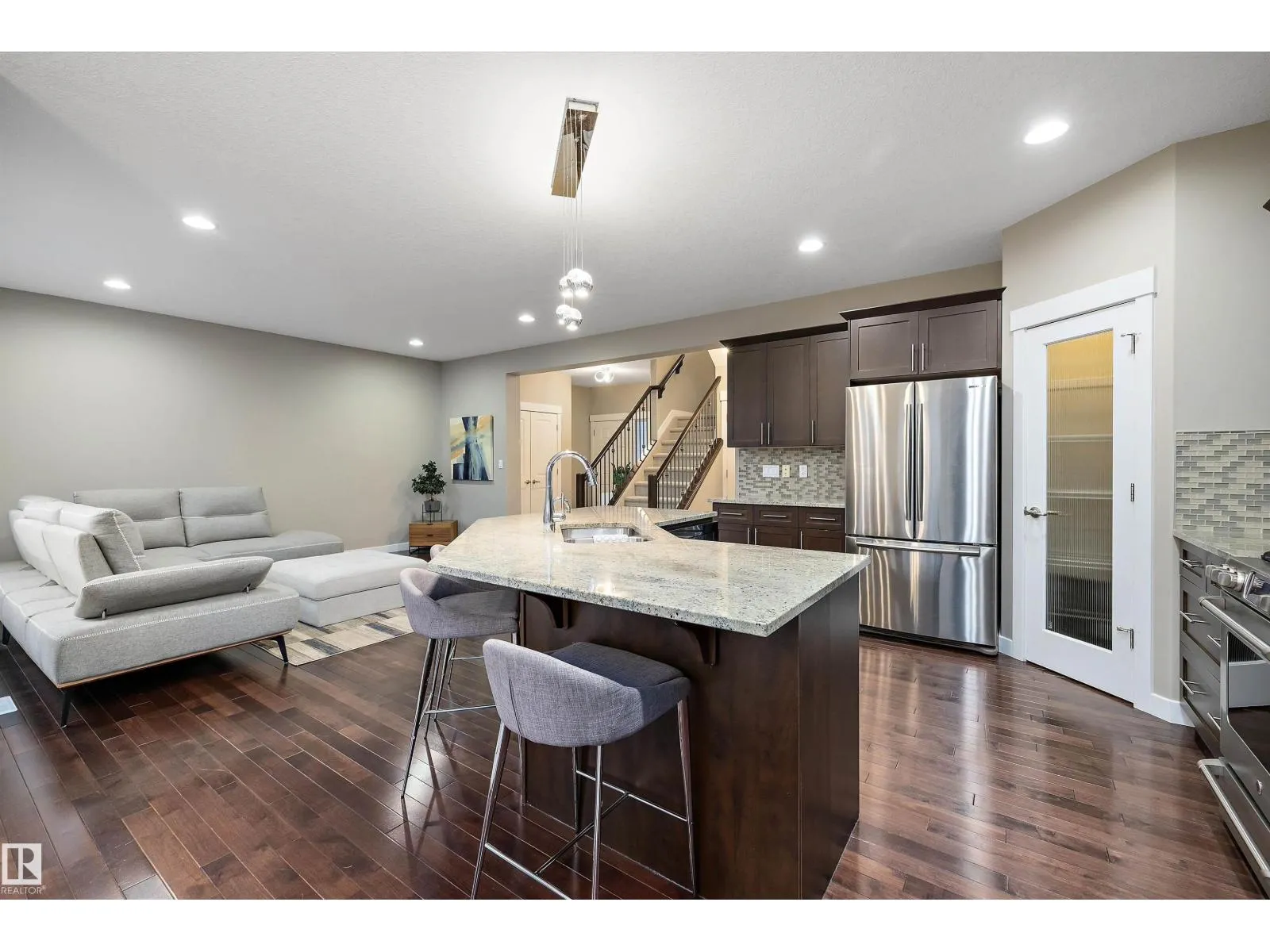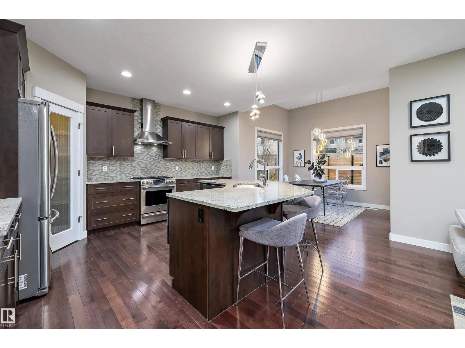 Welcome to this modern Dolce Vita home in desirable Upper Windermere, offering 4 bedrooms & 4 baths on a beautiful 9,181 sq. ft. lot! Located in Southwest Edmonton, this gorgeous property features a bright, open main floor with maple hardwood floors & elegant finishes throughout. The large kitchen includes tons of storage, granite countertops, & upgraded stainless steel appliances w/ a gas stove. All overlooking the huge south-facing yard, with the maintenance-free deck and fire pit. Upstairs, youâll find a comfortable bonus room perfect for movie nights, a generous primary bedroom with a walk-in closet & 5pc ensuite, two additional bedrooms, & the main bath. The fully finished basement adds even more living space with a recreation room, another full bath, and an extra bedroomâideal for guests. As a resident of Upper Windermere, youâll also enjoy private access to the community leisure centre with an outdoor pool. All this within walking distance to shopping, restaurants and easy access to the Henday. (id:27476)