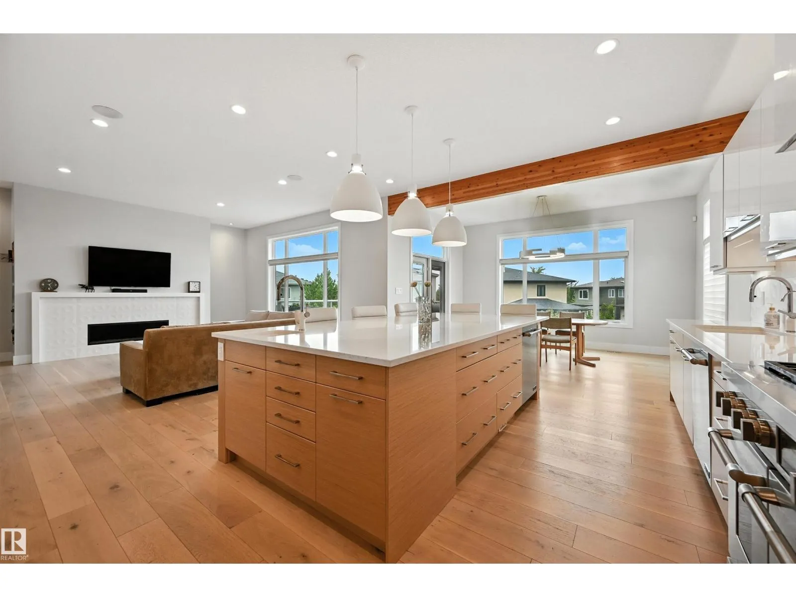 Over 5300sf of total living space custom built by Ace Lange. Fully finished walkout on a 10,393sf pie lot. 3 living areas, 2 full kitchens, 6 bedrooms+den, 6 bathrooms, triple tandem garage & private elevator. Thoughtfully designed spaces & quality craftsmanship throughout. Tastefully chosen finishing palette for broad appeal. Upgraded throughout, including: 10' ceilings on main, 8' doors, multi-zoned heating/cooling, multi-zoned speakers, custom millwork, decorative ceilings & built-ins. Open layout on main level is perfect for family gatherings. Great room w/gas fireplace, main floor office, chef's kitchen w/large nook & direct access to deck for evening bbqs. Generous sized pantry/mudroom. Upper level features a bonus room w/dual functional areas, 3 full bathrooms, 4 bedrooms including an oversized primary suite, 5pc spa ensuite & dressing room. Walkout level offers premium entertaining spaces for extended guest stays; 2nd kitchen, rec areas, 2 bedrooms & 2 bathrooms. Within catchment of 5 schools. (id:27476)