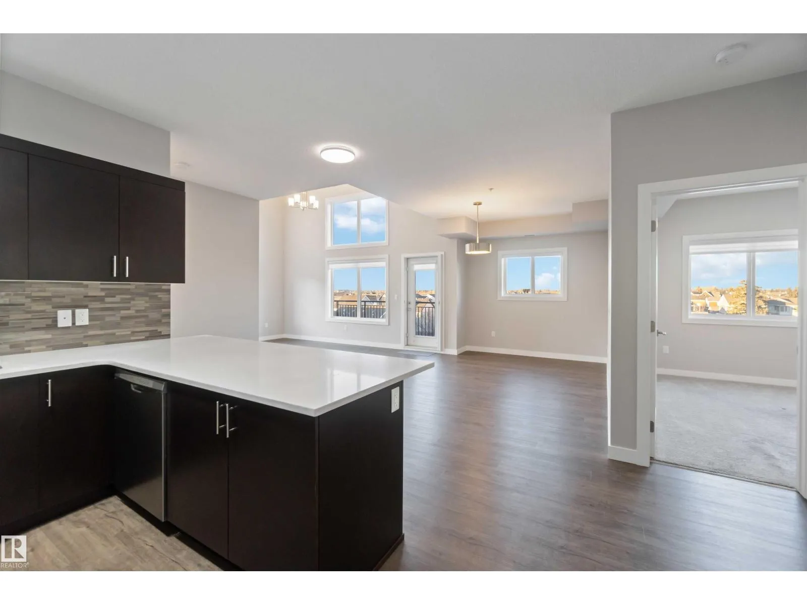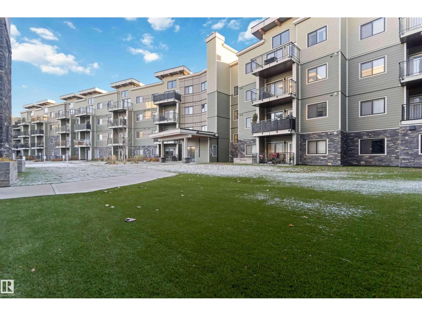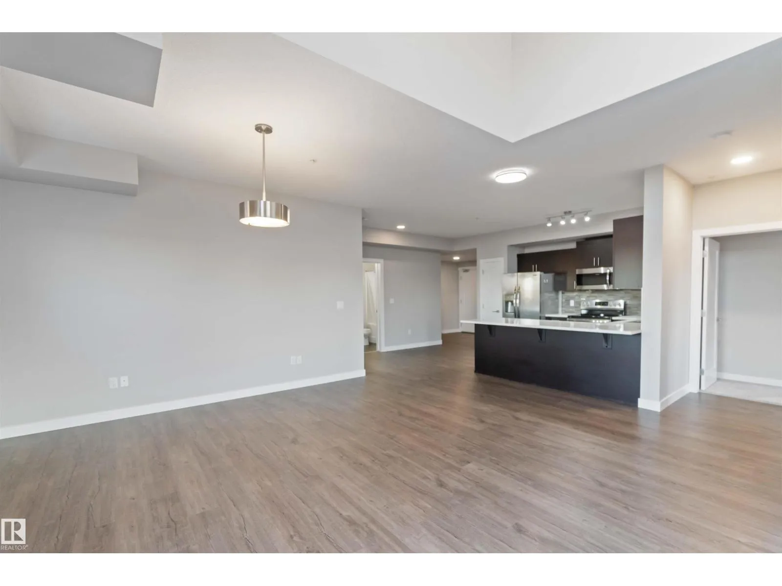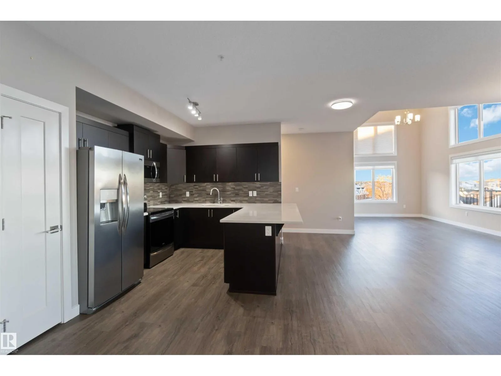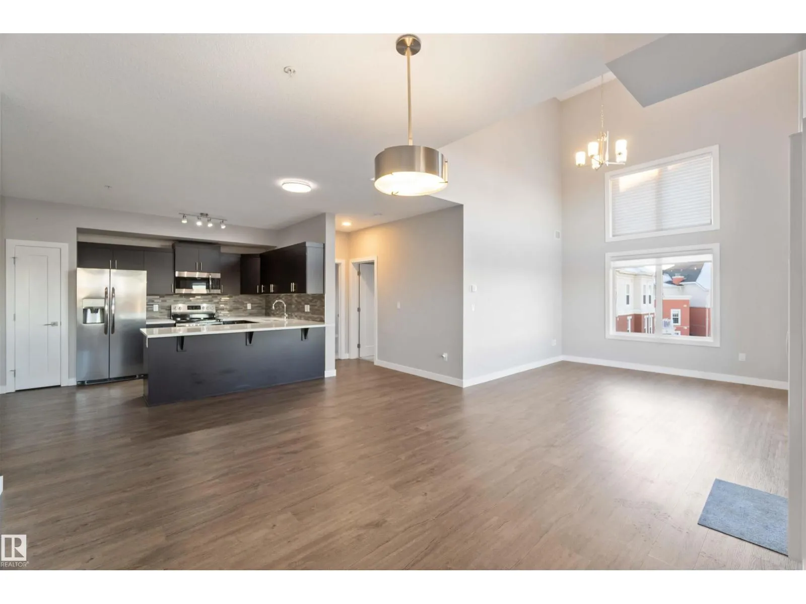 TOP FLOOR! CORNER UNIT! 3 BEDROOMS! WELCOME TO ONE OF NORTH EDMONTON'S BEST; 410, 560 GRIESBACH PARADE NW . THIS 4TH FLOOR UNIT HAS 1300 SQ FT OF LIVING SPACE, 3 BEDROOMS, 2 BATHS, AND UNDERGROUND PARKING. THE UPGRADED CUSTOM KITCHEN HAS QUARTZ COUNTERTOPS, SOFT-CLOSE CABINETRY WITH UPGRADED HARDWARE, NEWER STAINLESS APPLIANCES, VINYL PLANK FLOORS, AND A SINGLE LEVEL ISLAND. DINING AREA IS MASSIVE WITH SCREENED EXTERIOR PATIO DOOR ACCESS. LIVING AREA HAS 18 FOOT OPEN CEILINGS WITH PANORAMIC VIEWS. PRIMARY BEDROOM IS MASSIVE WITH A LARGE WALK-THROUGH CLOSET AND ENSUITE ACCESS. ENSUITE OFFERS A GLASS SHOWER WITH QUARTZ VANITY. MAIN FULL BATH HAS VINYL TILE FLOORS. UNIT ALSO HAS 2 ADDITIONAL BEDROOMS, LAUNDRY ROOM, CENTRAL AIR CONDITIONING AND AMPLE STORAGE. BUILDING HAS A SHARED GYM, SOCIAL ROOM, LIBRARY, CAR WASH, AND SECURED UNDERGROUND PARKING WITH A STORAGE CAGE. LOCATED STEPS FROM SHOPPING AND ALL THE UPSCALE COMMUNITY OF GRIESBACH HAS TO OFFER. PETS ALLOWED (SIZE RESTRICTION). (id:27476)