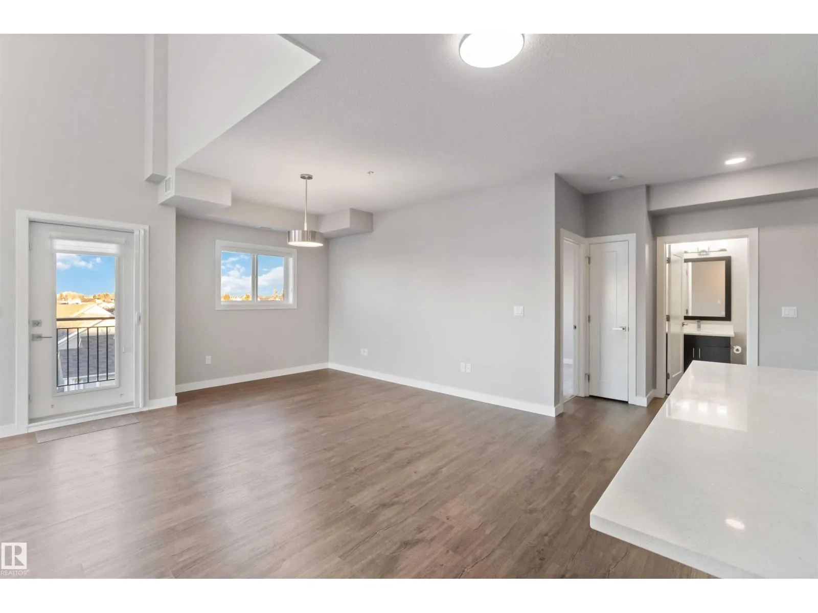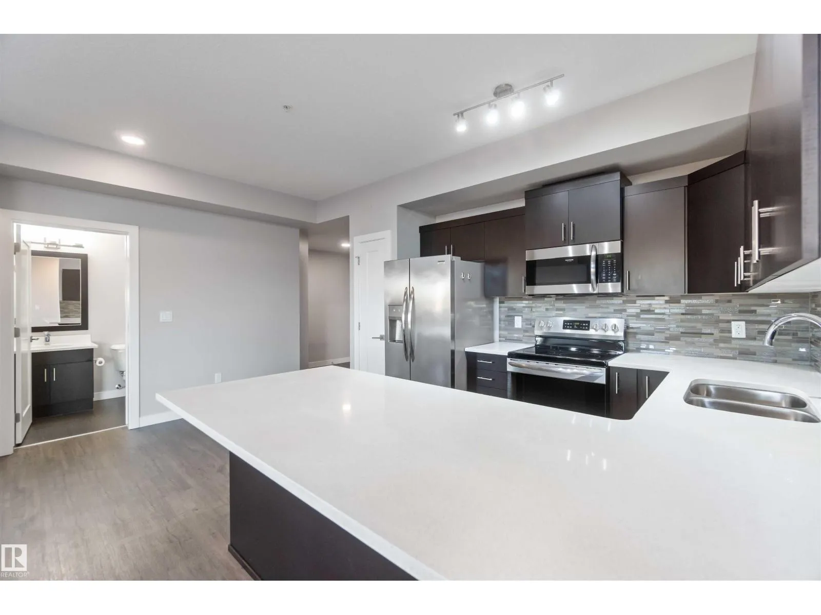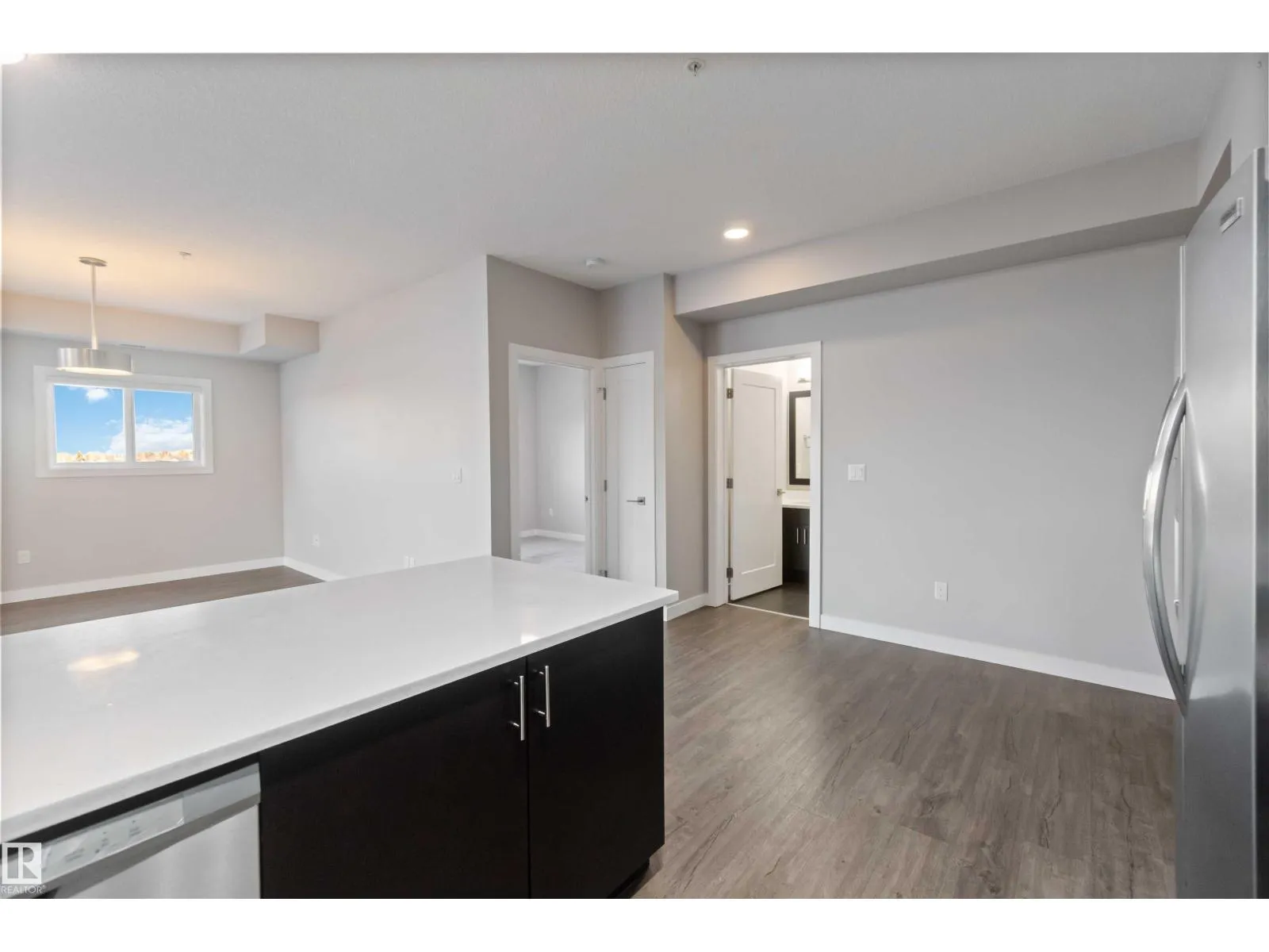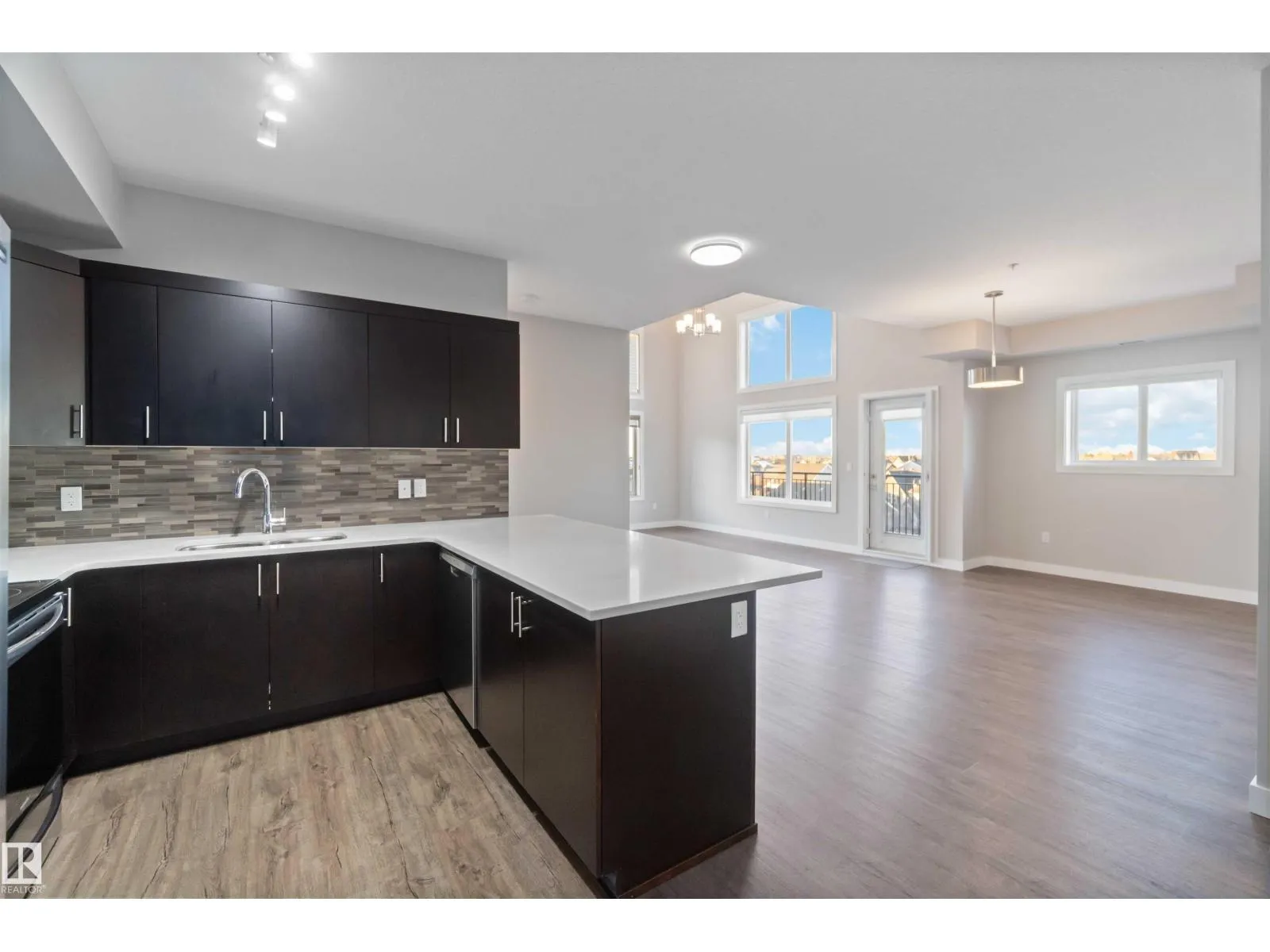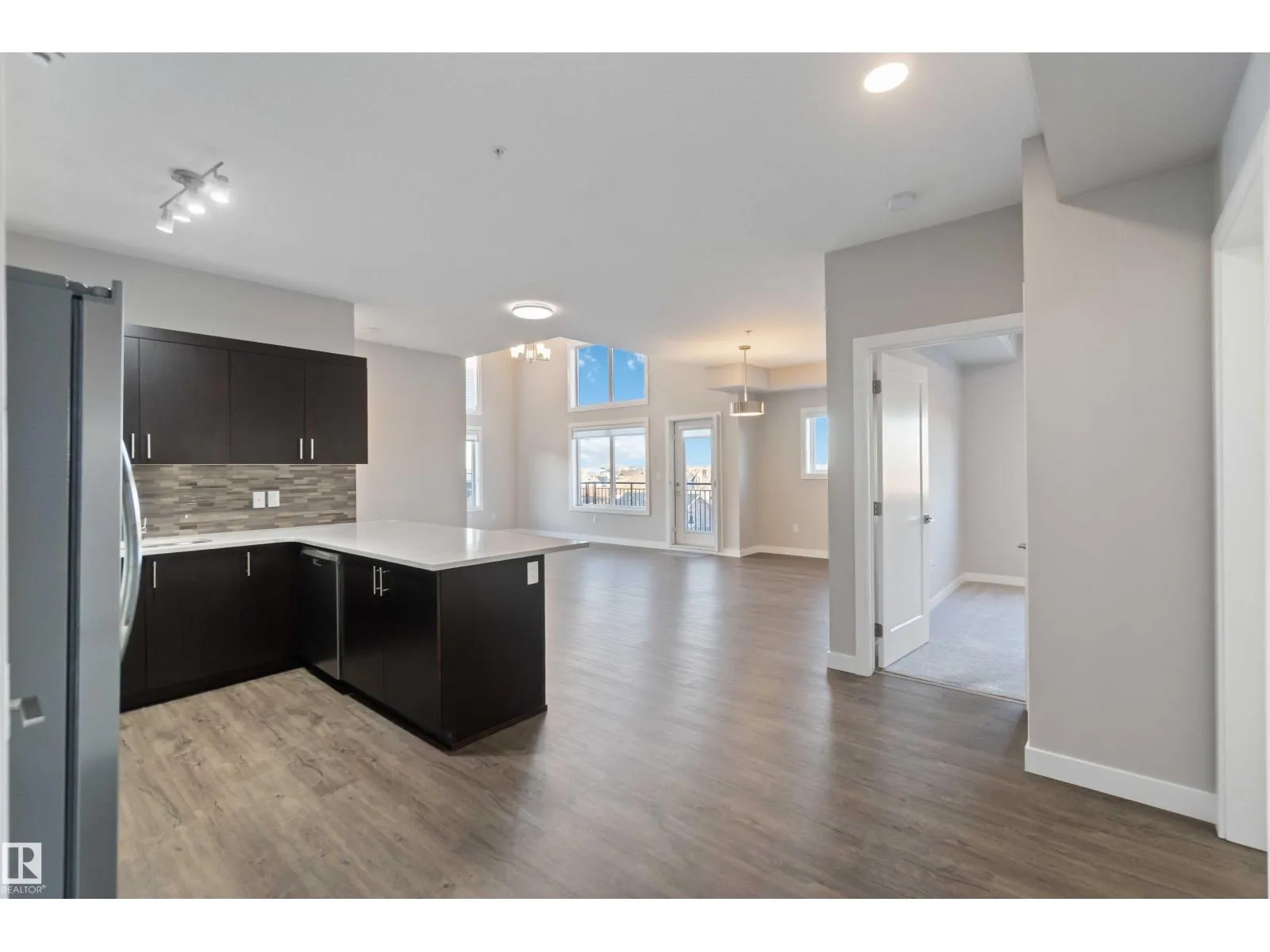 TOP FLOOR! CORNER UNIT! 3 BEDROOMS! WELCOME TO ONE OF NORTH EDMONTON'S BEST; 410, 560 GRIESBACH PARADE NW . THIS 4TH FLOOR UNIT HAS 1300 SQ FT OF LIVING SPACE, 3 BEDROOMS, 2 BATHS, AND UNDERGROUND PARKING. THE UPGRADED CUSTOM KITCHEN HAS QUARTZ COUNTERTOPS, SOFT-CLOSE CABINETRY WITH UPGRADED HARDWARE, NEWER STAINLESS APPLIANCES, VINYL PLANK FLOORS, AND A SINGLE LEVEL ISLAND. DINING AREA IS MASSIVE WITH SCREENED EXTERIOR PATIO DOOR ACCESS. LIVING AREA HAS 18 FOOT OPEN CEILINGS WITH PANORAMIC VIEWS. PRIMARY BEDROOM IS MASSIVE WITH A LARGE WALK-THROUGH CLOSET AND ENSUITE ACCESS. ENSUITE OFFERS A GLASS SHOWER WITH QUARTZ VANITY. MAIN FULL BATH HAS VINYL TILE FLOORS. UNIT ALSO HAS 2 ADDITIONAL BEDROOMS, LAUNDRY ROOM, CENTRAL AIR CONDITIONING AND AMPLE STORAGE. BUILDING HAS A SHARED GYM, SOCIAL ROOM, LIBRARY, CAR WASH, AND SECURED UNDERGROUND PARKING WITH A STORAGE CAGE. LOCATED STEPS FROM SHOPPING AND ALL THE UPSCALE COMMUNITY OF GRIESBACH HAS TO OFFER. PETS ALLOWED (SIZE RESTRICTION). (id:27476)