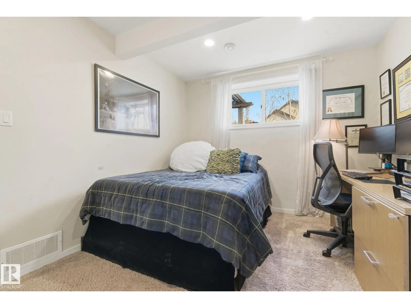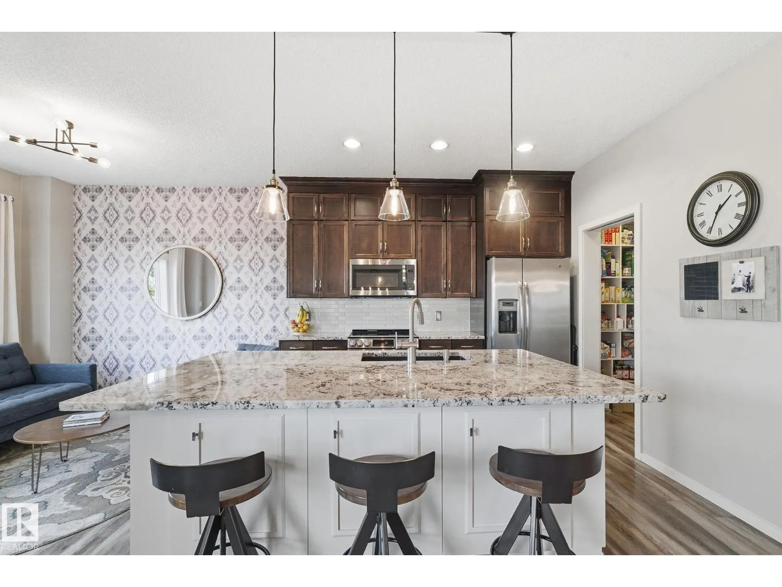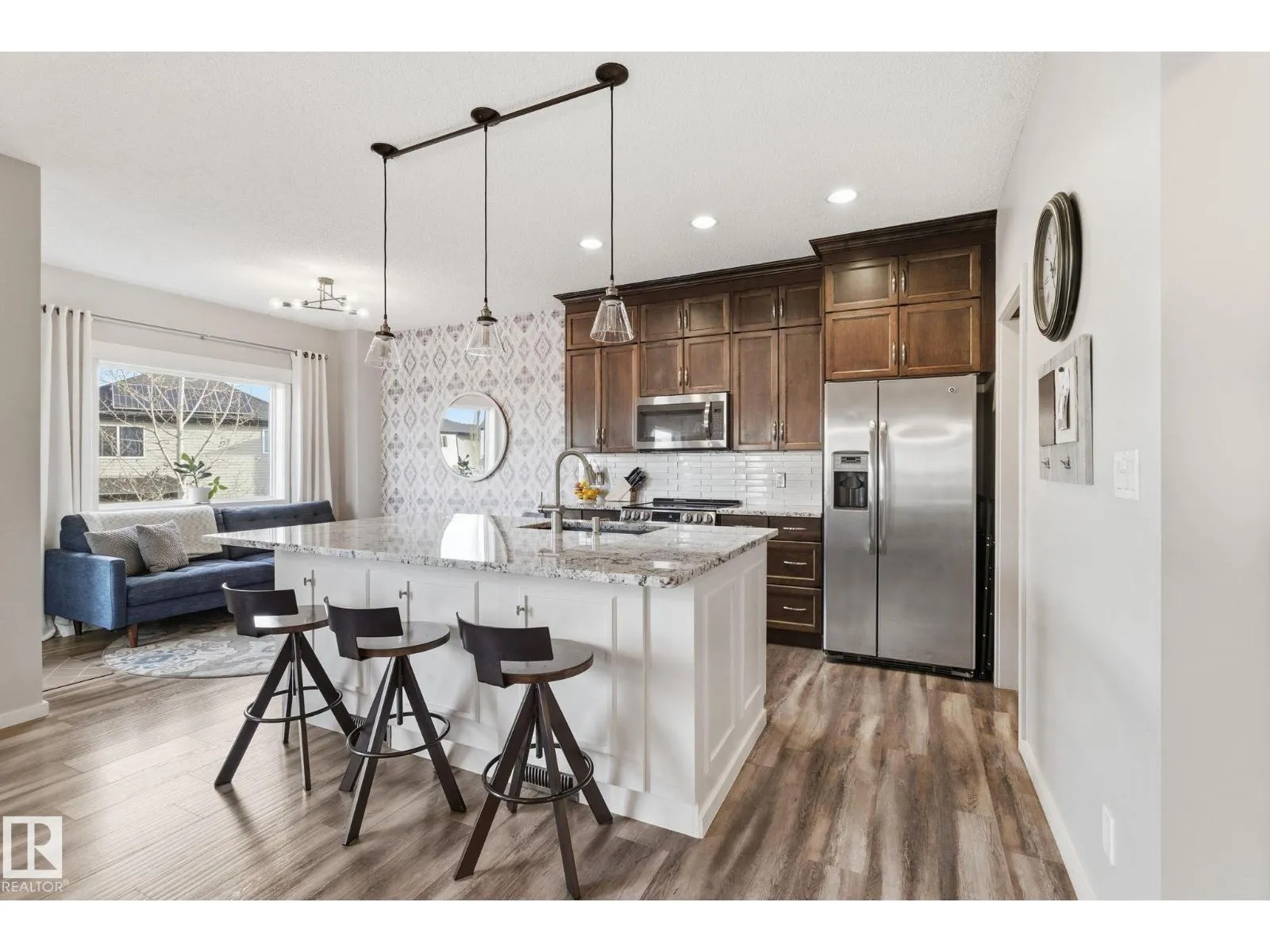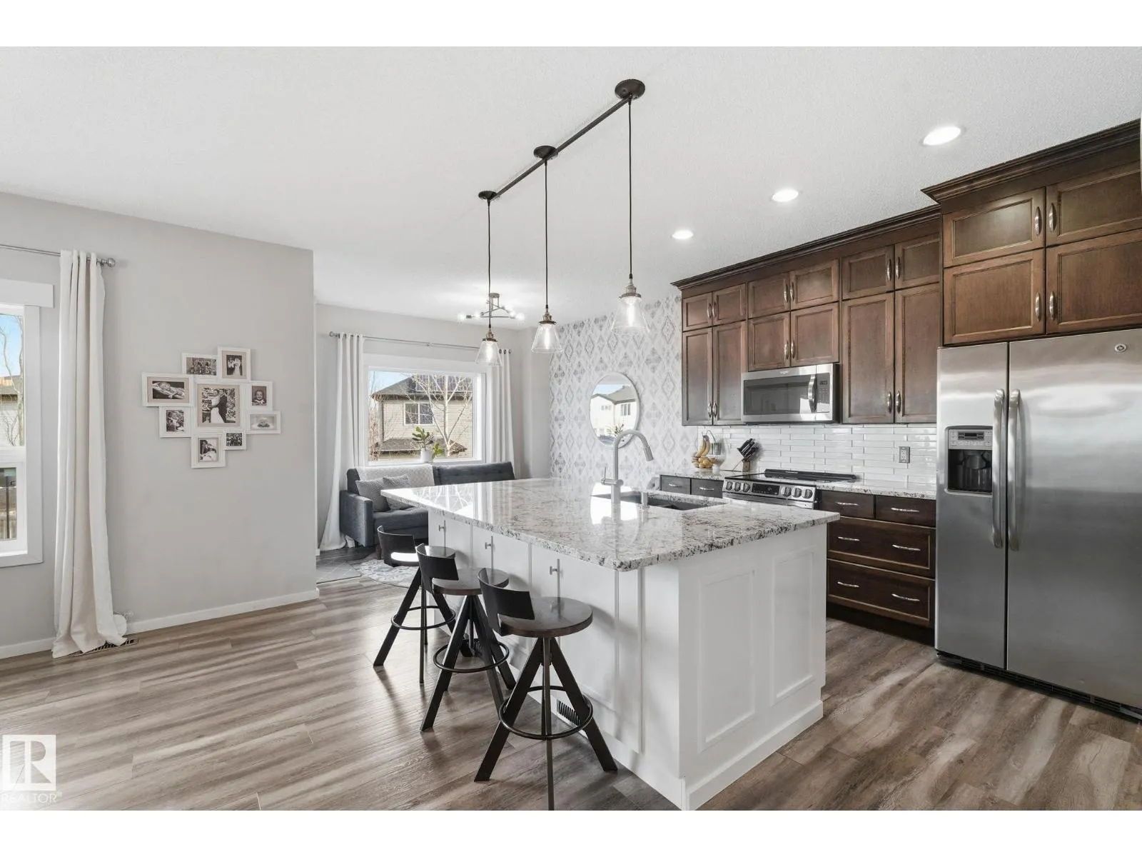 Absolutely stunning home on a big PIE lot! Great open layout- gorgeous kitchen with cabinets all the way up the 9' ceilings, 8' granite island, stainless appliances including new range & walk through pantry to the garage. Currently set up for a large dining table by the cozy gas fireplace & a bright sitting area at the back of the home, but easily switched for a larger living room on the main floor & a table in the nook. The patio door leads out to an incredible yard with an elevated deck, pergola, hot tub & beautifully landscaped paving stone & lush irrigated green oasis! Upstairs are 3 good sized bedrooms, 2 full baths & a central bonus room to separate the bedrooms. The primary has a great walk-in closet & tile & glass shower with quartz counters. The basement is fully finished with a 4th bedroom, 3rd full bathroom & a good sized family room. Quiet street with excellent neighbours, close to walking trails, parks, Public & Catholic schools & Lewis Farms Rec Centre. Central A/C & HWT 2022 (id:27476)