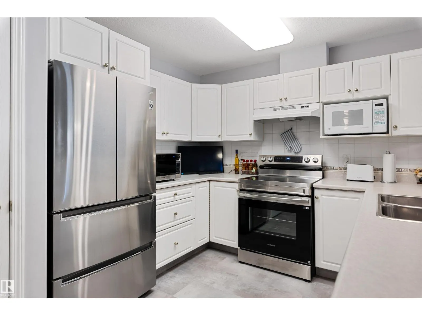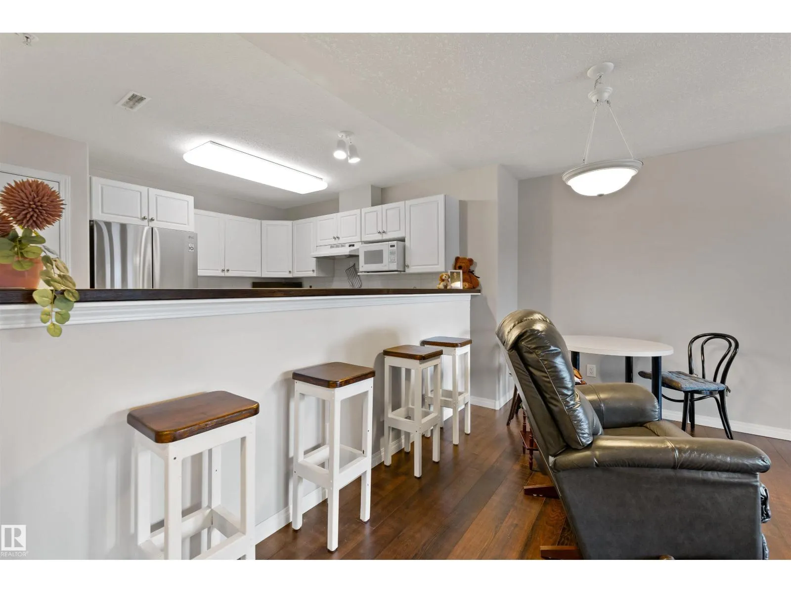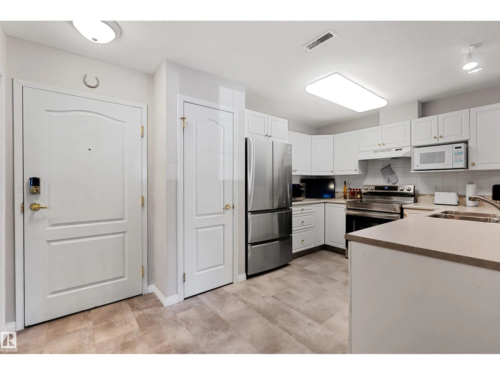 Upgraded, Affordable, AND Adorable! This spacious 1 bed/1 bath unit in 18+ Sienna Point, is perfect for first-time Buyers and Downsizers too. Conveniently located on the ground floor, renovated with tasteful improvements, and totally move-in ready! Featuring new easy-care plank flooring (easy on the eyes too!), throughout the main living areas. The kitchen is bright and welcoming, and you'll love the open layout into the living rm which offers a cozy gas F/P as its focal point. The large bdrm has comfy new carpets as another upgrade, and the bthrm has had a recent makeover too with an oversized W/I shower with glass doors for some modern flair. In-suite laundry with substantial storage space is another bonus! Garden doors in the living rm lead to a huge patio area, all yours to enjoy next summer - along with the central A/C. There is a Titled underground parking stall, and a storage cage too. Loads of amenities here to enjoy incl. a gym, pool table/games rm, a workshop, and more. Classy Condo Life Awaits! (id:27476)
