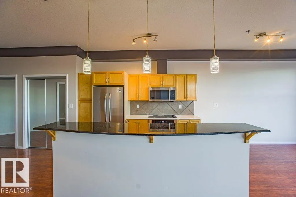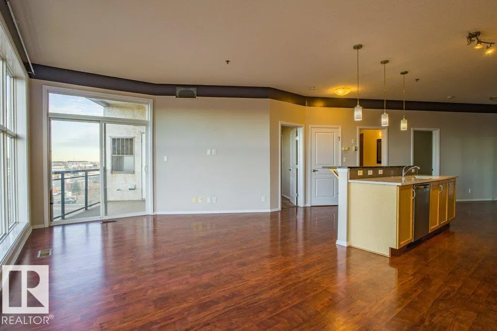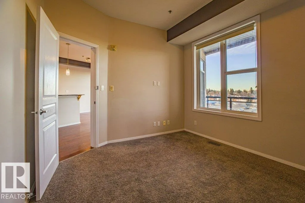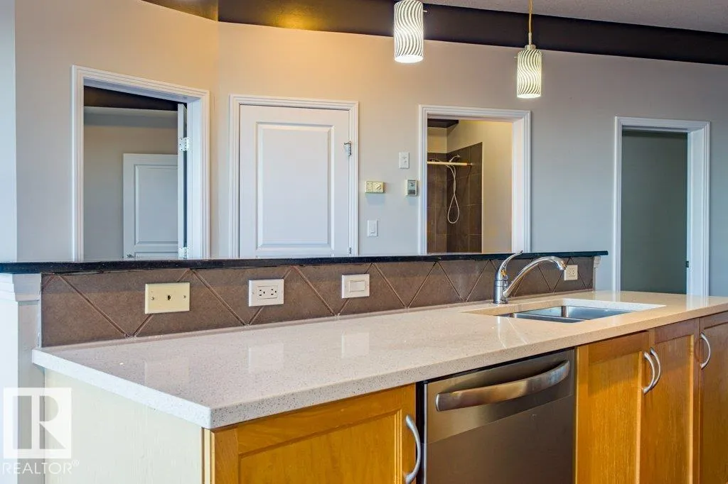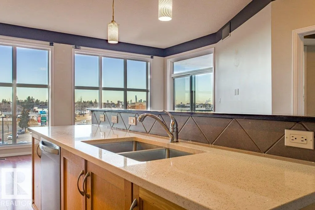 Welcome to your elevated urban retreat! This high-floor condo offers 862sqft of beautifully designed living space with soaring 9-ft ceilings and an open-concept layout that radiates light and sophistication. Featuring one spacious bedroom, a versatile den that can be converted into a second bedroom, a full bathroom, and the convenience of an underground parking stall, comfort and practicality are at your fingertips. Floor-to-ceiling windows provide unobstructed views, filling the kitchen, dining, and living areas with natural brilliance. The sleek modern kitchen flows seamlessly into the dining space perfect for entertaining or enjoying quiet evenings at home. Step onto your private balcony to unwind, savor the skyline, or cultivate your own urban garden oasis. Youâre just steps away from Italian Market, Super Store, and charming restaurants, with effortless access to downtown, U of A, and the airport. More than a home, this is a lifestyleâwhere elegance meets everyday convenience. Live above it all. (id:27476)