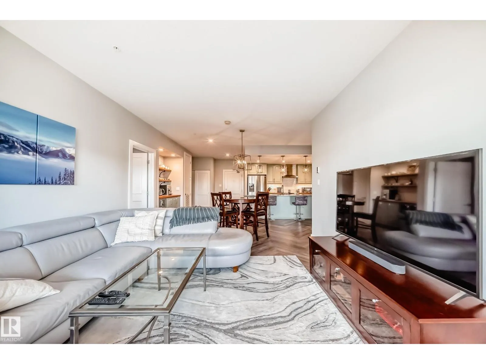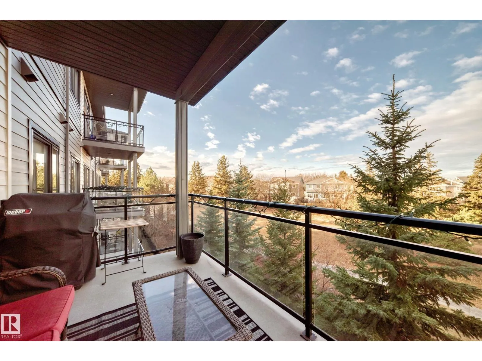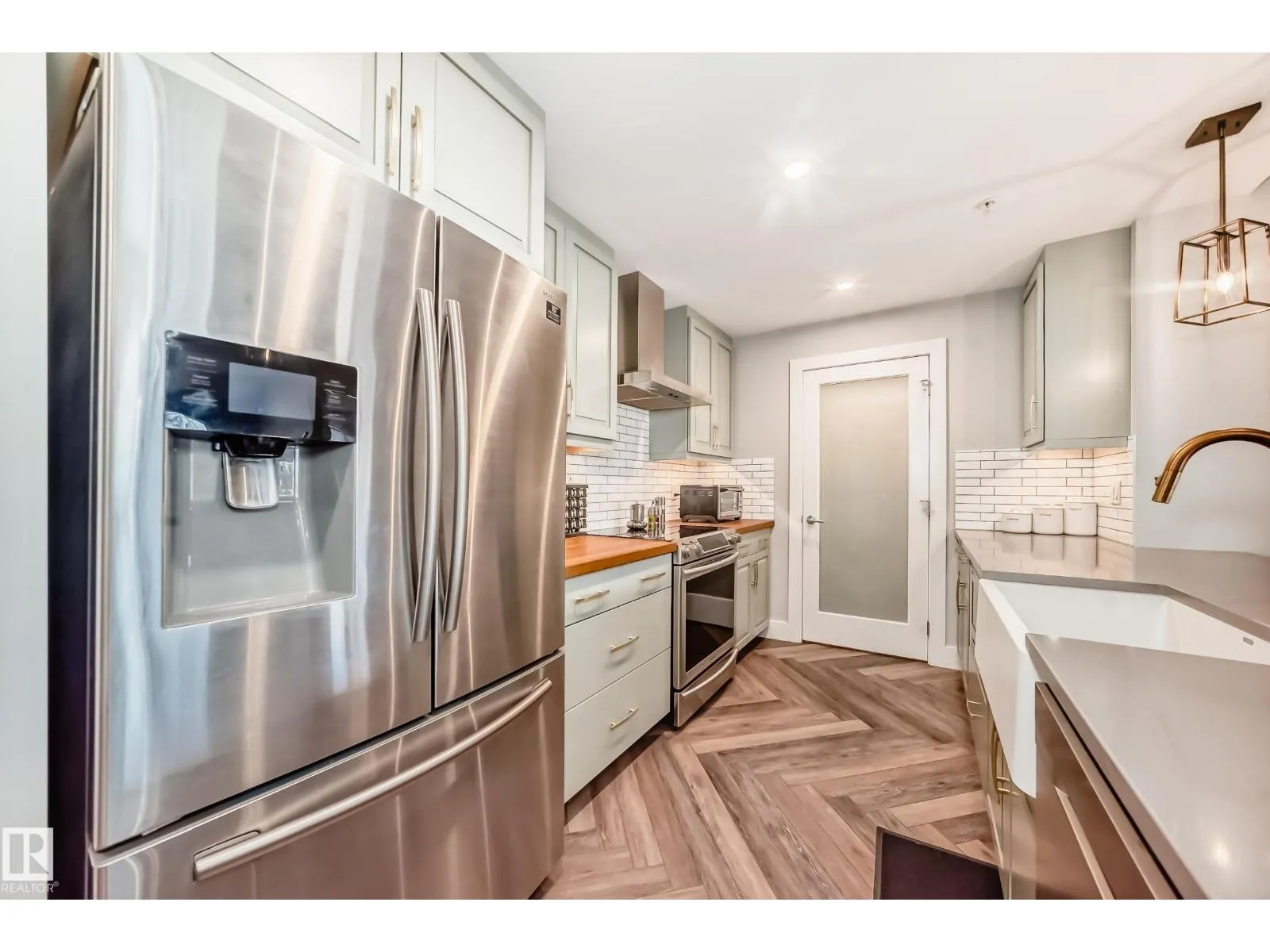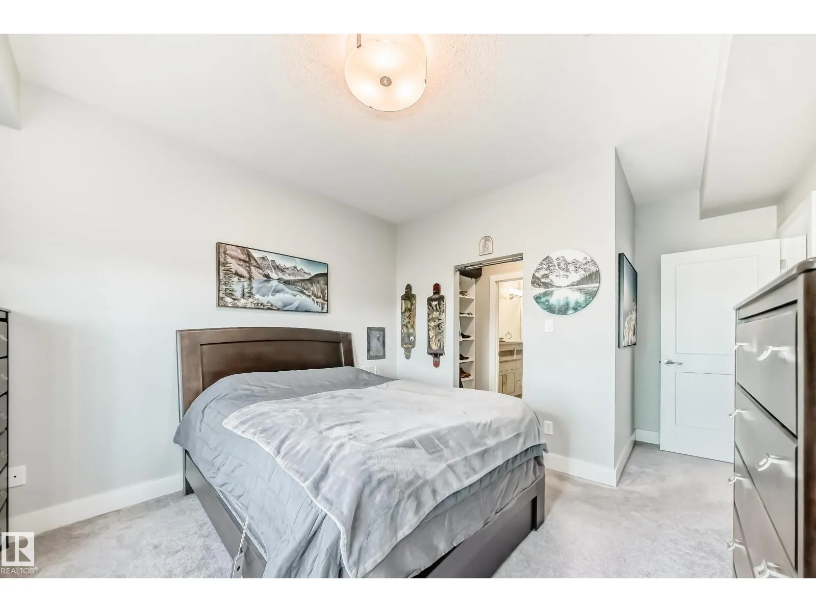 Beautiful Griesbach executive style 1,130 square foot, 2 bedroom, 2 bathroom, 2018 built, 3rd floor condo, in and incredible location backing onto greenspace and lake. The main floor has vinyl plank flooring, separate wet bar with mini fridge, and a great open floor plan with eat up island style kitchen having 2 tone cabinets, quartz countertops, upgraded stainless appliances, walk in pantry & sliding doors to a large balcony. The spacious primary bedroom has walk-through closets, and a 4 piece bathroom. The second bedroom is located close to the main 4 piece bathroom. There are 2 titled parking stalls included underground #98 and surface stall #11. The area has many amenities just minutes away, including shopping, transportation, schools, walking trails, and much more. The Veritas condominium complex has a beautiful front entrance and many extras including, fitness room, air conditioning, guest room, social room, & visitor parking out front. This unit shows pride of ownership and shows a 10 out of 10 (id:27476)