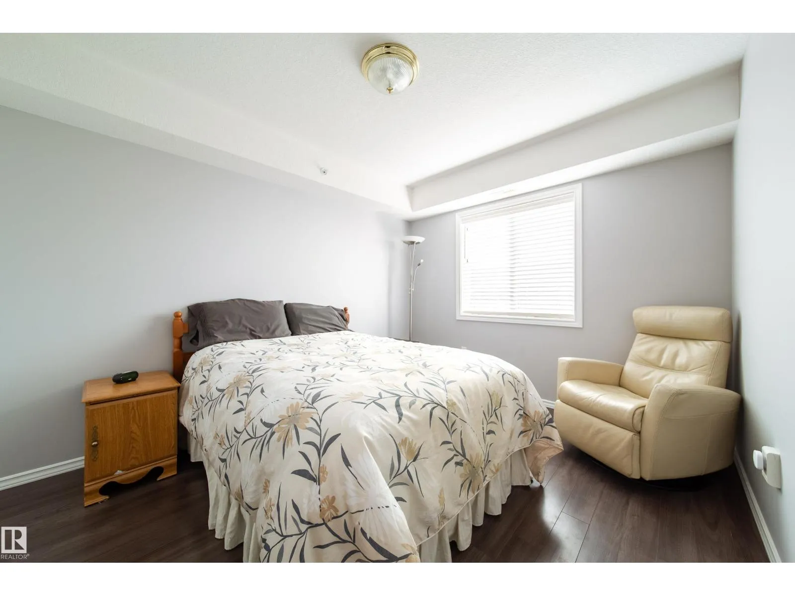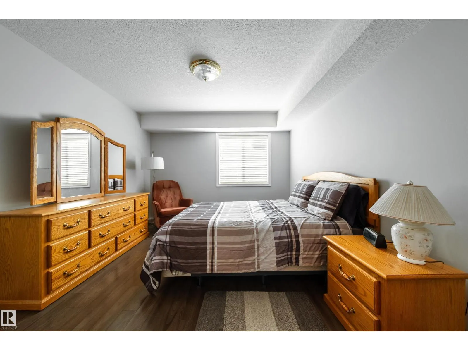 This 2-bedroom, 2-bathroom unit on the top floor of Wolf Willow Manor is in exceptional condition compared to most units in the building. At 996 sq ft, it's move-in ready with updates throughout that set it apart. The suite features newer laminate flooring, paint, and upgraded light fixtures including more modern kitchen lighting compared to other units. Stainless steel appliances, in-suite laundry, and central AC round out the functional upgrades. The open layout includes a living room, dining area, and kitchen with ample counter space. Both bedrooms are a good size, with the primary offering a 4-piece ensuite. The second bathroom is a 3-piece. Underground parking and a storage cage are included. Wolf Willow Manor is an adult living building (55+, pets subject to board approval) with social amenities including a games room, library, and exercise room. The $528/month condo fee covers heat, water, exterior maintenance, parking, and snow removalâpredictable costs with no surprises. (id:27476)