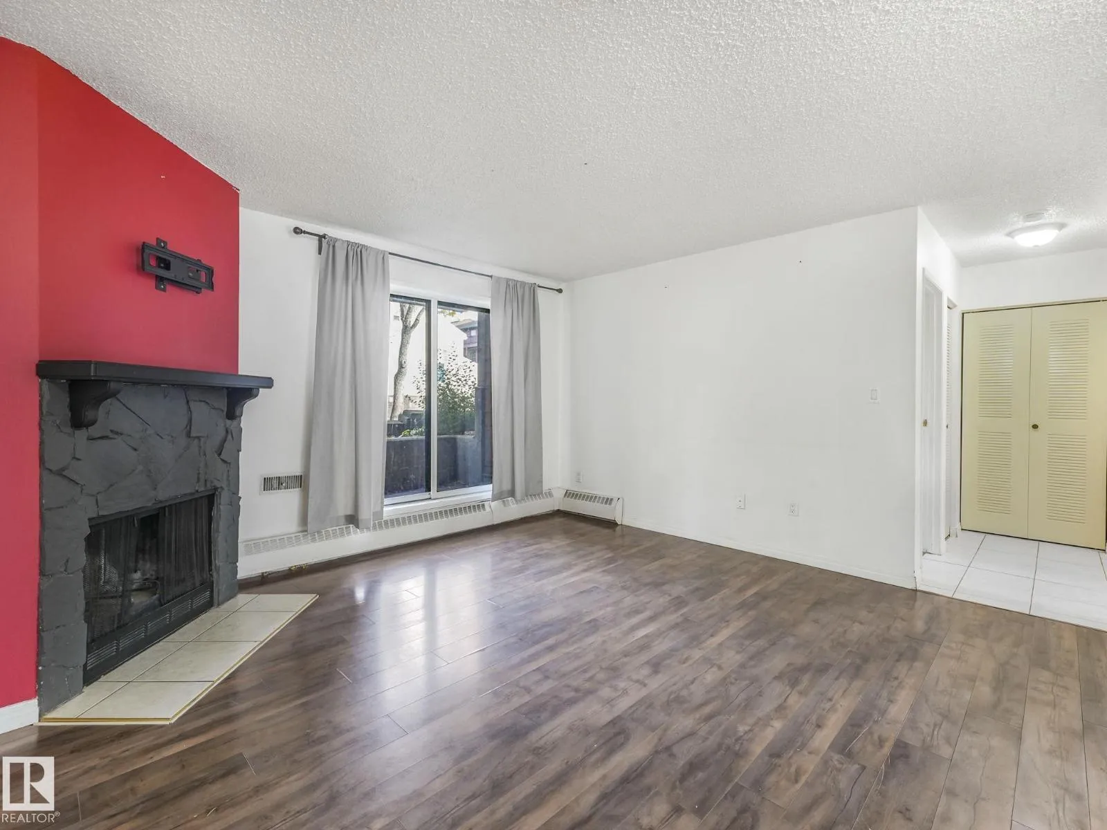 Welcome to Scattered Leaves! Ideally situated just off Jasper Avenue and only steps from Edmontonâs beautiful river valley. This inviting main-floor condo features one bedroom, one bathroom, a cozy FIREPLACE, and a practical galley-style kitchen. Step outside to your PRIVATE PATIO, bordered by raised garden beds, and enjoy a peaceful outdoor retreat. Additional highlights include IN SUITE LAUNDRY, a generous IN SUITE STORAGE room, and an UNDERGROUND TITLED PARKING STALL. Perfect for first-time buyers, downsizers, or investors, this home offers a comfortable, well-located, and affordable option. CONDO FEES INCLUDE HEAT AND WATER. With downtown, major commuter routes, cafés, and restaurants nearby, itâs the perfect setting for low-maintenance urban living. (id:27476)
