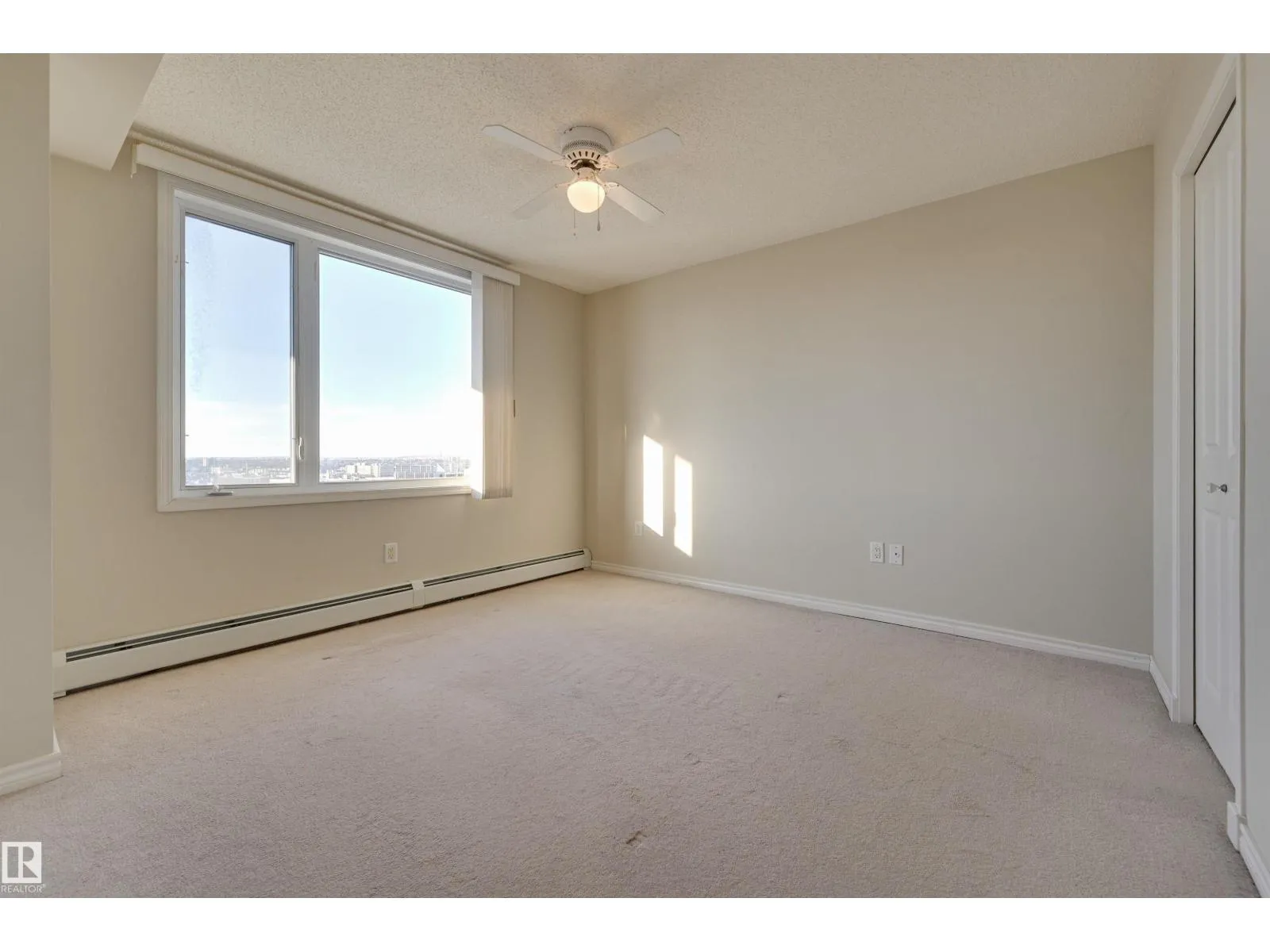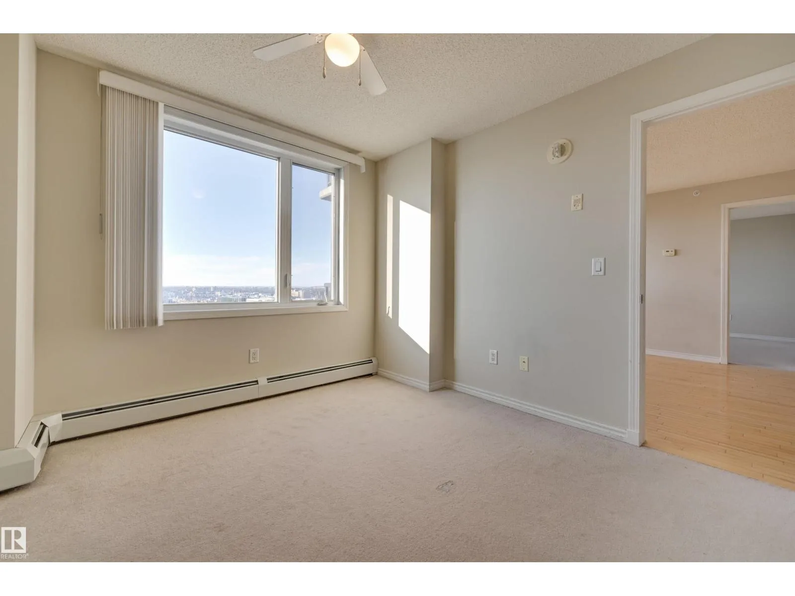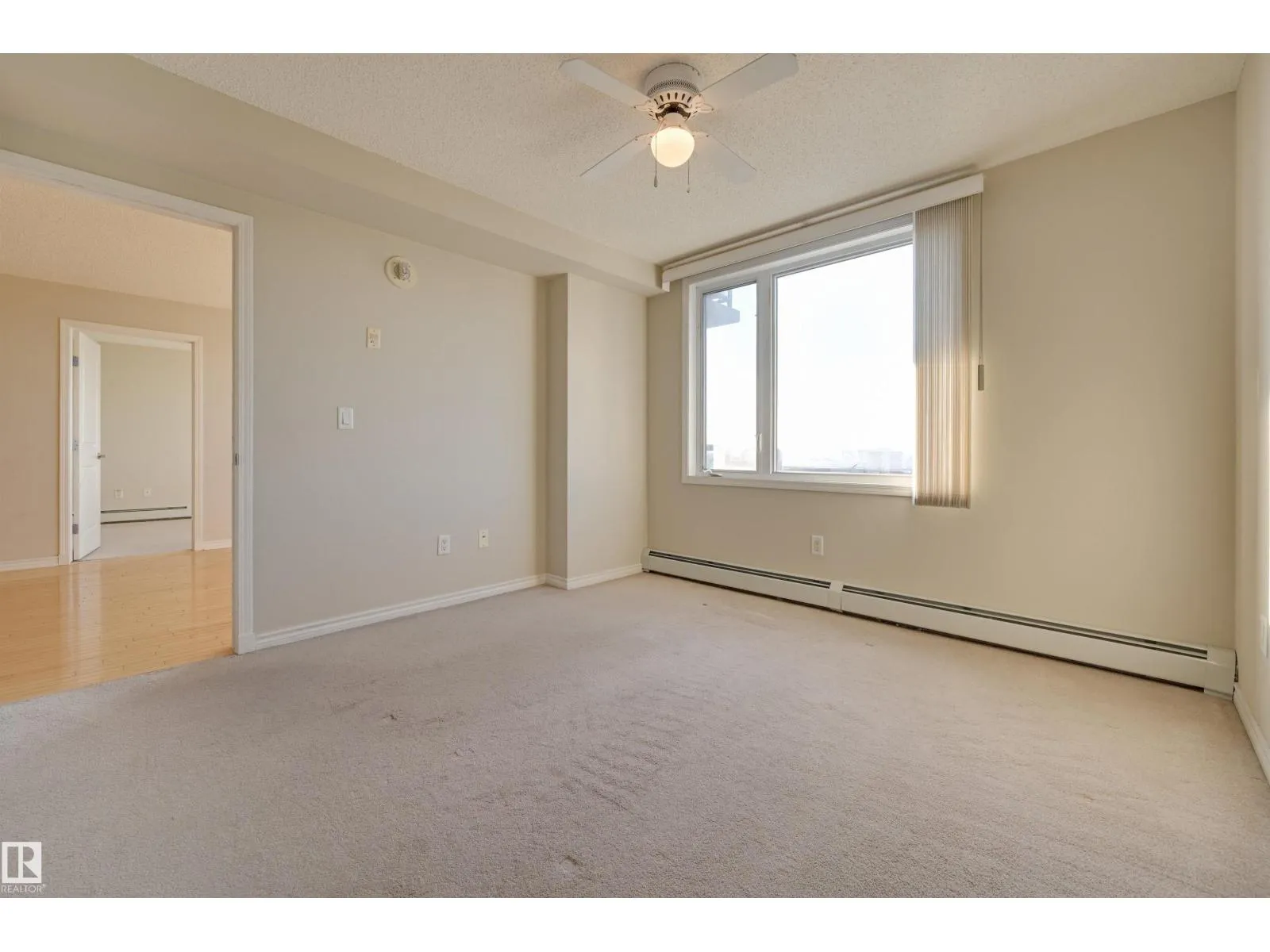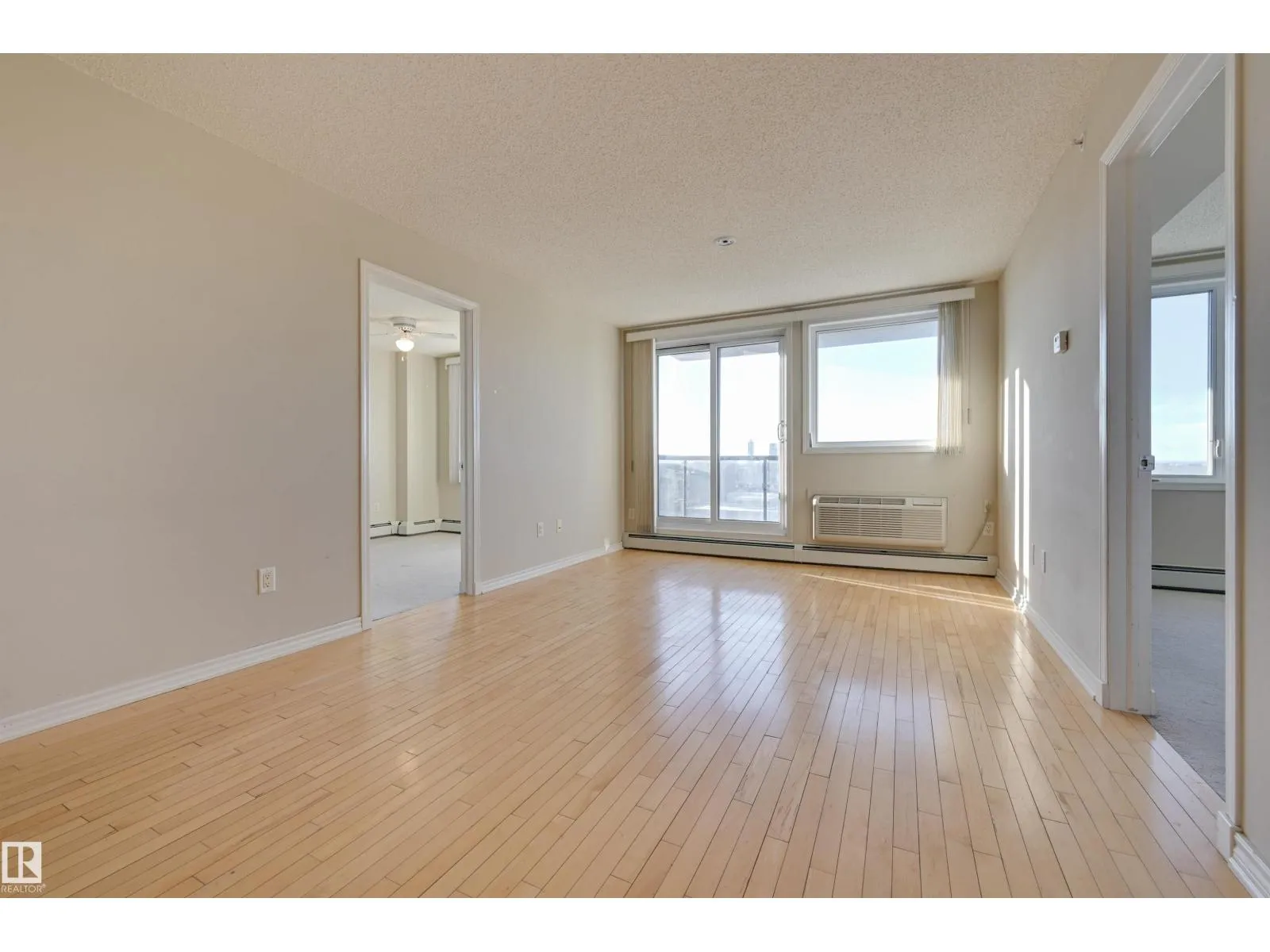 Unobstructed COTY VIEWS from this 2 bedroom SW CORNER UNIT in THE LEGACY. Conveniently located within walking distance of the LRT, MacEwan University, Ice District, shopping, restaurants, coffee shops and quick access to the river valley/walking trails, the Brewery District and the U of A. Lots of natural light with an west facing balcony with stunning views & gas BBQ hookup. Desirable layout with the bedrooms at the opposite ends of the living room. A bonus south facing kitchen window for the corner suite providing natural light to the kitchen & dining spaces. Hardwood floors in the main living space and carpet in the bedrooms. Upgraded with AIR CONDITONING. Stainless steel appliances, insuite laundry (stacking washer/dryer), good size storage room, underground parking #175. The building amenities include an exercise room, bike storage room, two great on site resident managers, and visitor parking. (id:27476)