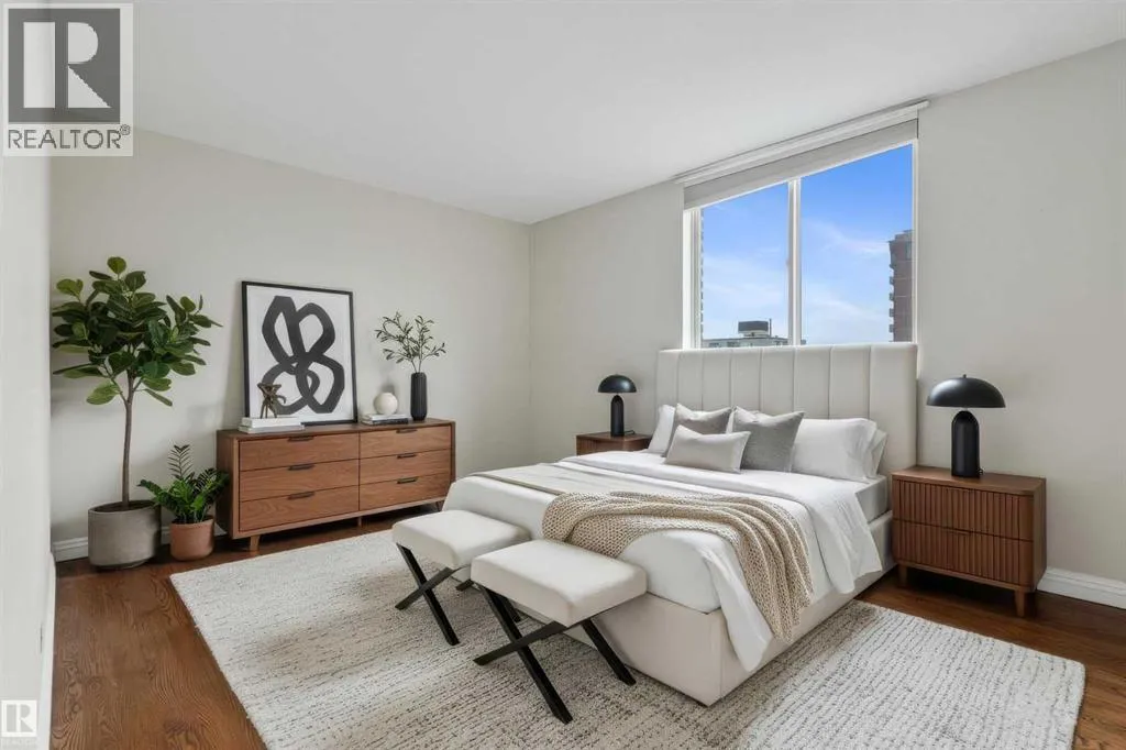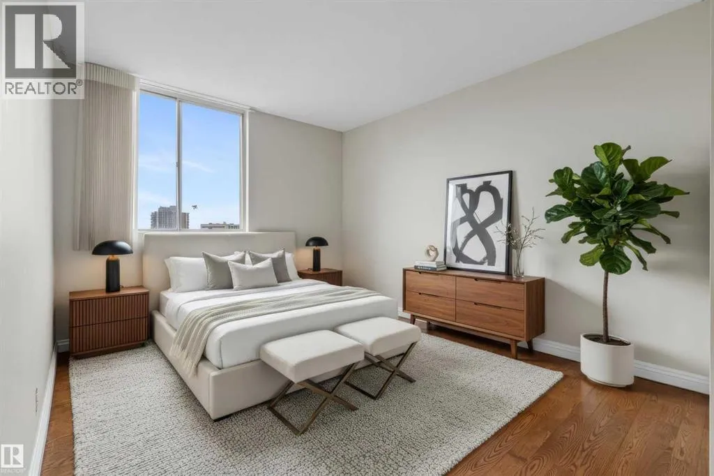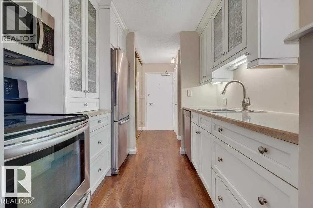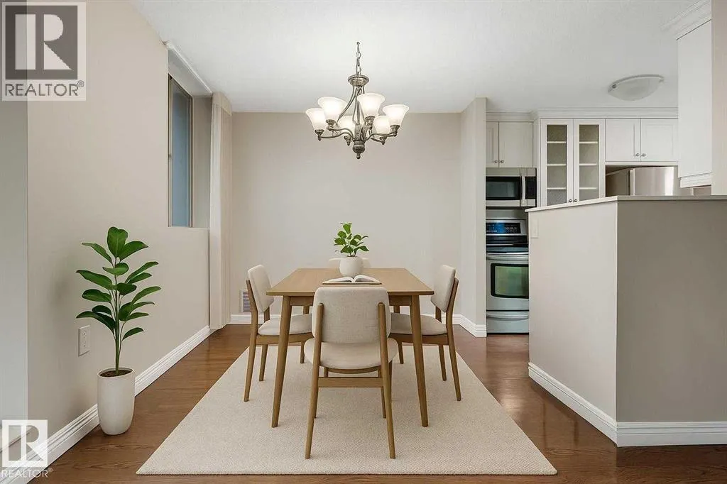 Urban Living at its Finest! Welcome to the Valhalla located in one of Edmonton's finest downtown districts. This 2 bed 1 bath is perfect for young professionals or those wanting to downsize from a home. Updated Kitchen Cabinetry, Newer Stainless appliances, Gleaming Hardwood Floors, In Suite Storage, a South East Balcony, Underground Parking ~ Painted in neutral colours offering you a blank slate to be creative with decorating your way. THE REAL SHOWSTOPPER? Resort-style amenities and unbeatable location ~ IN-COMPLEX amenities include Same floor Free Laundry, Salt Water Pool, Well Equipped Gym, Bike Storage & a Party/Social Room with Terrace Overlooking the incredible River valley Views. Close to walking Trails, Transit, and all the fantastic amenities nearby such as Shopping, Fine Restaurants, live Theatre & Music, Art Galleries & more. Located on a Beautiful Quiet Tree Lined Street ~The Valhalla is Professionally Managed on-site Daytime Staff, Fob equipped Entry, Pet & Child Friendly! (Virtually Staged) (id:27476)