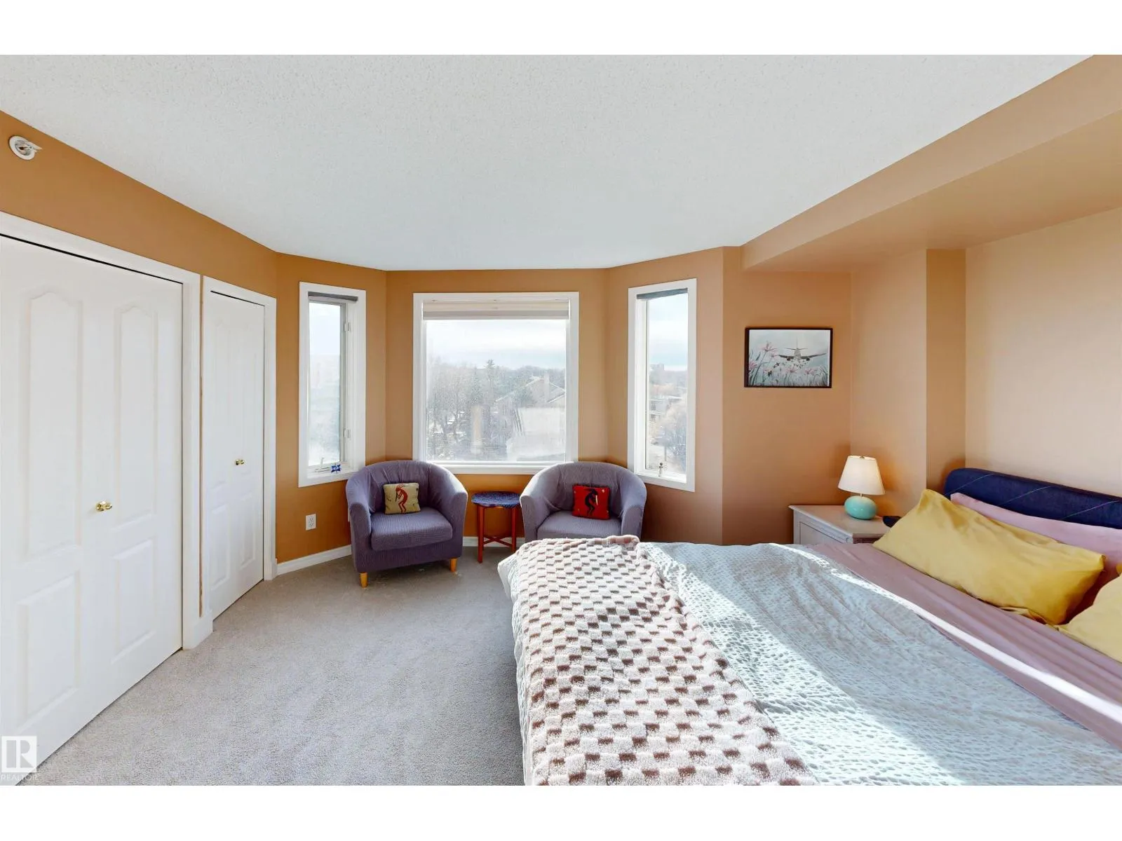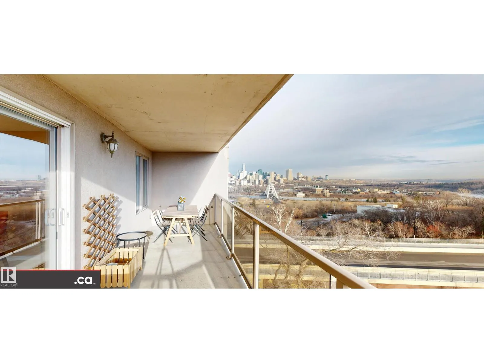 IMMACULATE CONDITION 6th FLOOR CORNER SUITE IN LORD STRATHCONA MANOR! Features & Upgrades: * Newer Painting, Flooring, & Stainless Steel Appliances * In-Suite Laundry & Storage * 2 BDRMs include a Walk-in Closet & 2 Full En Suite Baths * In-Suite Laundry & Storage * Heat Pump with Air Conditioning * 2 EXTERIOR BALCONIES -- Total NE through SW excellent wraparound views of City, ravine, River Valley, & Downtown. Lord Strathcona Manor offers many building amenities: * Well-managed by Ayre & Oxford with $1.5M+ Reserve Fund * Secure Entrance Doors * On-Site Maint. Mgr. * Two Quality Passenger Elevators * Exercise Room * Social Room * Bicycle Storage * Underground (x 2 Stalls) * Visitor Parking (front & back). South-Central Location on Saskatchewan Drive by River Valley Walking Trails, Kinsmen, University, Downtown, Walterdale Bridge, Restaurants, Retail, Legislature, Royal Glenora Club, Victoria Golf Course, & Royal Mayfair Golf Club. Seller says Very Good Neighbours :) -- End of Jan. Possession! (id:27476)