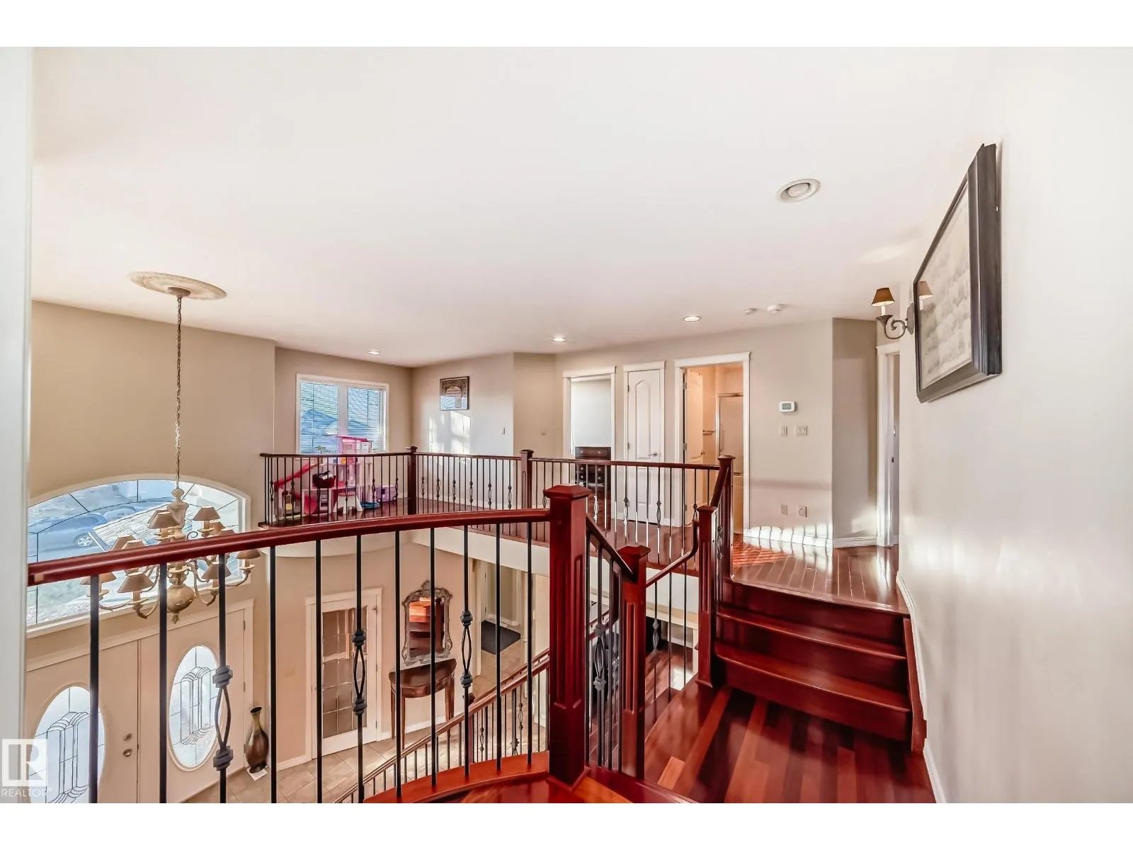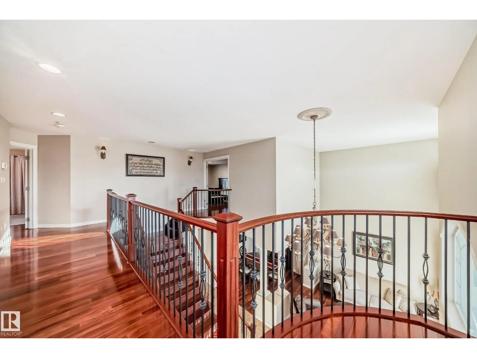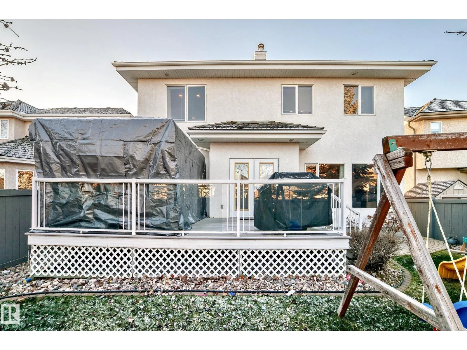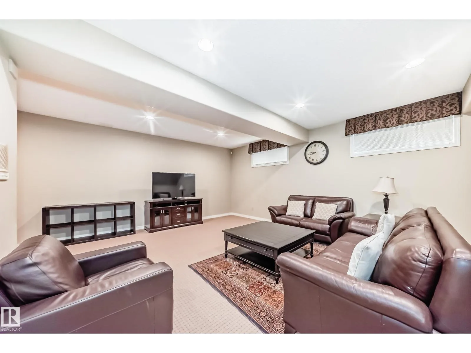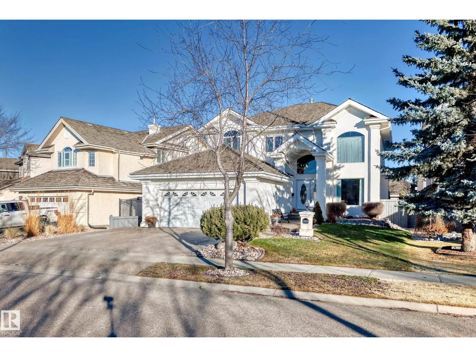 LUXURY EXECUTIVE LIVING in prestigious Donsdale Estates! This stunning 5-bed, 2-storey home offers in-floor heating throughout, dual A/C units and furnaces for exceptional temperature control, plus an irrigation systemâperfect for a large family. A grand double-door entrance opens to soaring cathedral ceilings and an elegant living room with massive windows, flowing into the formal dining room. The gourmet kitchen features high-end white cabinetry, quartz counters, pantry and island, with a bright breakfast nook overlooking the cozy family room with fireplace. The main floor also includes a den/office, laundry and bath. Upstairs, enjoy a gorgeous primary suite with spa-like 5-pc ensuite, plus two additional bedrooms and full bath. The finished basement adds a spacious family room, two bedrooms, full bath and ample storage. Beautifully landscaped yard with cedar roof, maintenance-free deck, glass railings, fencing and paved path. Steps to the pond, gazebo and scenic walking trailsâWelcome Home! (id:27476)