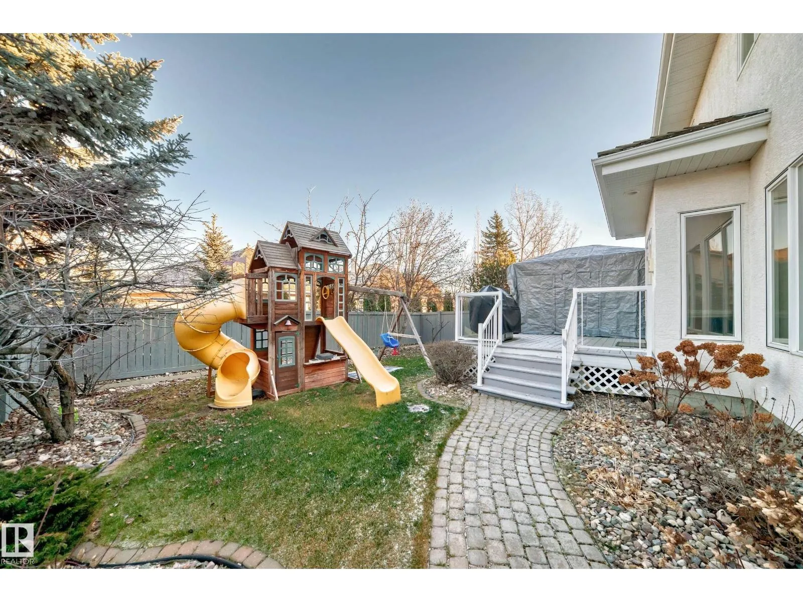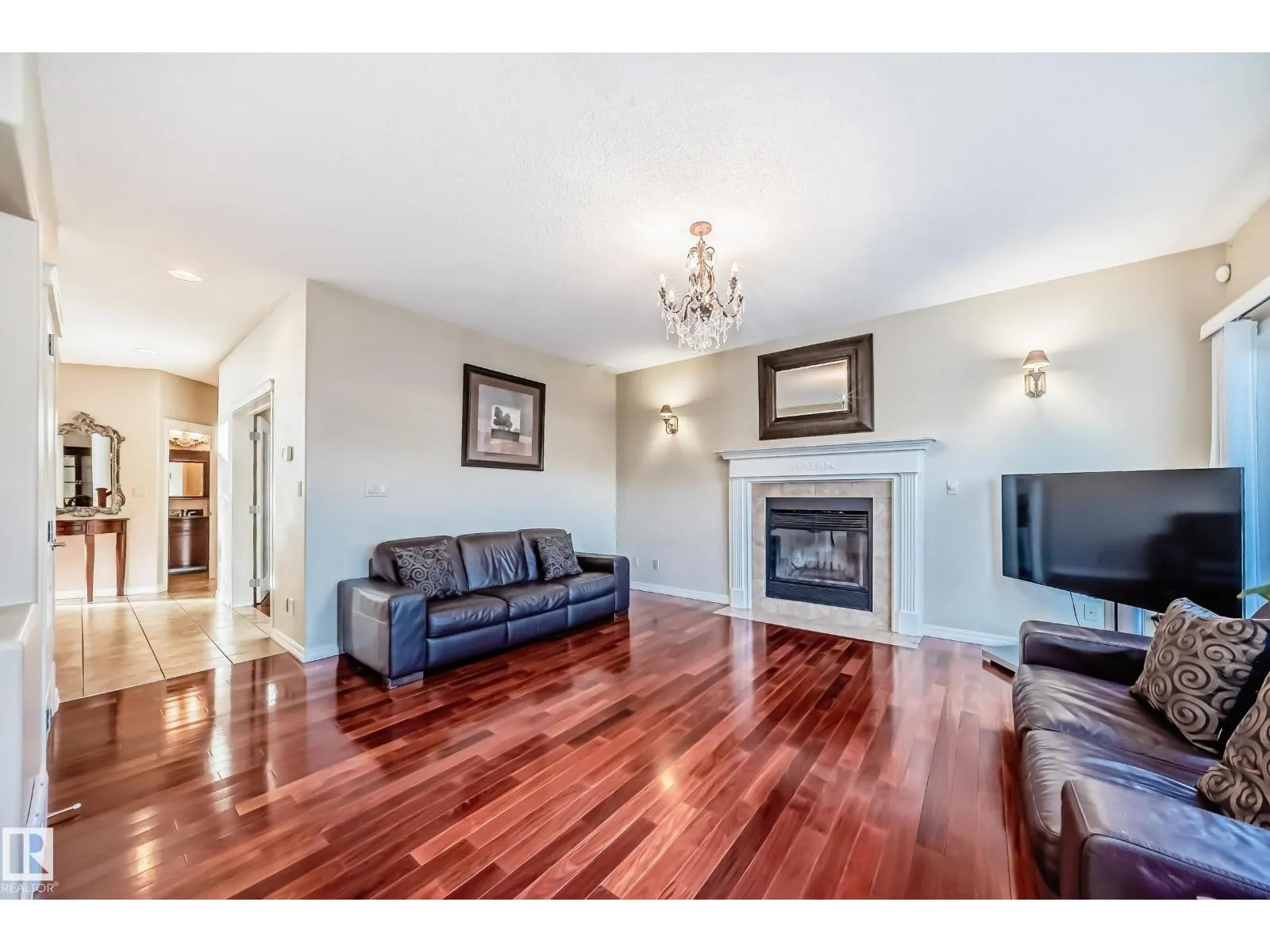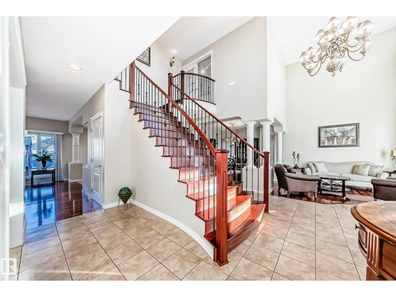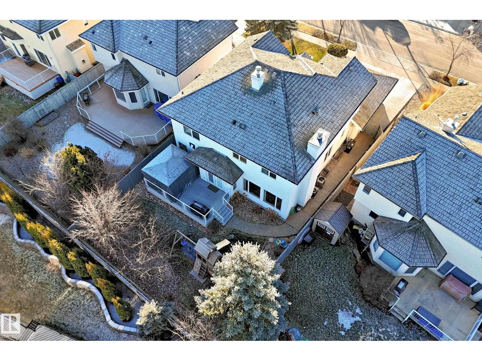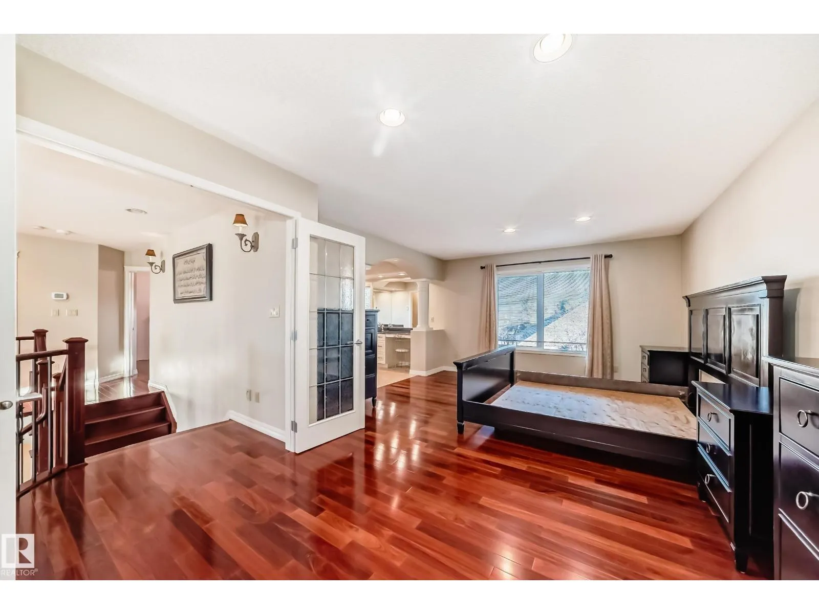 LUXURY EXECUTIVE LIVING in prestigious Donsdale Estates! This stunning 5-bed, 2-storey home offers in-floor heating throughout, dual A/C units and furnaces for exceptional temperature control, plus an irrigation systemâperfect for a large family. A grand double-door entrance opens to soaring cathedral ceilings and an elegant living room with massive windows, flowing into the formal dining room. The gourmet kitchen features high-end white cabinetry, quartz counters, pantry and island, with a bright breakfast nook overlooking the cozy family room with fireplace. The main floor also includes a den/office, laundry and bath. Upstairs, enjoy a gorgeous primary suite with spa-like 5-pc ensuite, plus two additional bedrooms and full bath. The finished basement adds a spacious family room, two bedrooms, full bath and ample storage. Beautifully landscaped yard with cedar roof, maintenance-free deck, glass railings, fencing and paved path. Steps to the pond, gazebo and scenic walking trailsâWelcome Home! (id:27476)